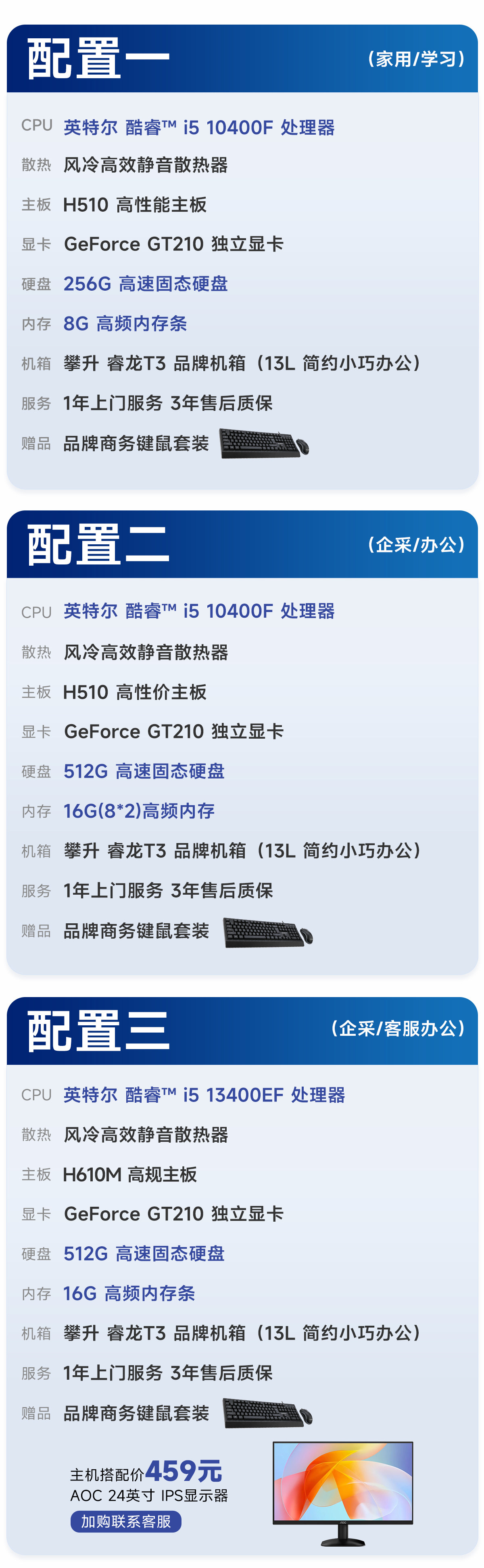 Climb Technology I5 10400F/13400Ef/14490F Professional Office Computer Desktop Home Office Gaming Design DIY Assembly Computer Complete Unit