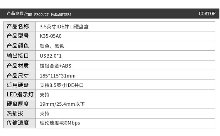 Comtop Ide Hard Drive Enclosure 3.5inch Desktop Parallel Port Hard Drive Enclosure Metal Aluminum with Power Supply Mobile Hard Drive Enclosure