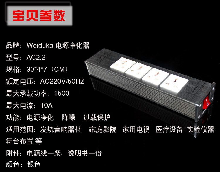 Power Filter Ac2.2 Audio Power Filter Lightning Protection Power Socket Aluminum Alloy Power Strip Free Shipping