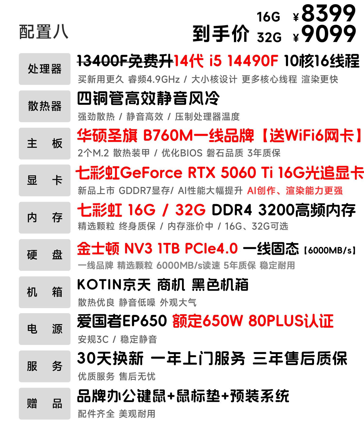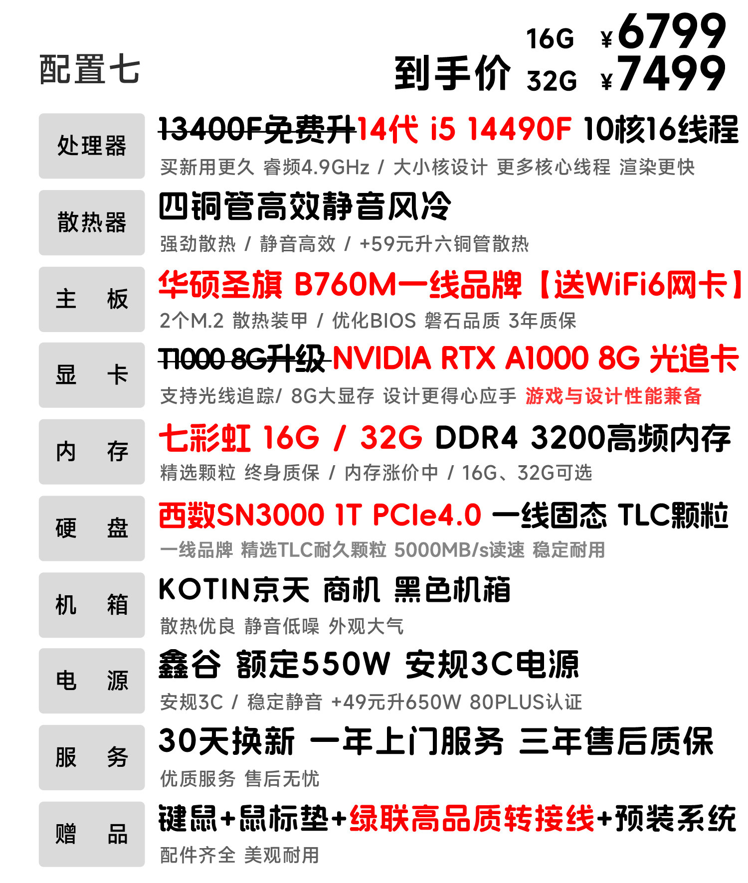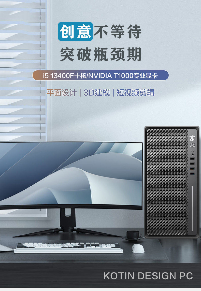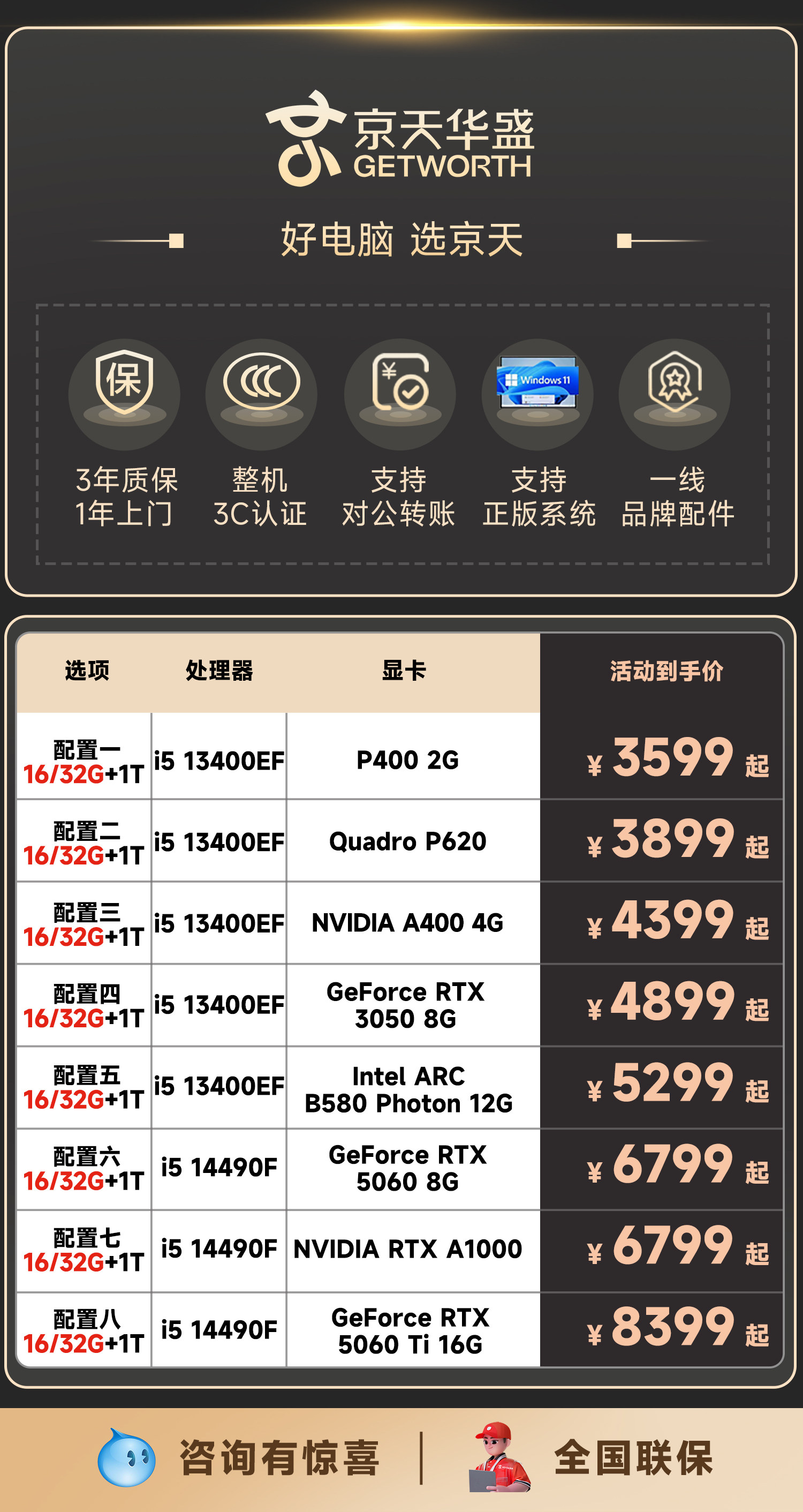 [10% National Subsidy]Jingtian Huasheng I5 14400F/A400/Rtx 5060 Ti/A1000 Designer Art Drawing Modeling Computer Host Video Editing Rendering Desktop Assembly Pc