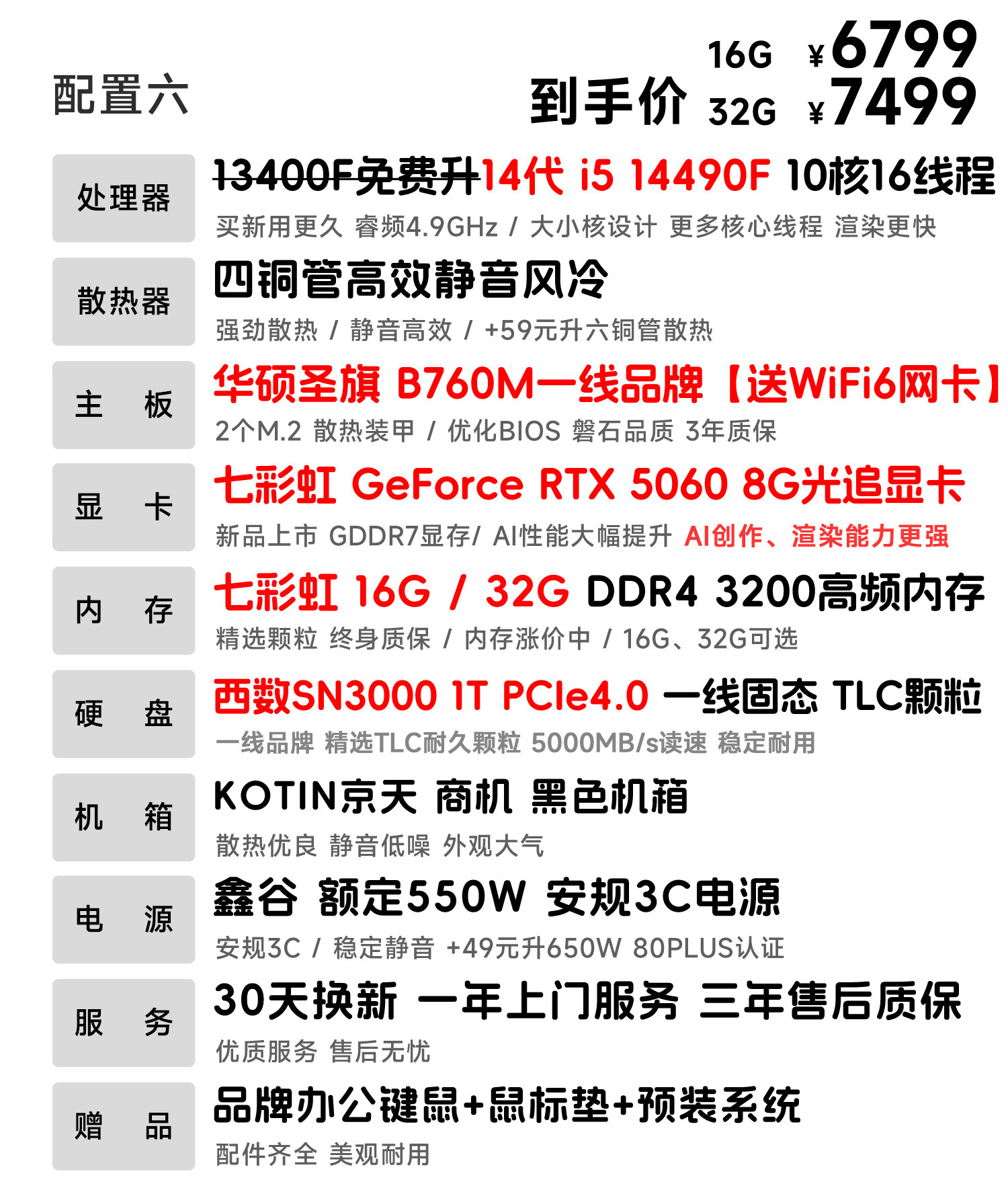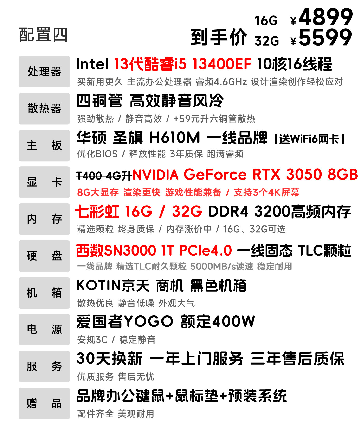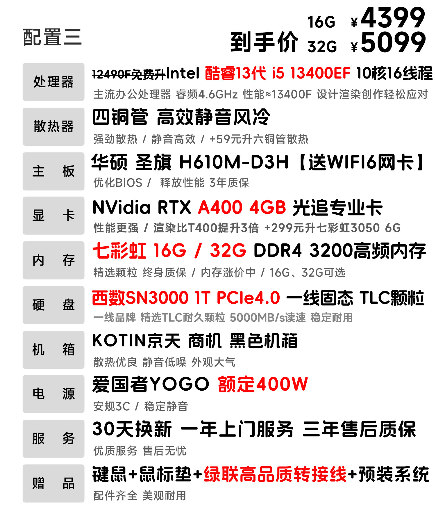 [10% National Subsidy]Jingtian Huasheng I5 14400F/A400/Rtx 5060 Ti/A1000 Designer Art Drawing Modeling Computer Host Video Editing Rendering Desktop Assembly Pc