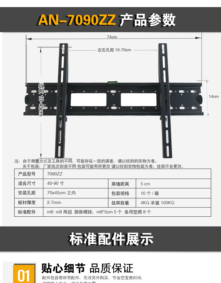 Lcd Tv Mount An-7090Zz Is Suitable for Sharp 40/43/50/55/60/65/70/ 80inch Wall Bracket