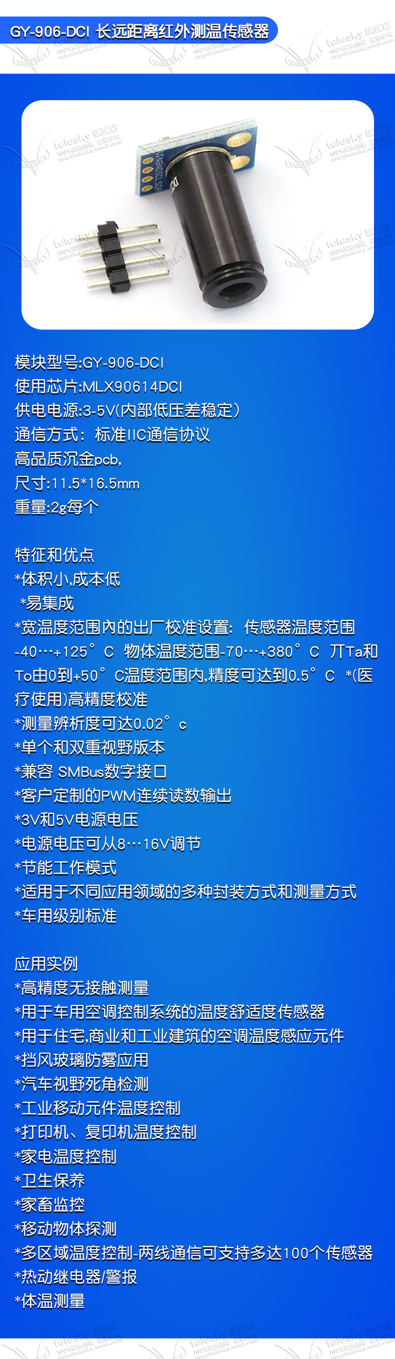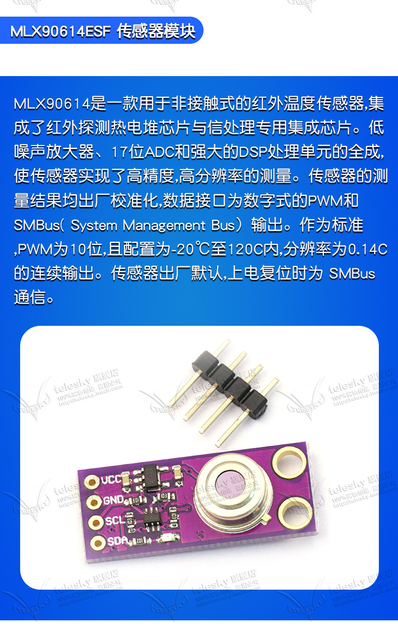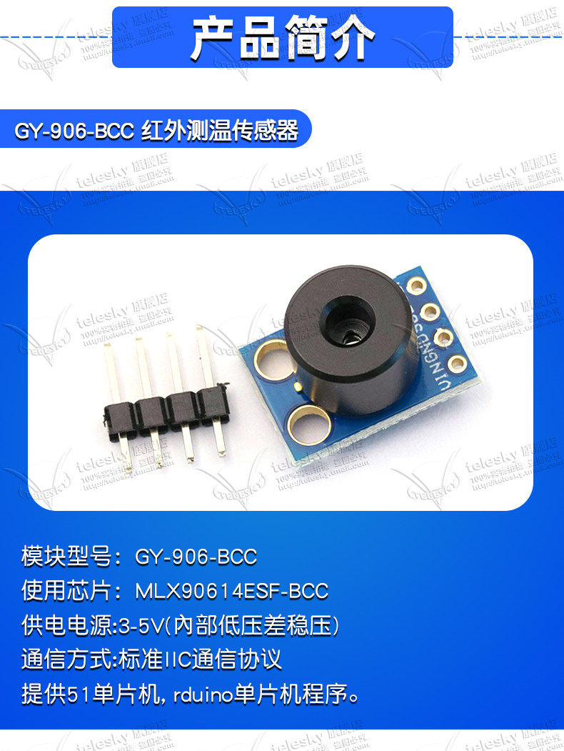 Gy-906 Mlx90614Esf Baa Bcc Dci Temperature Sensor Ir Infrared Temperature Measurement Sensor Module