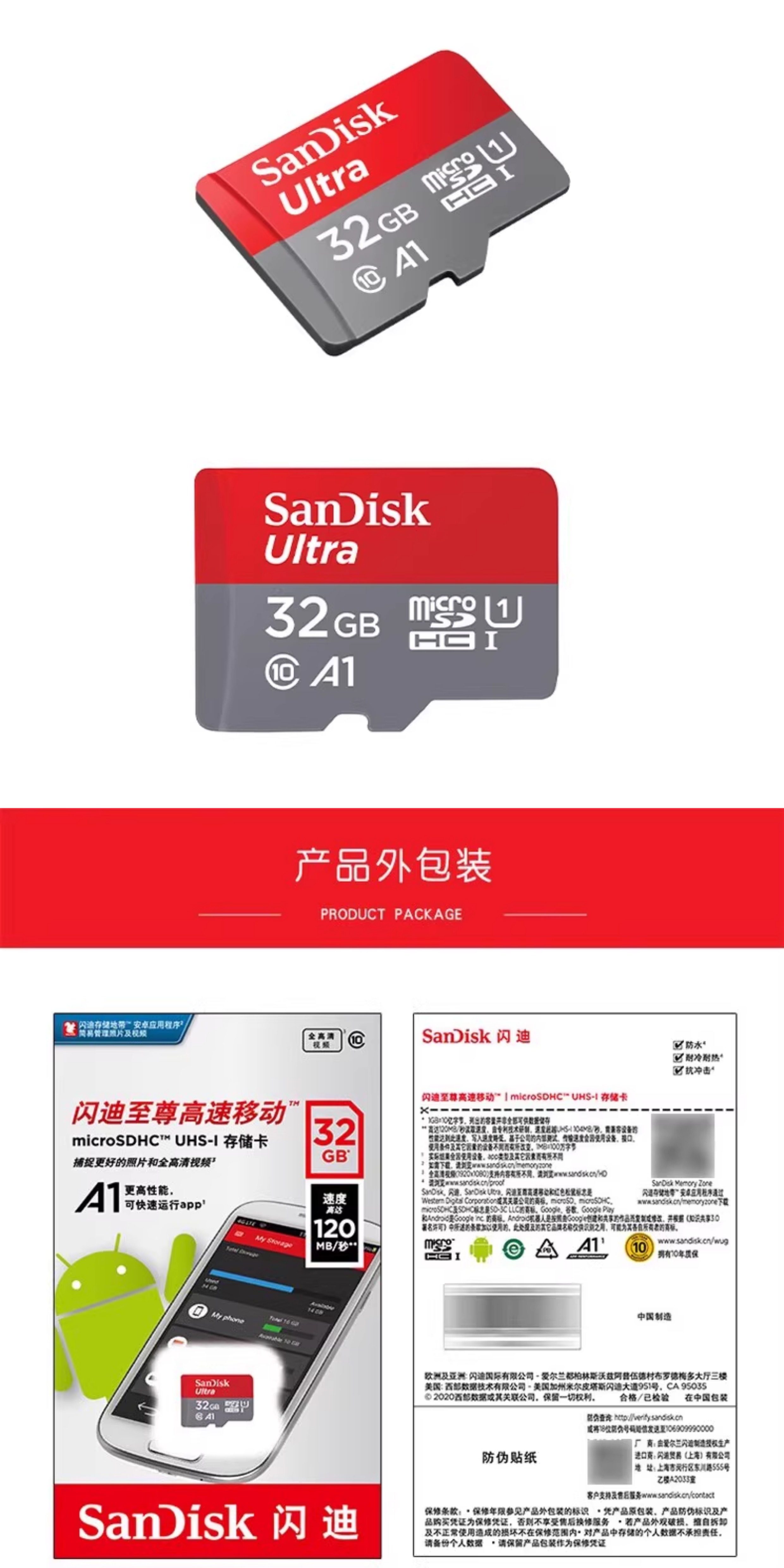 Sandisk Tf Card 32g High-Speed C10 Mobile Phone Universal Surveillance Camera Driving Recorder Dedicated Micro Sd Card