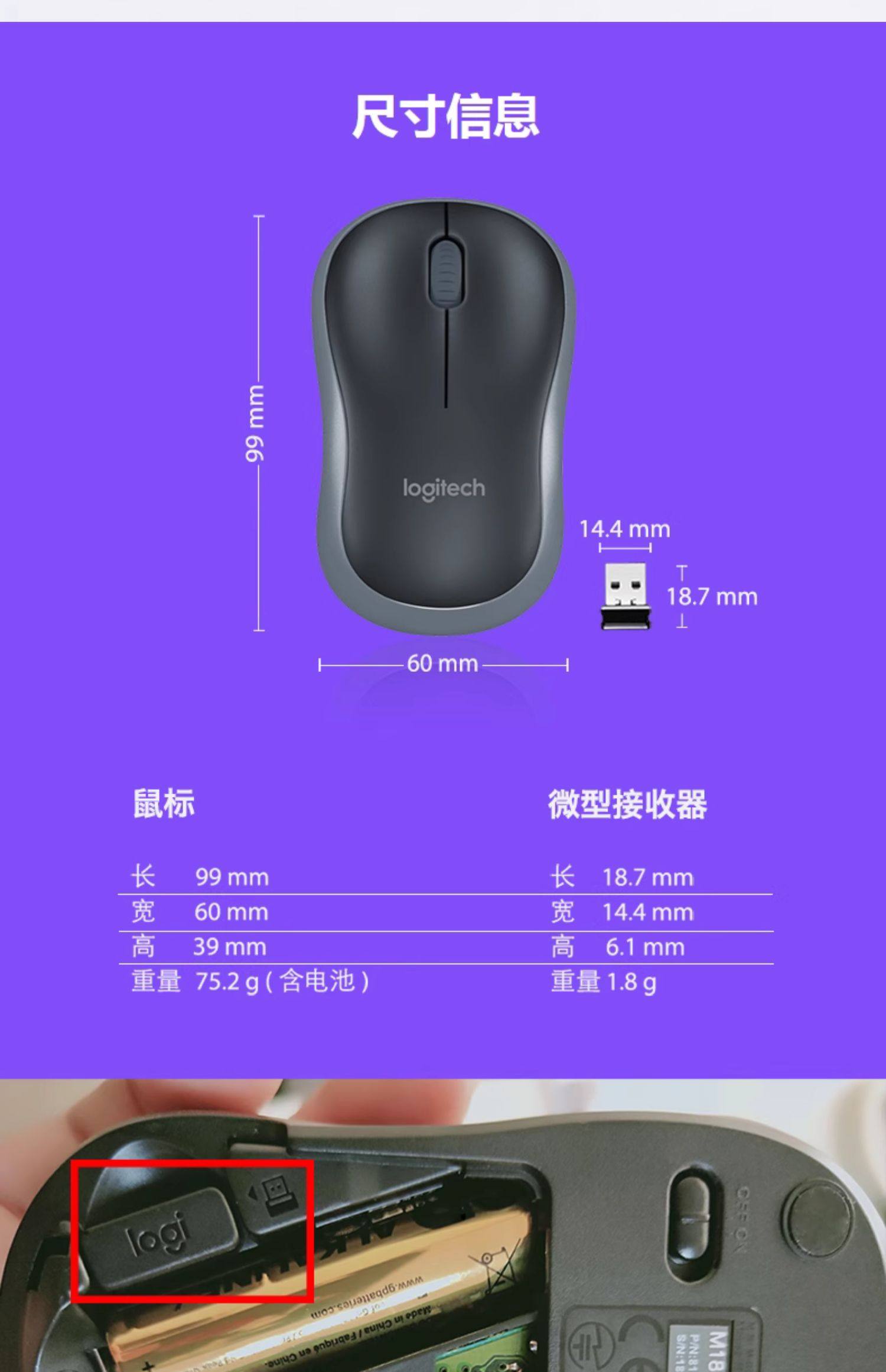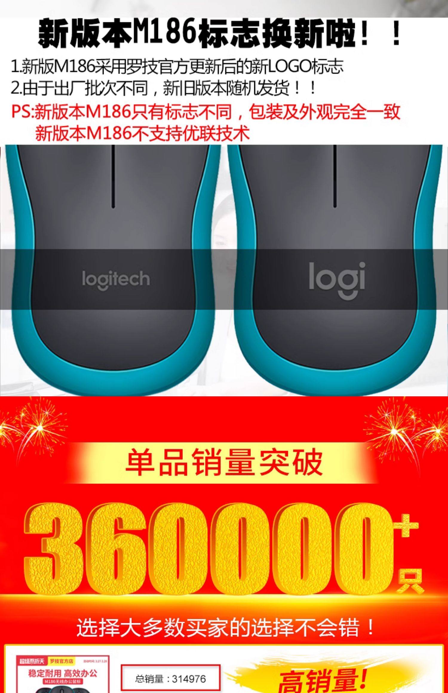 Logitech M186 Wireless Mouse Laptop Portable Office Home Mouse for Men and Women M187P Upgraded Version