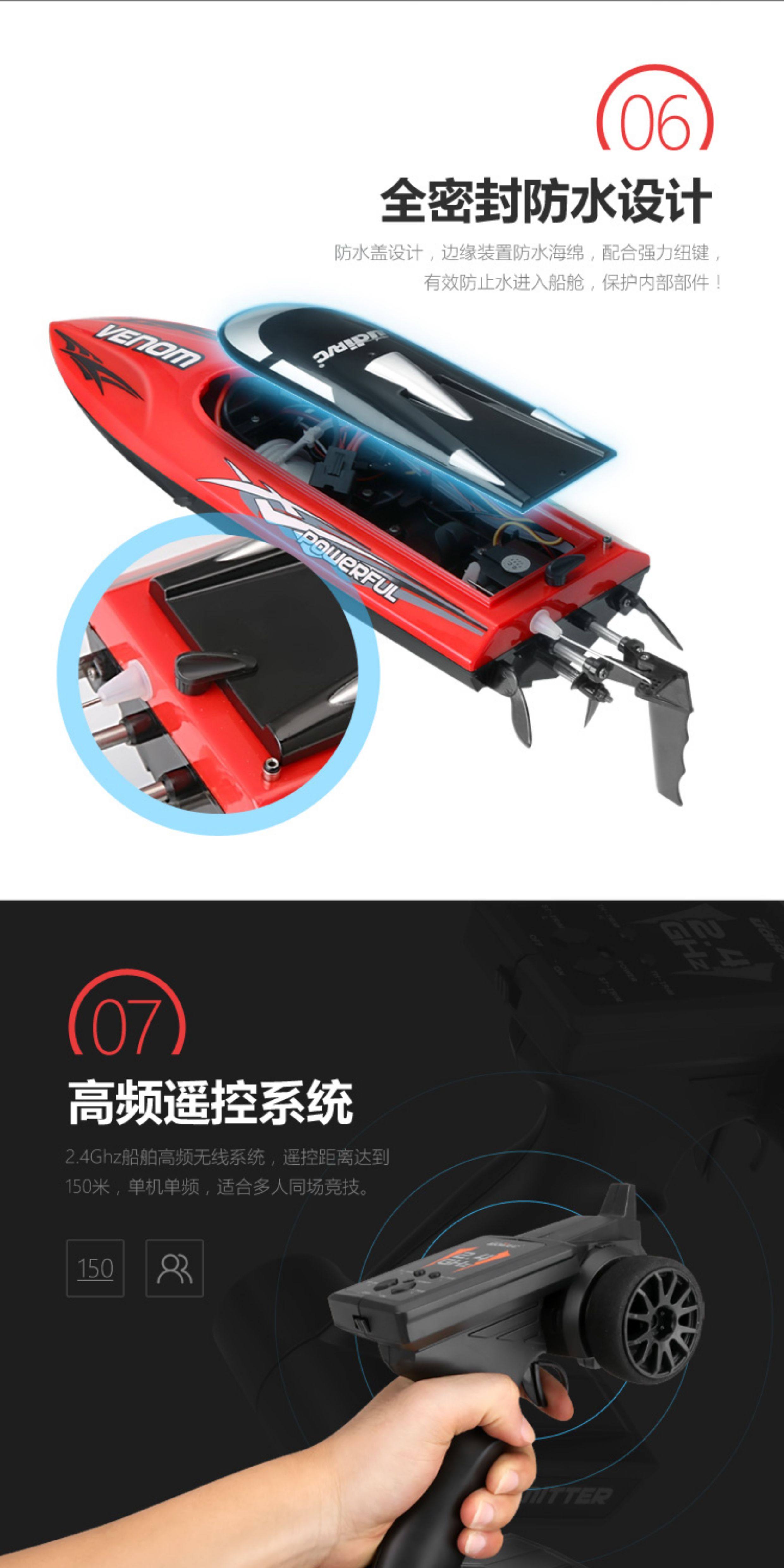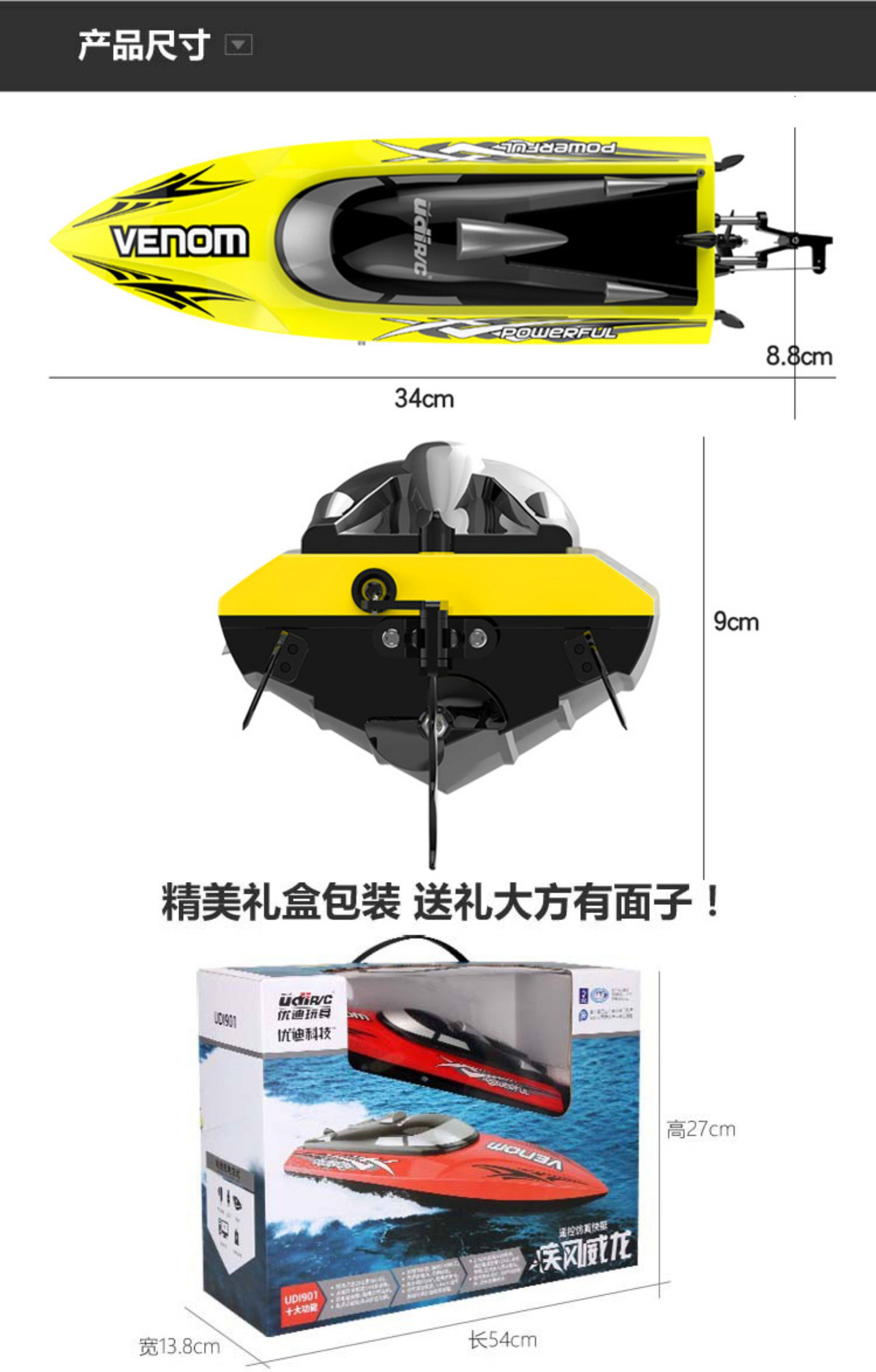 Youdi Children's Toy Rechargeable Large Remote Control Boat Waterproof High-Speed Speedboat Can Be Launched into the Water Ship Model for Boys
