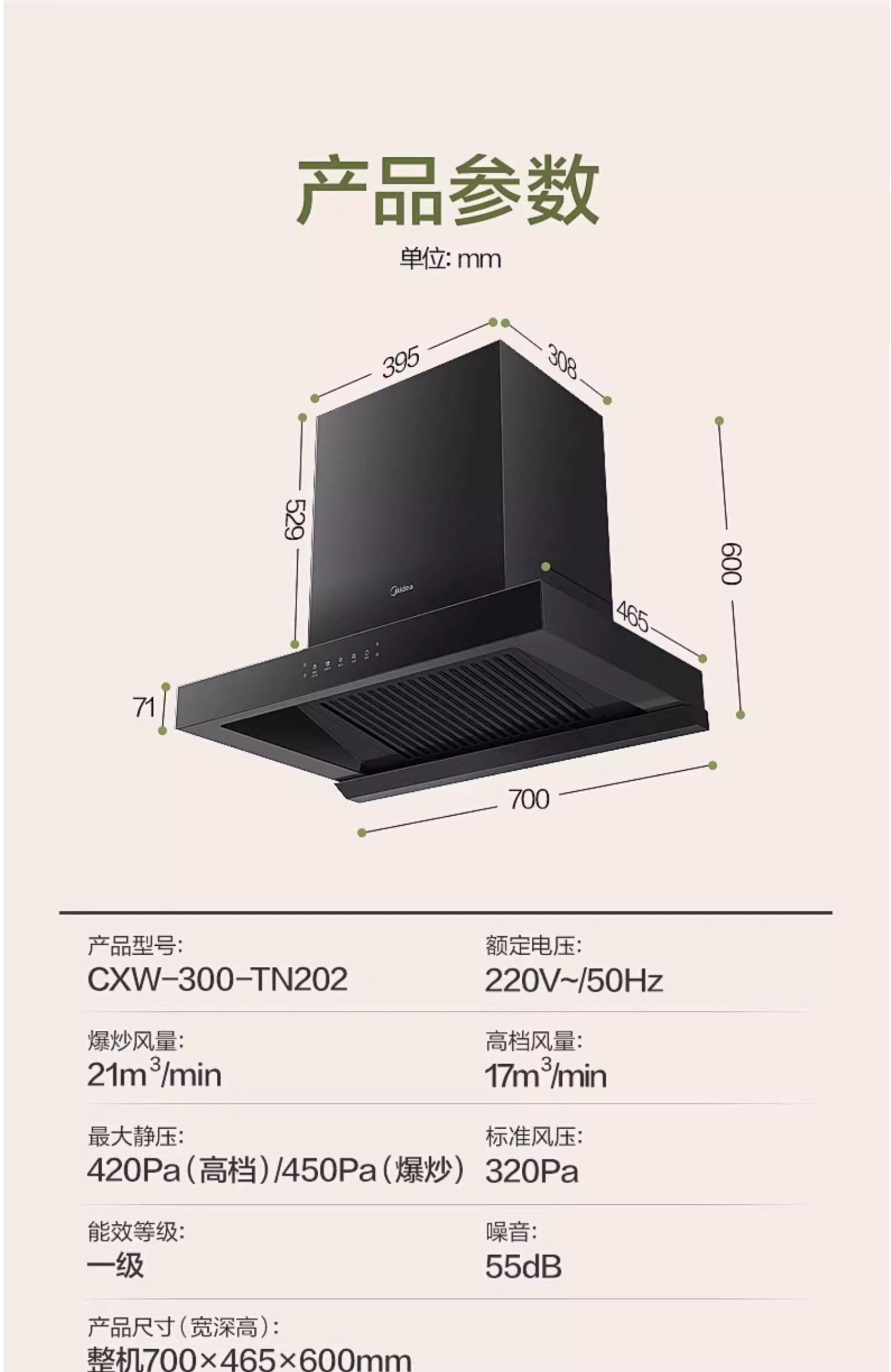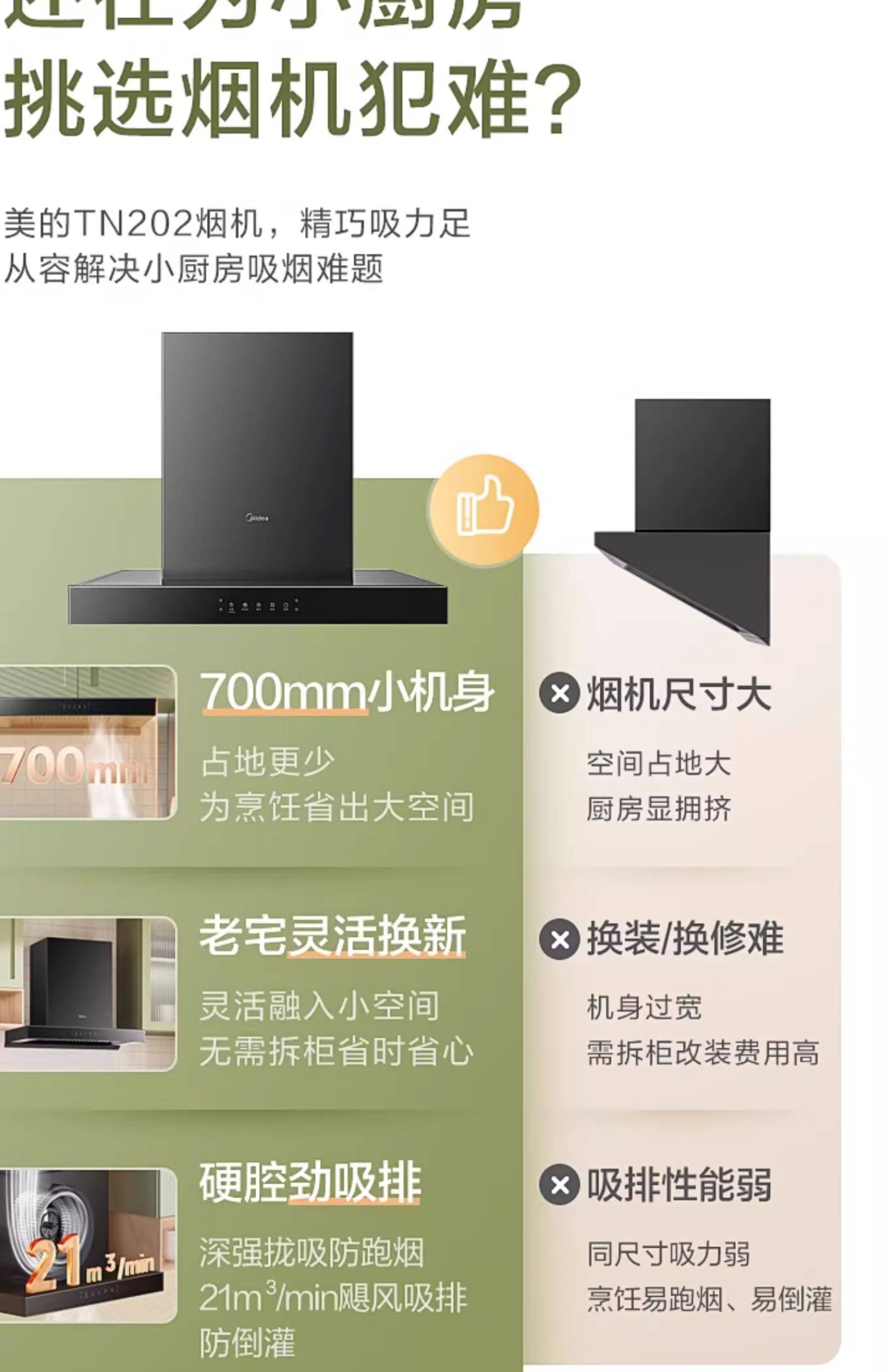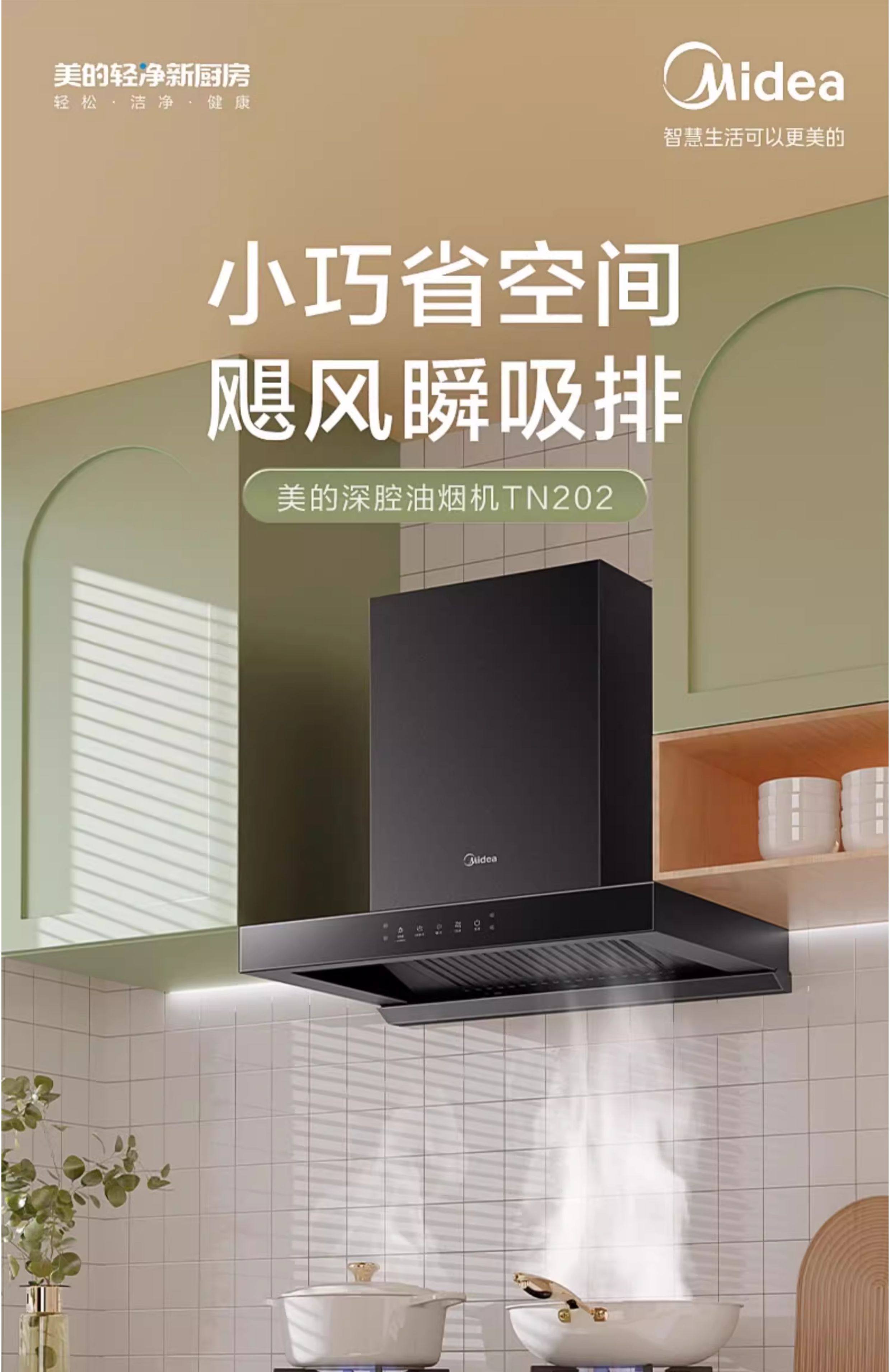 Midea Tn202 Range Hood for Home Kitchen, Large Suction Power, Small Top-Mounted Range Hood, Official Flagship Store