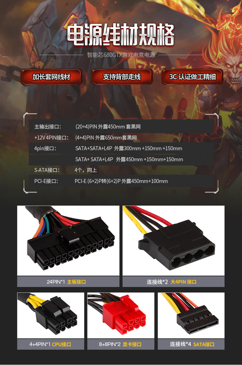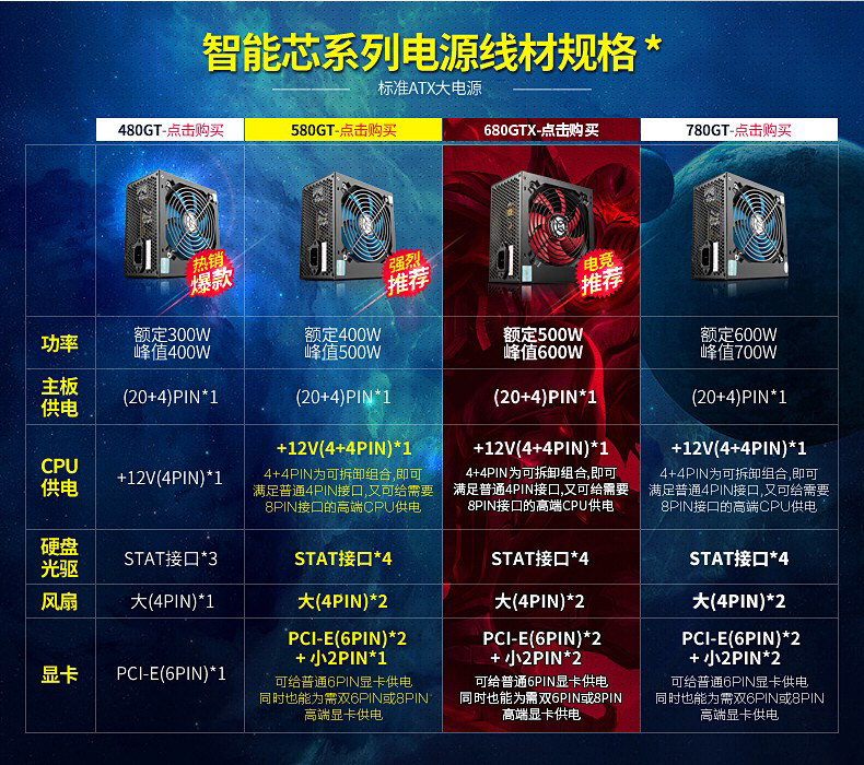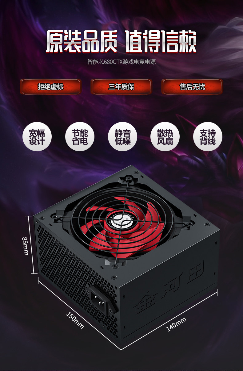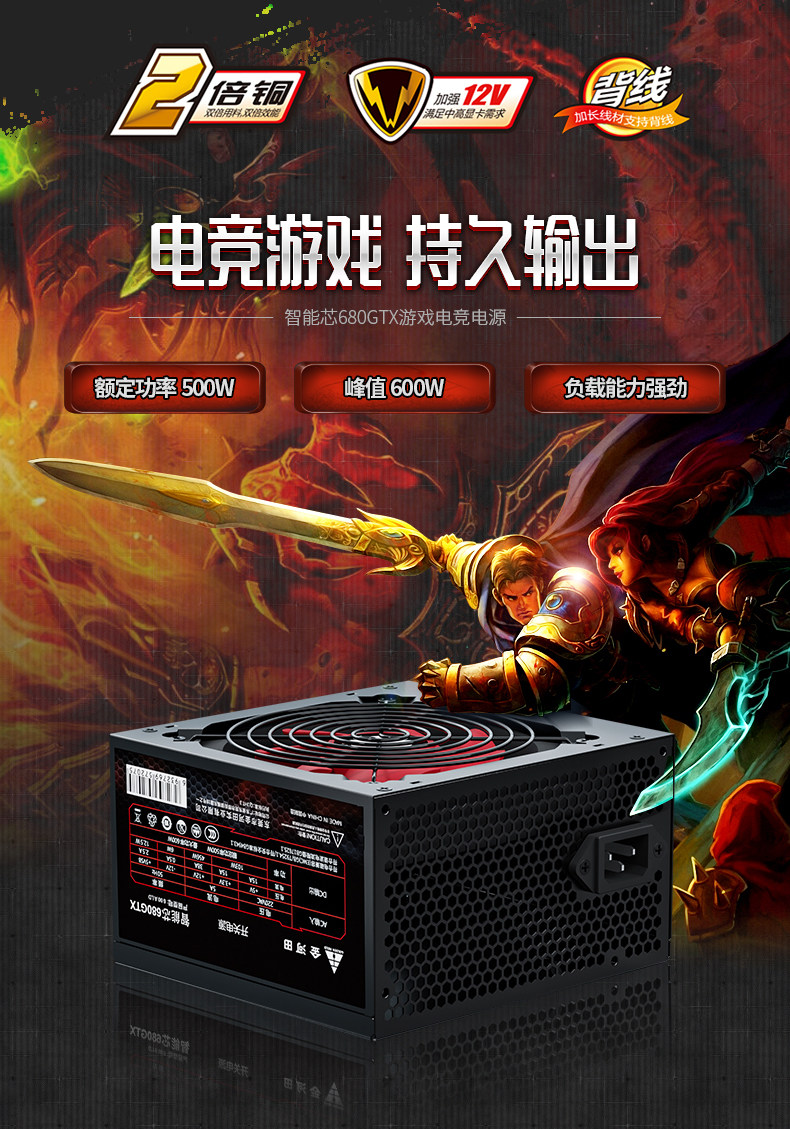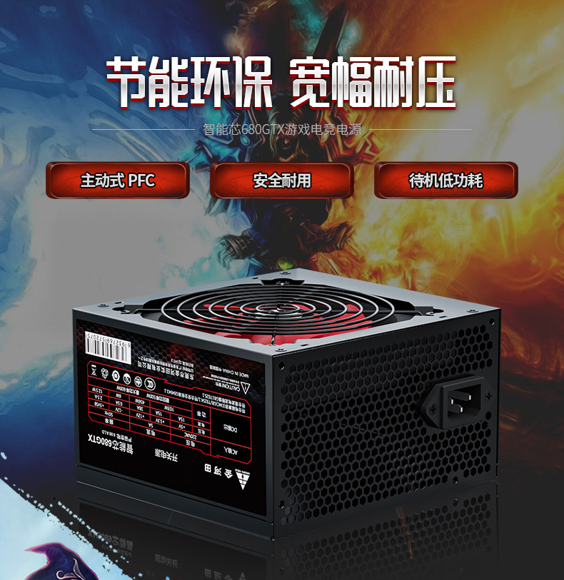 Jinhetian Smart Core 680Gtx Desktop Computer Power Supply Rated at 500W Silent Power Supply with a Peak Power of 600W