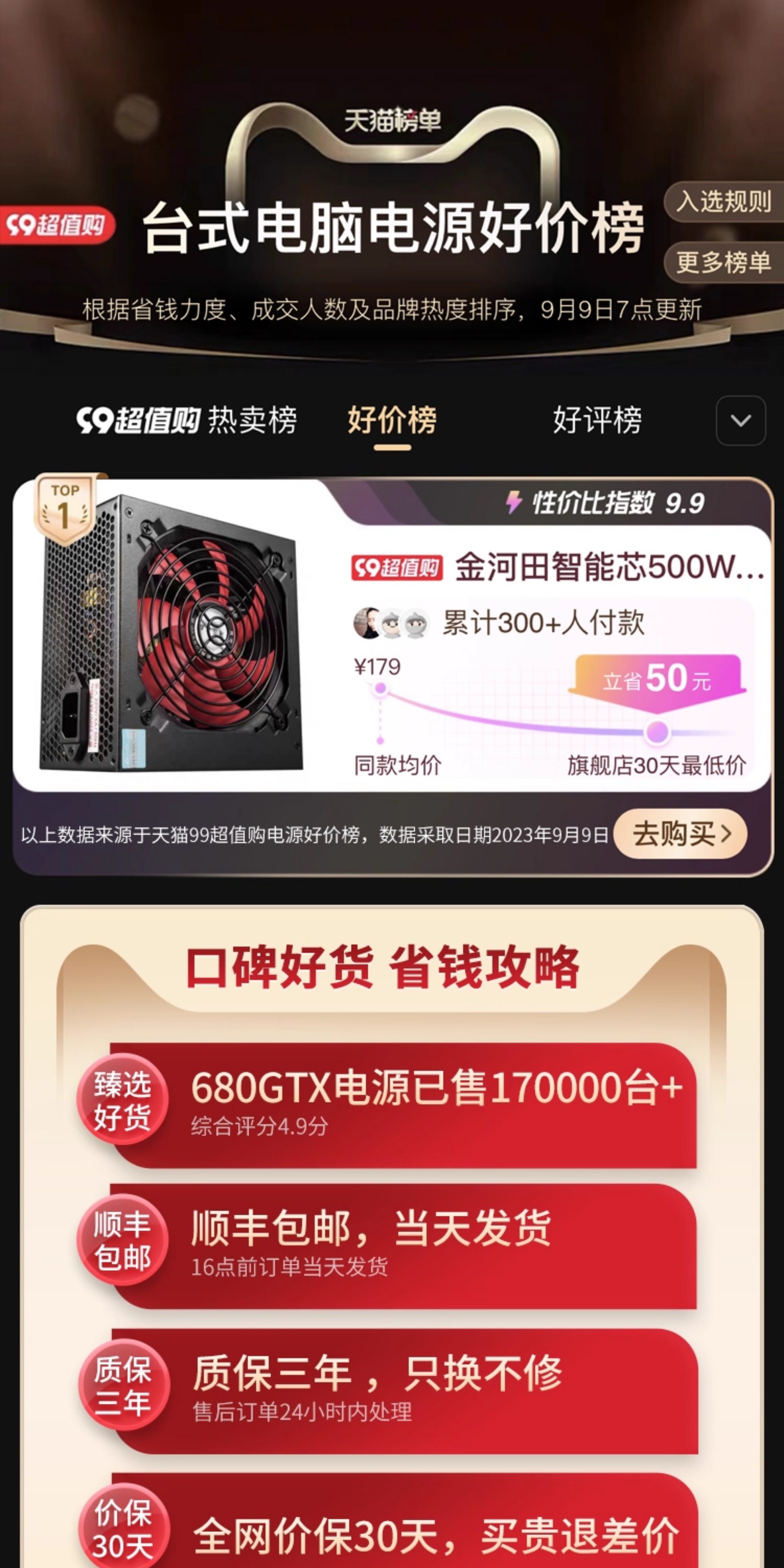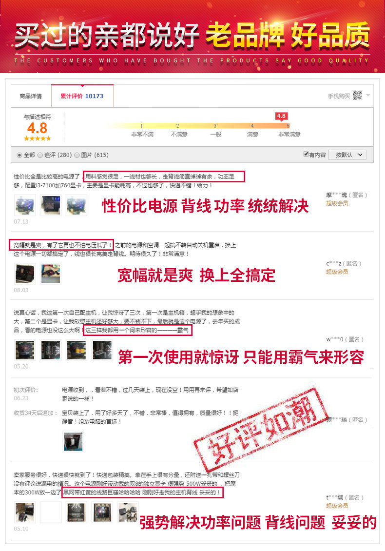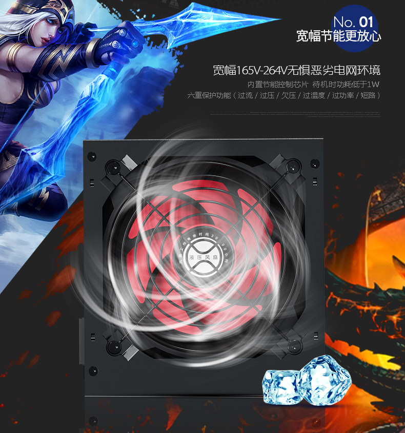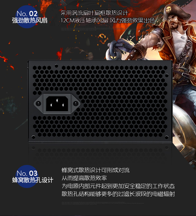 Jinhetian Smart Core 680Gtx Desktop Computer Power Supply Rated at 500W Silent Power Supply with a Peak Power of 600W