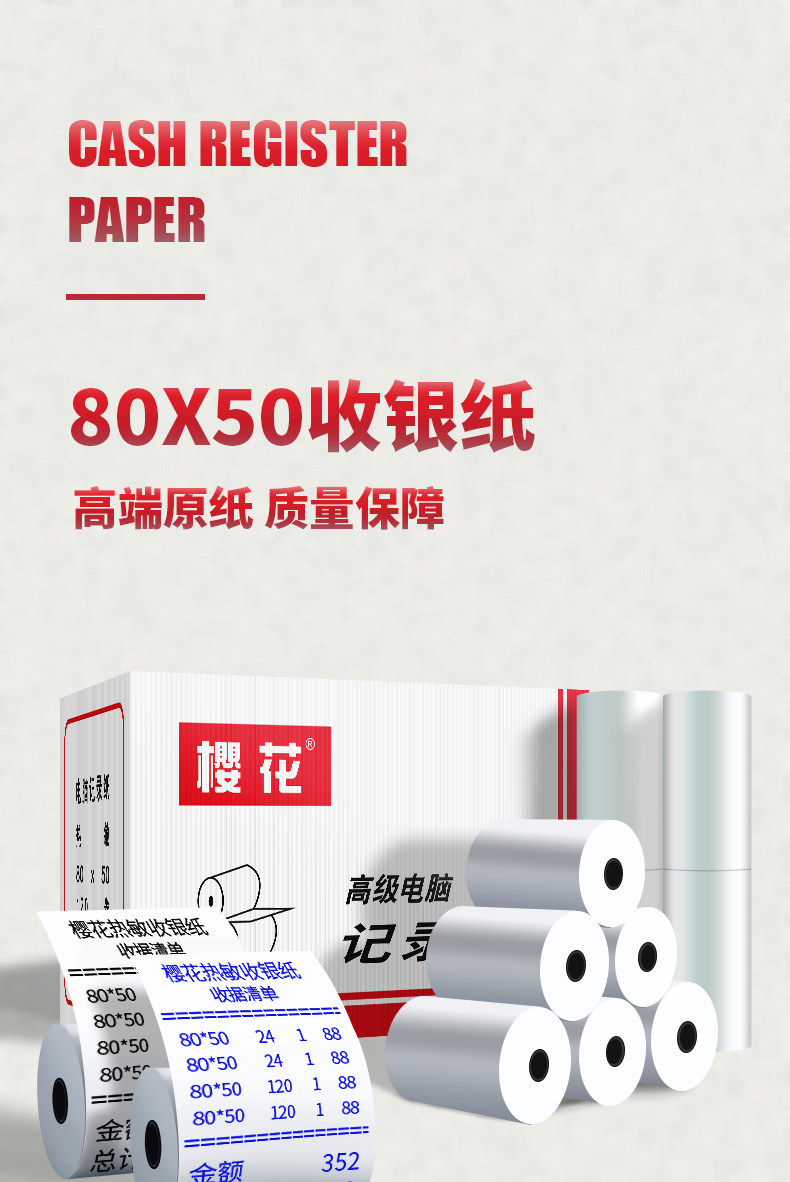 Sakura Kitchen Thermal Receipt Paper 80X50 for Restaurant Kitchen, Fast Food Restaurant Printing Paper, Milk Tea Shop Receipt Paper, Takeaway Order Paper, Queue Number Paper, 24 Rolls/Box