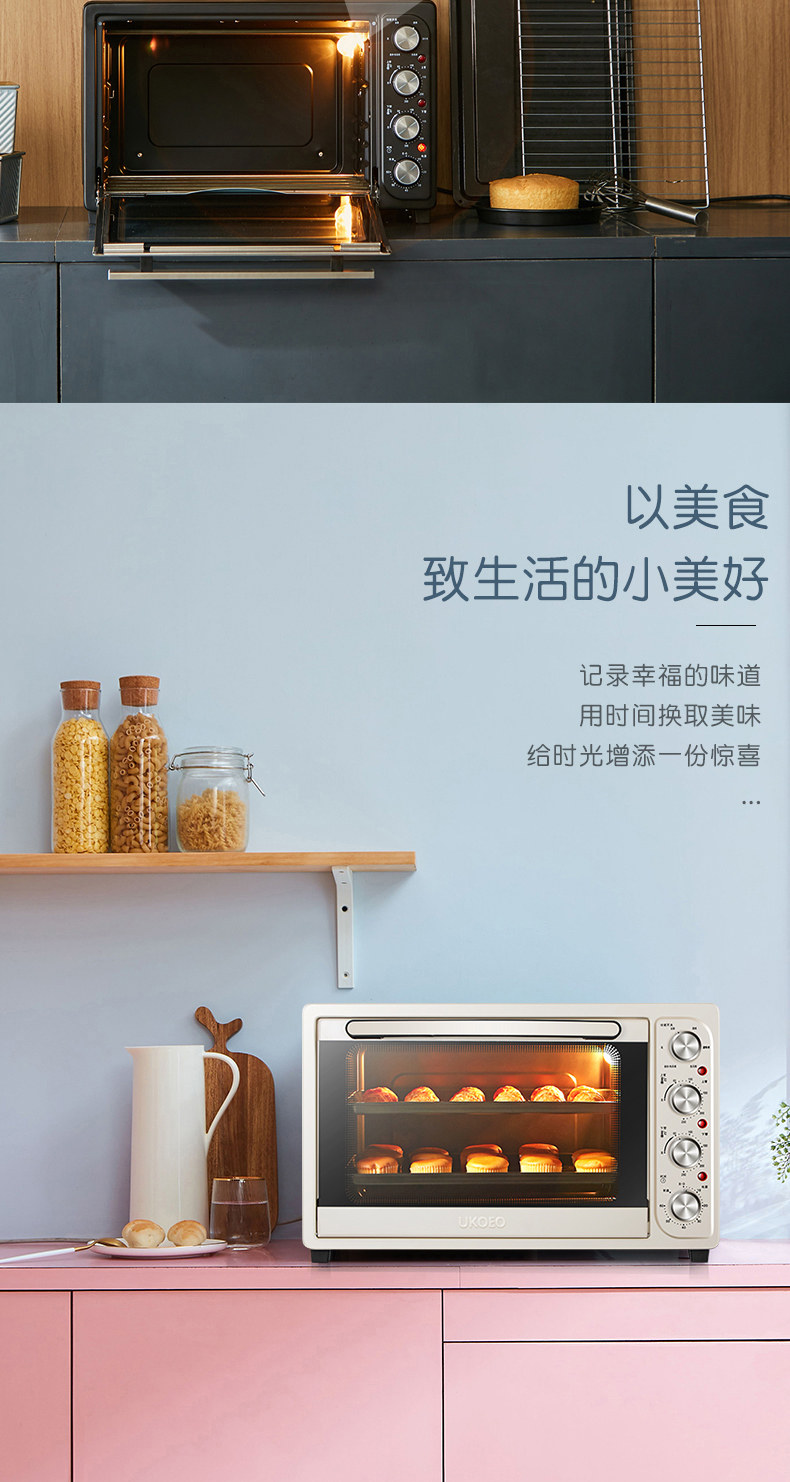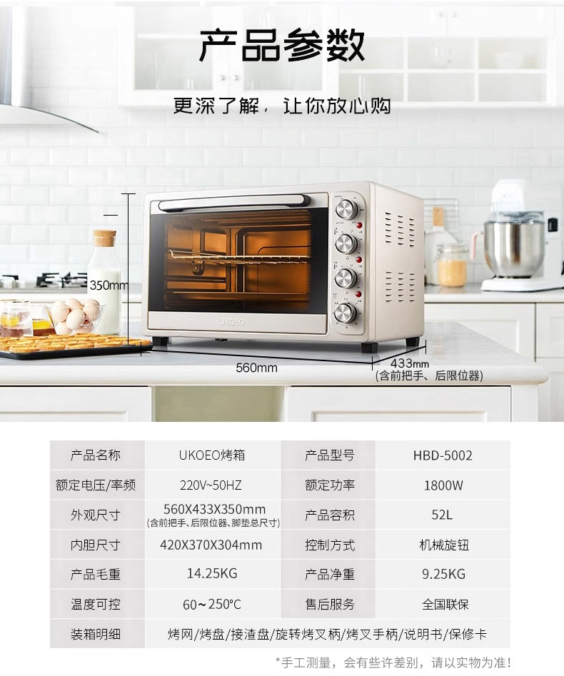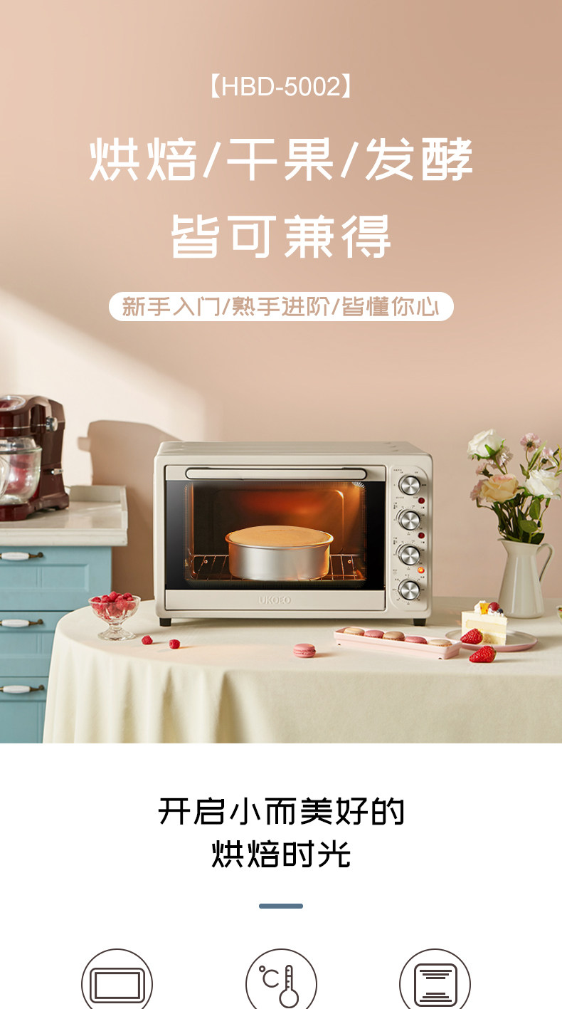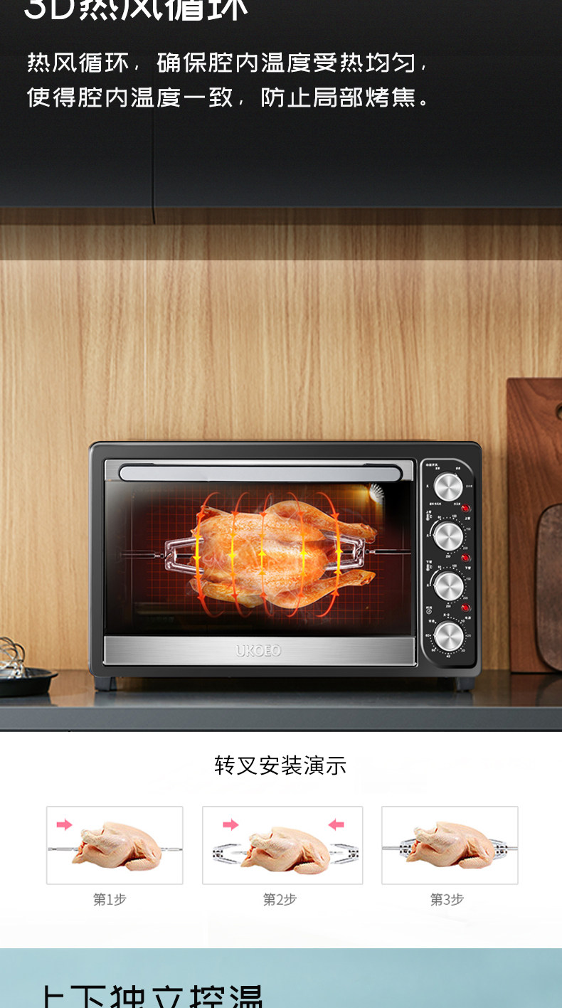 Ukoeo Hbd-5002 Fully Automatic Electric Oven Large Capacity 52L Baking 8 Tubes Multi-Functional Household Small Oven