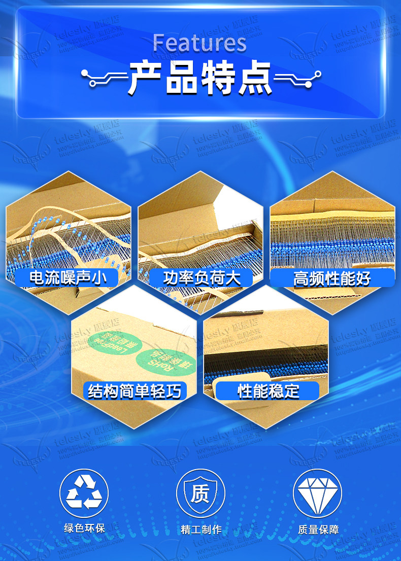 Metal Film Resistor Five-Color Ring Resistor 1% 470 Ohms 1/4W 0.25W 1 Box (5000 Pieces Per Box)