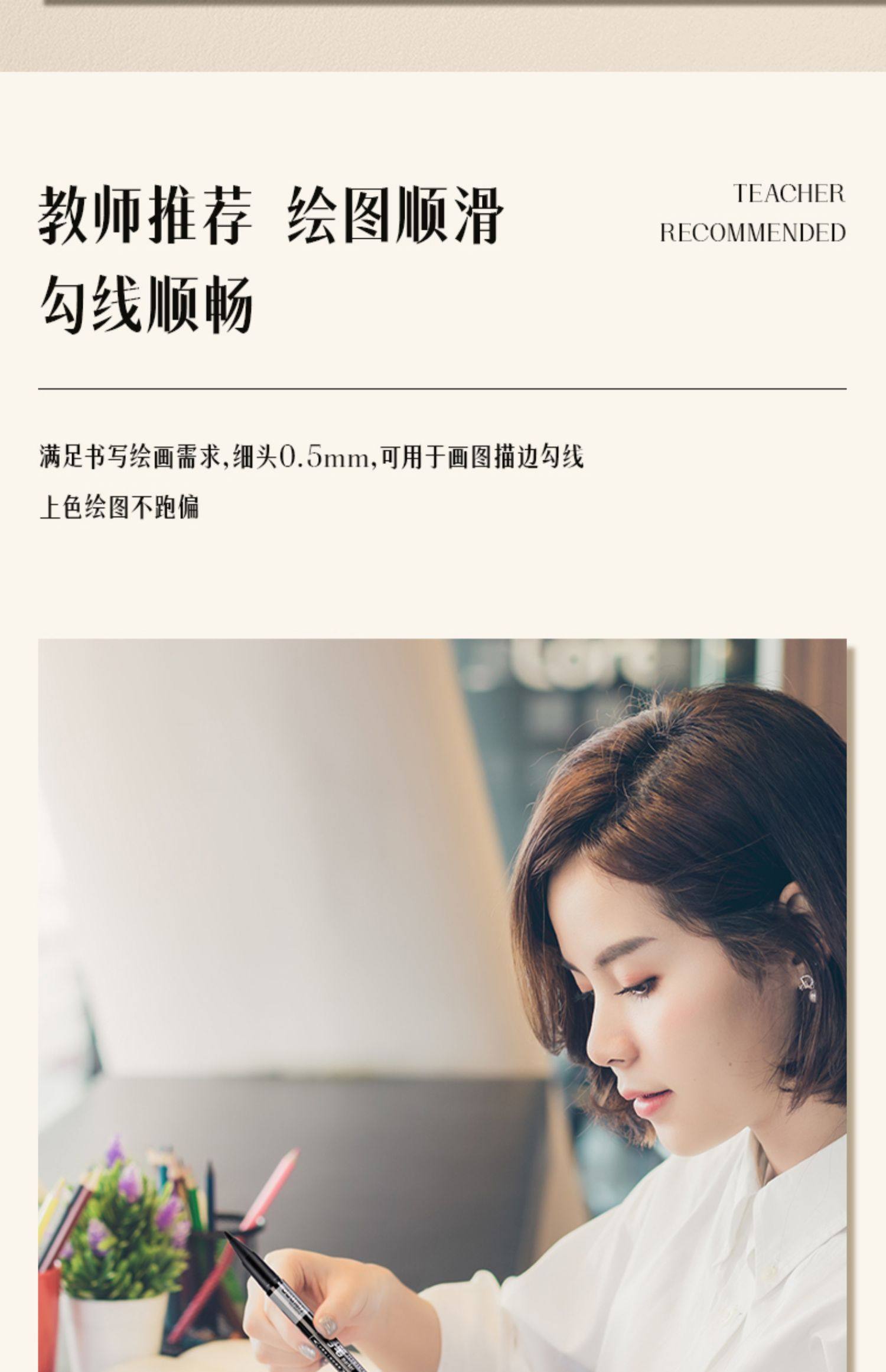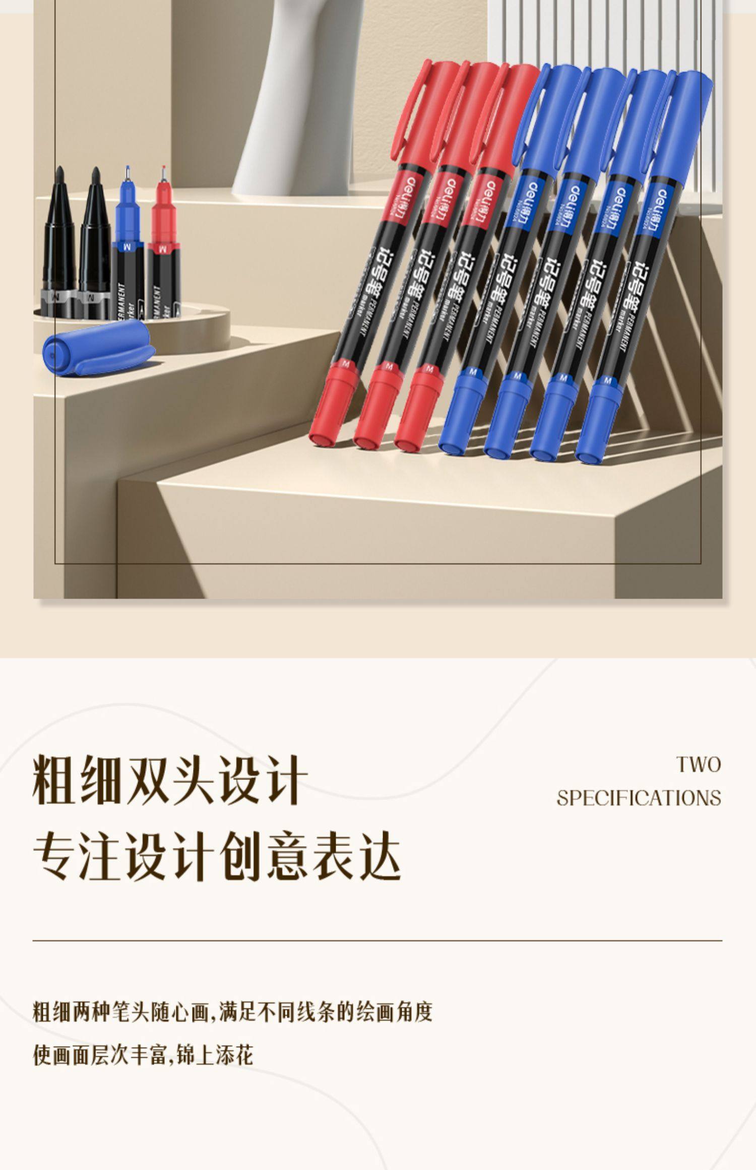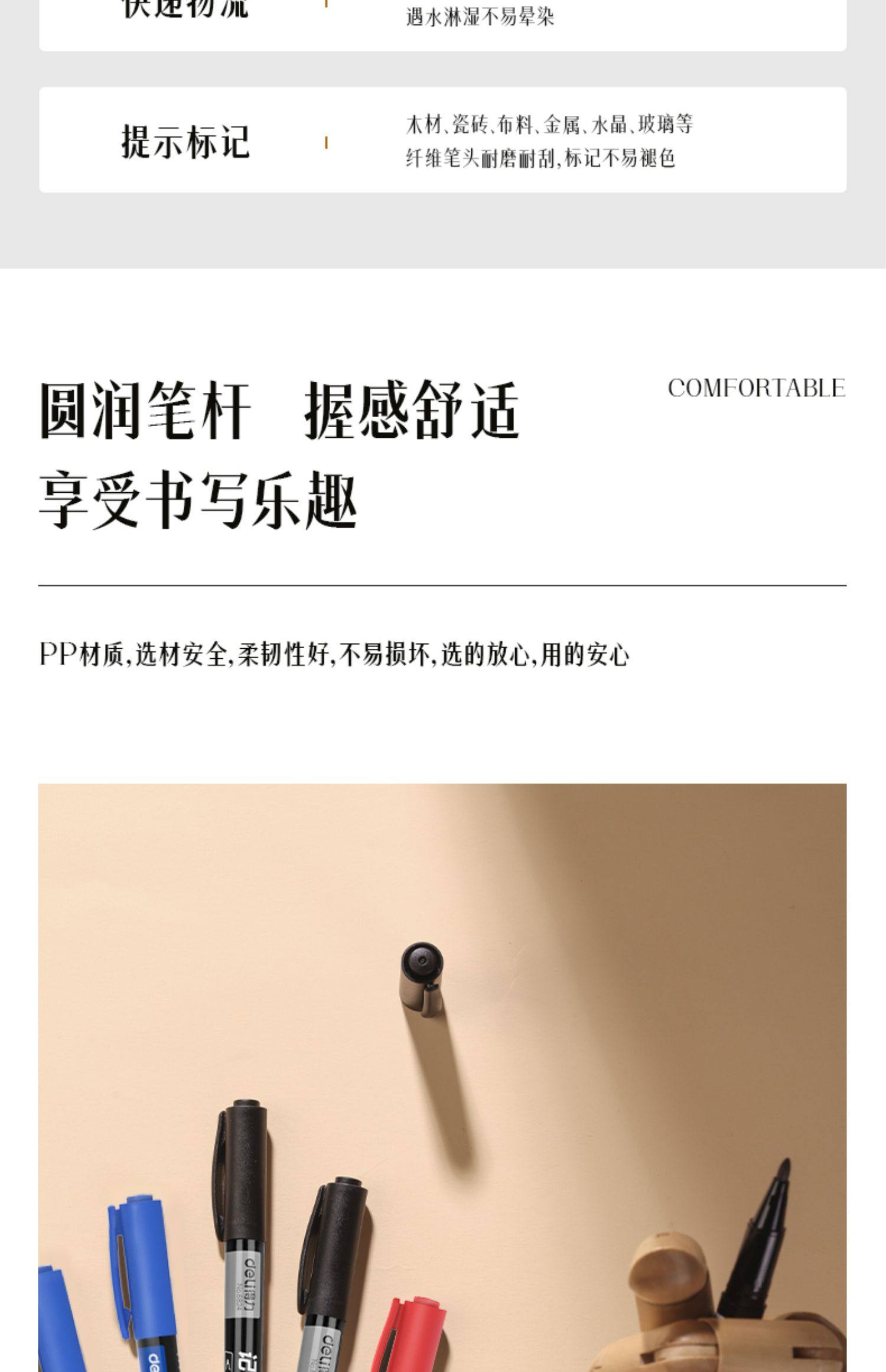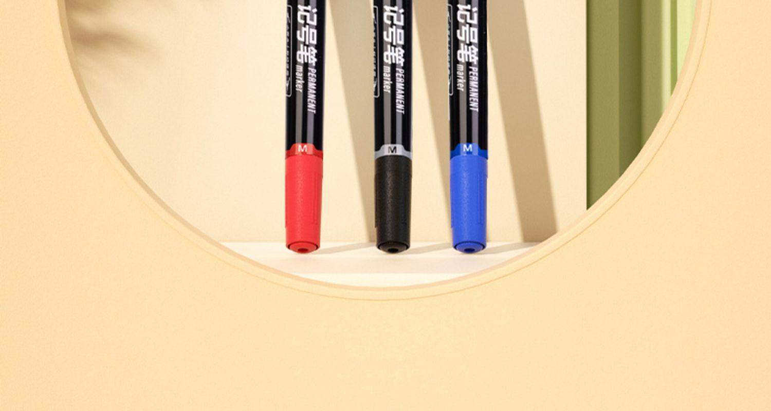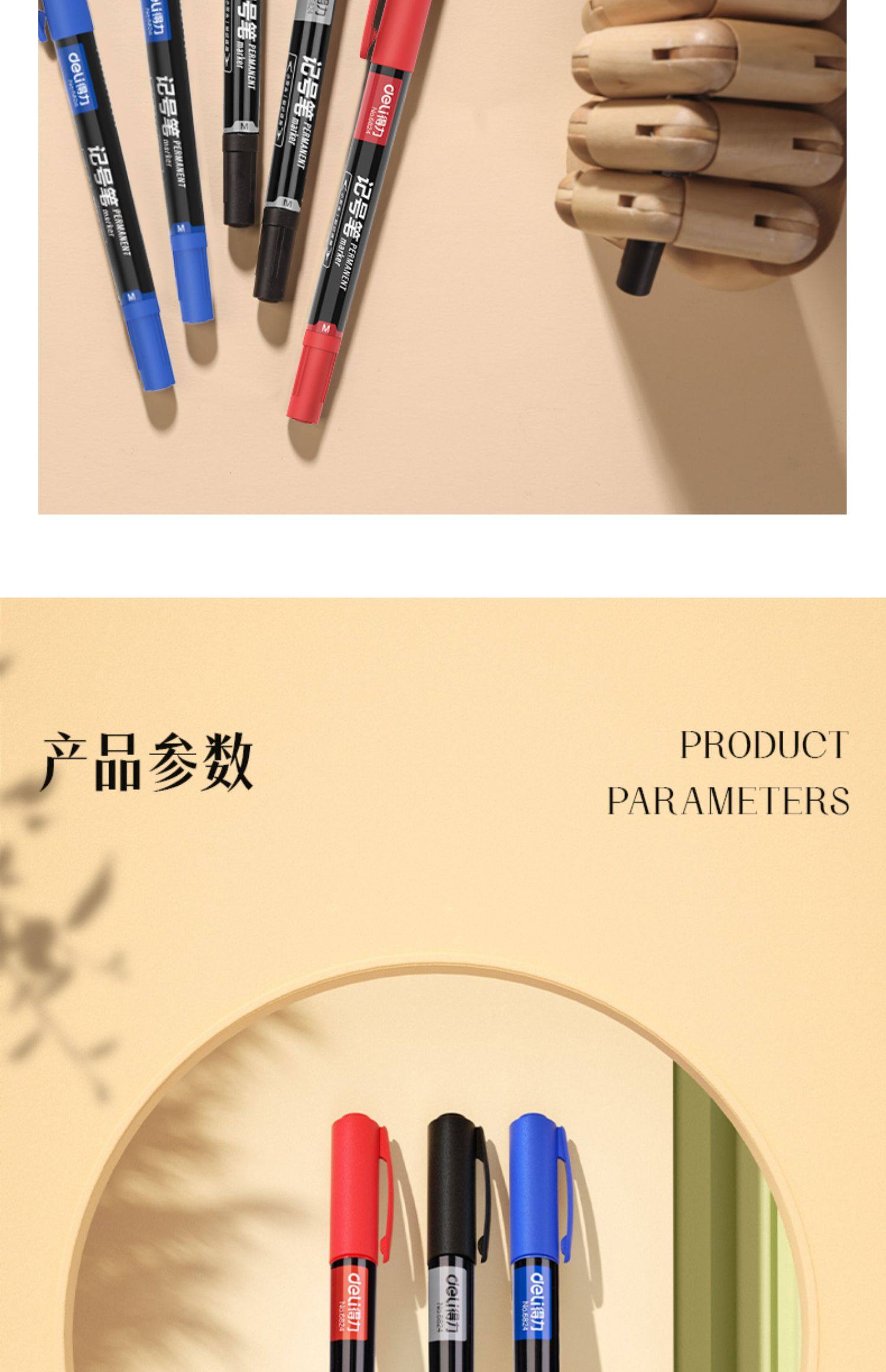Deli Small Double-Headed Oil-Based Marker Pen, Fine Tip Marker Pen, Outlining Pen for Children's Drawing, Student Use, Black Art Student Outlining Pen, Colored Pen