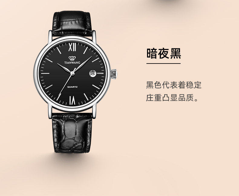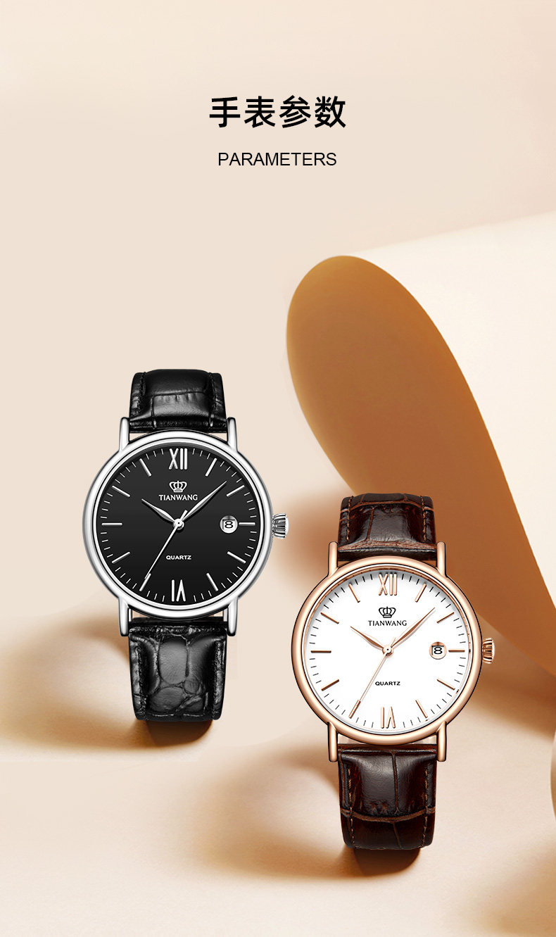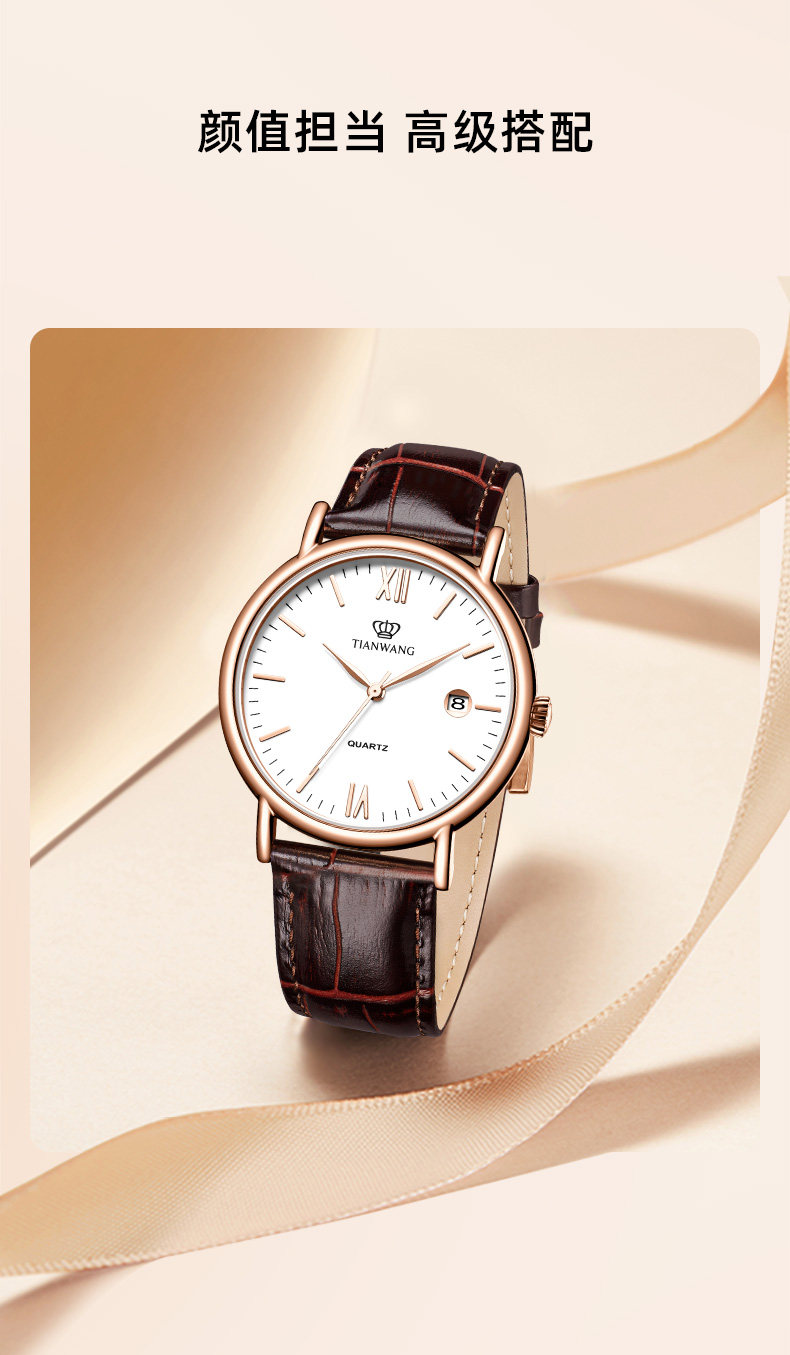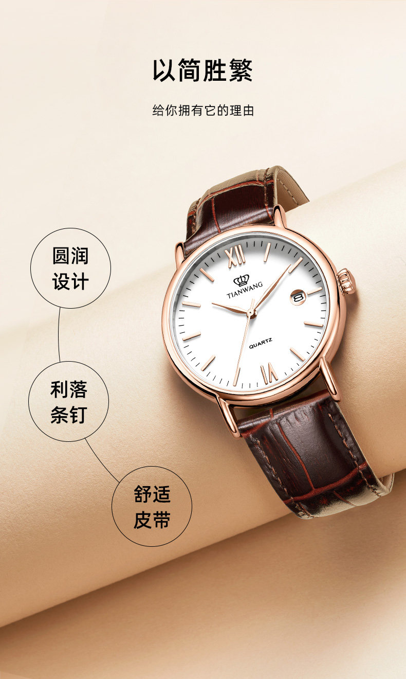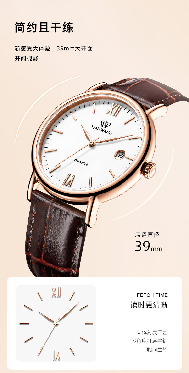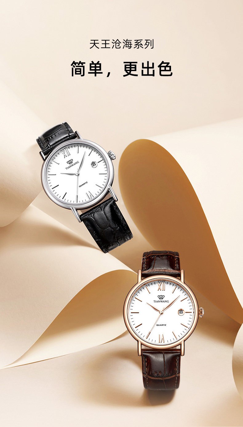 Tianwang Watch Canghai Series Simple Casual Genuine Leather Quartz Watch for Men, New Year Gift for Boyfriend 3874