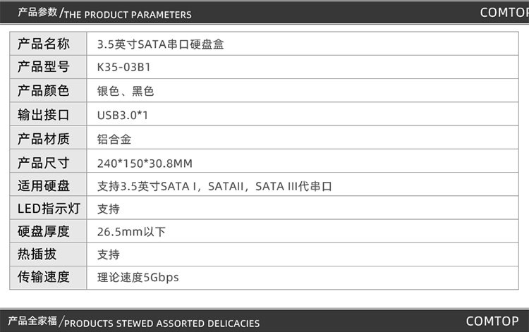 Mobile Hard Drive Enclosure 3.5inch Sata Solid State Drive Usb3.0 Reader Enclosure Serial Port External Mechanical Enclosure