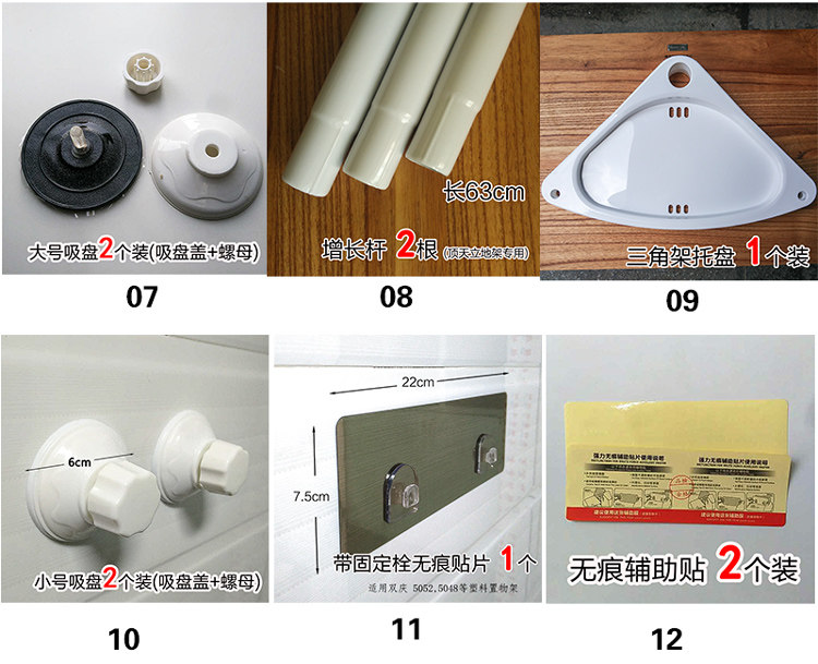 | Color Classification | Large Suction Cups (8cm), Two Pack,2 Large Suction Cups (with Cover + Nut),2 Small Suction Cups (with Cover + Nut),Pay the difference in postage,Suction Cup Auxiliary Stickers 2 Pack,One Adhesive Hook (with Latch),One Hook-And-Loop Adhesive Pad (No Trace),Short Hook Patch,2 Window Cleaning Cloth Covers,Two Silicone Strips,Aluminum Alloy Edge + Silicone Strip,Triangular Pallet,2 Pieces of Special Traceless Towel Bars |