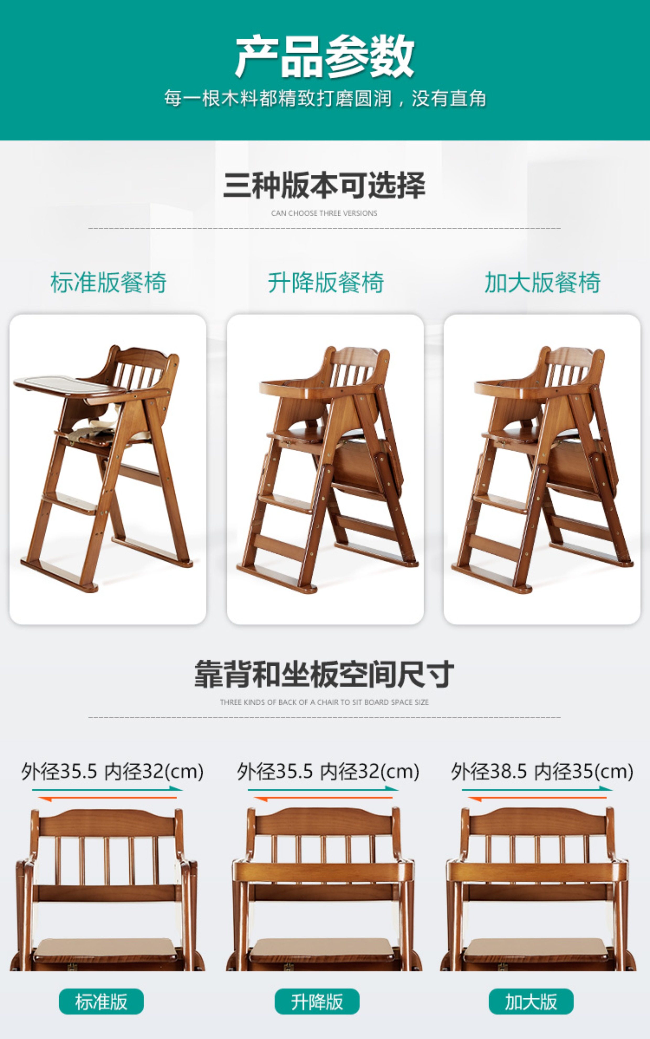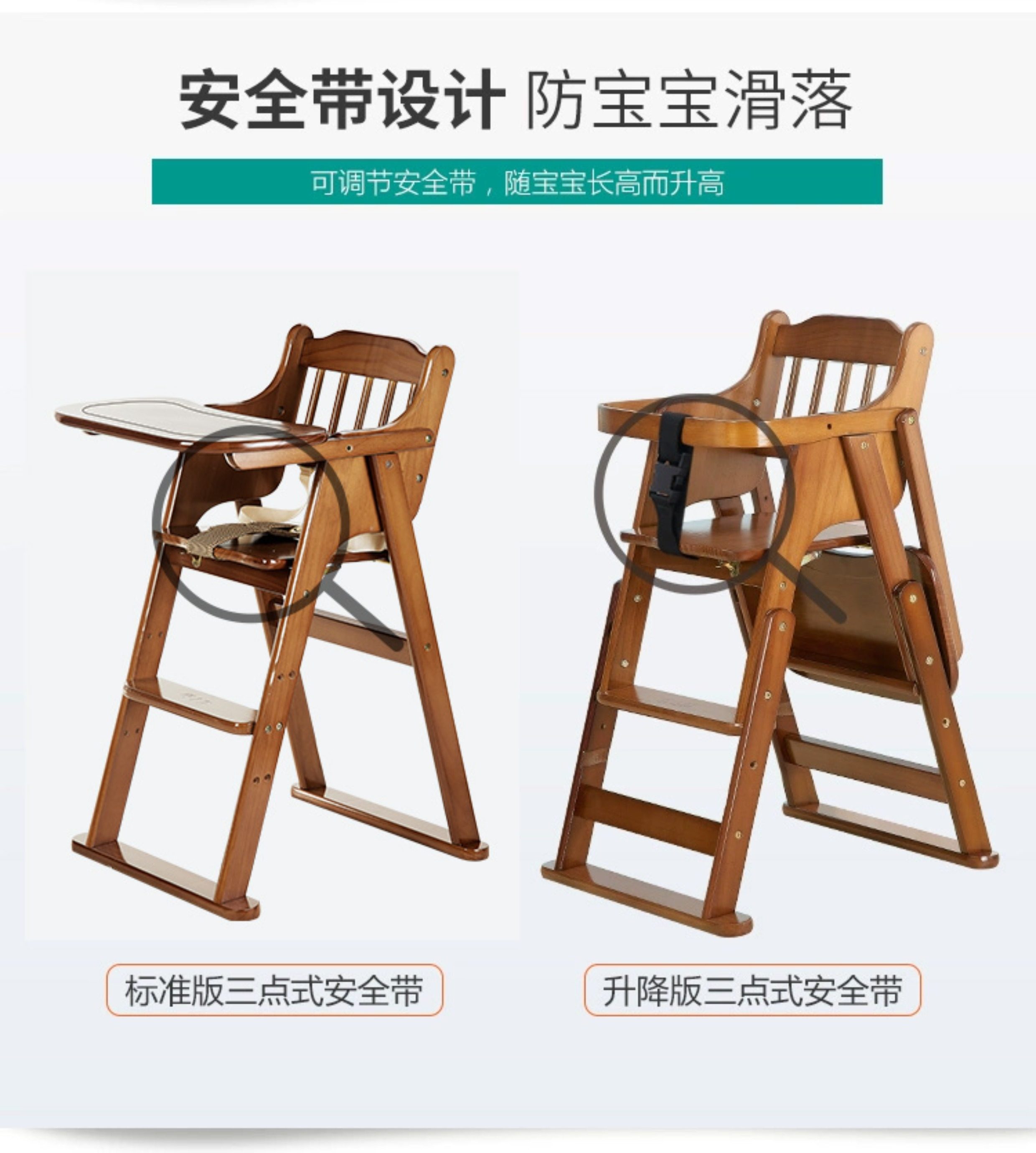 Baby Dining Chair, Children's Dining Table Chair, Portable Multi-Functional Foldable Seat, Solid Wood Dining Chair, Baby Home Use