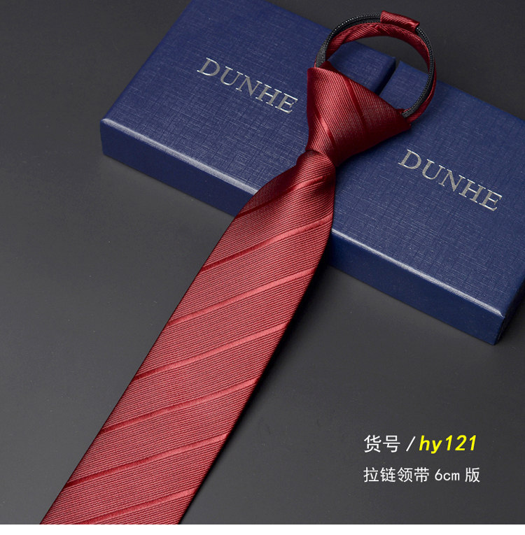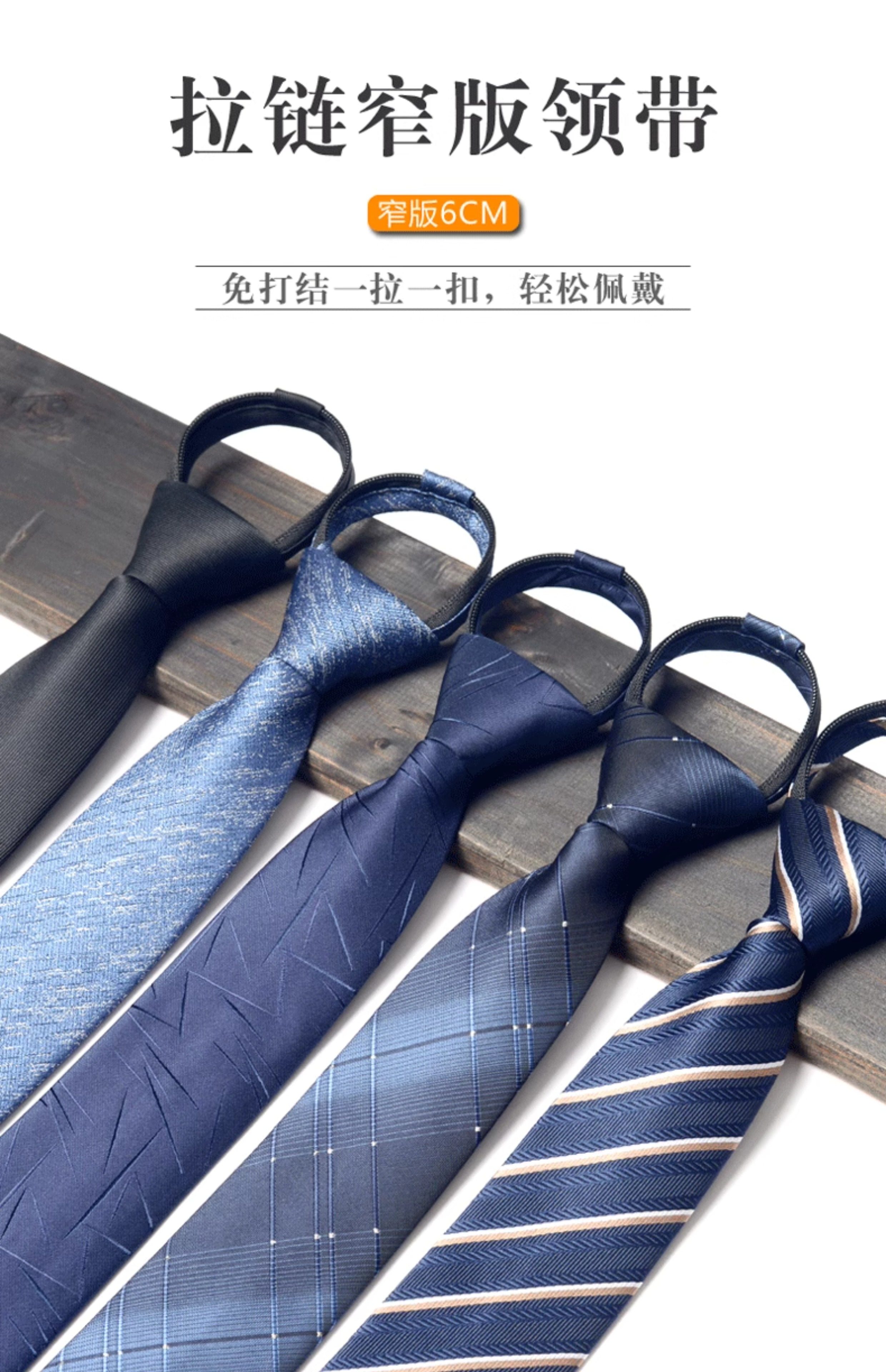 6cm Lazy-Style Korean Narrow No-Knot Zipper Tie for Men and Female Students, British Business Groom Wedding Red Blue Black