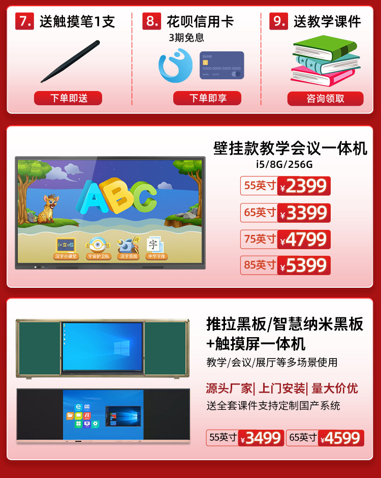 Color Classification No False Advertising on Dimensions. Our 55inch = Industry Standard 65 Leds/D,Refuse to Use Defective/Refurbished Screens, No Falsehoods or Tricks,We Offer High-Quality Products with Excellent Value for Money, and We'Re Committed to Honest Business Practices. No Deceptive Tactics Here,More Than Just Competitive Prices, We Prioritize Quality and Service. We'Re Committed to Honest Business Practices,32inch High Configuration [I5/8G/256G] Comes with Teaching Resources,Top-Of-The-Line Configuration: [I7/8Gb/256Gb] - Includes Complimentary Learning Resources,43inch High Configuration [I5/8G/256G] Comes with Teaching Resources,Top-Of-The-Line Configuration: [I7/8Gb/256Gb] - Includes Complimentary Learning Resources,50inch High Configuration [I5/8G/256G] Comes with Teaching Resources,Top-Of-The-Line Configuration: [I7/8Gb/256Gb] - Includes Complimentary Learning Resources,55inch High Configuration [I5/8G/256G] Comes with Mobile Stand,55inch Top Configuration [I7/8G/256G] Comes with Mobile Stand,65inch High Configuration [I5/8G/256G] Comes with Mobile Stand,65inch Top Configuration [I7/8G/256G] Comes with Mobile Stand,75inch High Configuration [I5/8G/256G] Comes with Mobile Stand,75inch Top Configuration [I7/8G/256G] Comes with Mobile Stand,85inch High Configuration [I5/8G/256G] Comes with Mobile Stand,85inch Top Configuration [I7/8G/256G] Comes with Mobile Stand,55inch Dual System [I5 Fourth Generation 8+256g] Comes with Mobile Stand,55inch Dual System [I7 Fourth Generation 8+256g] Comes with Mobile Stand,65inch Dual System [I5 Fourth Generation 8+256g] Comes with Mobile Stand,65inch Dual System [I7 Fourth Generation 8+256g] Comes with Mobile Stand,75inch Dual System [I5 Fourth Generation 8+256g] Comes with Mobile Stand,75inch Dual System [I7 Fourth Generation 8+256g] Comes with Mobile Stand,85inch Dual System [I5 Fourth Generation 8+256g] Comes with Mobile Stand,85inch Dual System [I7 Fourth Generation 8+256g] Comes with Mobile Stand,86inch Dual System [I5 Fourth Generation 8+256g] Comes with Mobile Stand,98inch Dual System [I5 Fourth Generation 8+256g] Comes with Mobile Stand,98inch Dual System [I7 Sixth Generation 8+256g] Comes with Mobile Stand,Android [4+32g] - Includes Mobile Stand & Screen Mirroring Demo,Android [4+32g] - Includes Mobile Stand & Screen Mirroring Demo,Android [4+32g] - Includes Mobile Stand & Screen Mirroring Demo,Android [4+32g] - Includes Mobile Stand & Screen Mirroring Demo,Upgraded Version - 55inch I5 Sixth Generation 8G+256G+ Comes with Mobile Stand,Upgraded Version - 55inch I5 Eighth Generation 8G+256G + Free Mobile Stand,Upgraded Version - 65inch I5 Sixth Generation 8G+256G+ Comes with Mobile Stand,Upgraded Version - 65inch I5 Eighth Generation 8G+256G + Free Mobile Stand,Upgraded Version - 65inch I7 Eighth Generation 8G+256G + Free Mobile Stand,Upgraded Version - 75inch I5 Sixth Generation 8G+256G+ Comes with Mobile Stand,Upgraded Version - 75inch I5 Eighth Generation 8G+256G + Free Mobile Stand,Upgraded Version - 75inch I7 Eighth Generation 8G+256G + Free Mobile Stand,Upgraded Version - 85inch I5 Sixth Generation 8G+256G+ Comes with Mobile Stand,Upgraded Version - 85inch I5 Eighth Generation 8G+256G + Free Mobile Stand,Upgraded Version - 85inch I7 Eighth Generation 8G+256G + Free Mobile Stand,Upgraded Version - 55inch Dual System I5 Sixth Generation 8G+256G+ Free Mobile Stand,Upgraded Version - 55inch Dual System I5 Eighth Generation 16G+256G+ Free Mobile Stand,Upgraded Version - 65inch Dual System I5 Sixth Generation 8G+256G+ Free Mobile Stand,Upgraded Version - 65inch Dual System I5 Eighth Generation 16G+256G+ Free Mobile Stand,Upgraded Version - 75inch Dual System I5 Sixth Generation 8G+256G+ Free Mobile Stand,Upgraded Version - 75inch Dual System I5 Eighth Generation 16G+256G+ Free Mobile Stand,Upgraded Version - 85inch Dual System I5 Eighth Generation 16G+256G+ Free Mobile Stand,Upgraded Version - 85inch Dual System I7 Tenth Generation 16G+256G+ Comes with Mobile Stand,Upgraded Version - 98inch Dual System I7 Eighth Generation 16G+256G+ Free Mobile Stand,Upgraded Version - 98inch Dual System I7 12Th Generation 16G+512G + Free Mobile Stand,21.5inch Win System Equipped with I3/4G/128G Wall Hanging,Push-Pull Smart Blackboard/Anti-Glare Screen/Built-In Camera/Tv/Upgrade Configuration..Optional