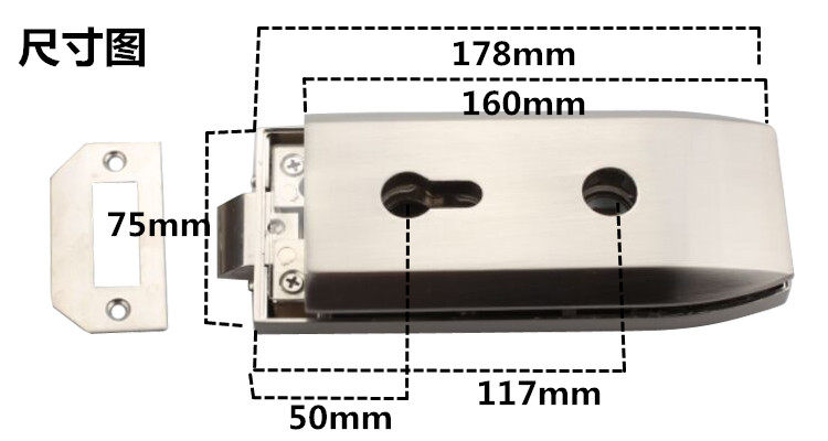 Glass Partition Single Door Handle Glass Lock Glass Door Handle Lock with Handle Opening Glass Door Lock Notch Flat Mouth