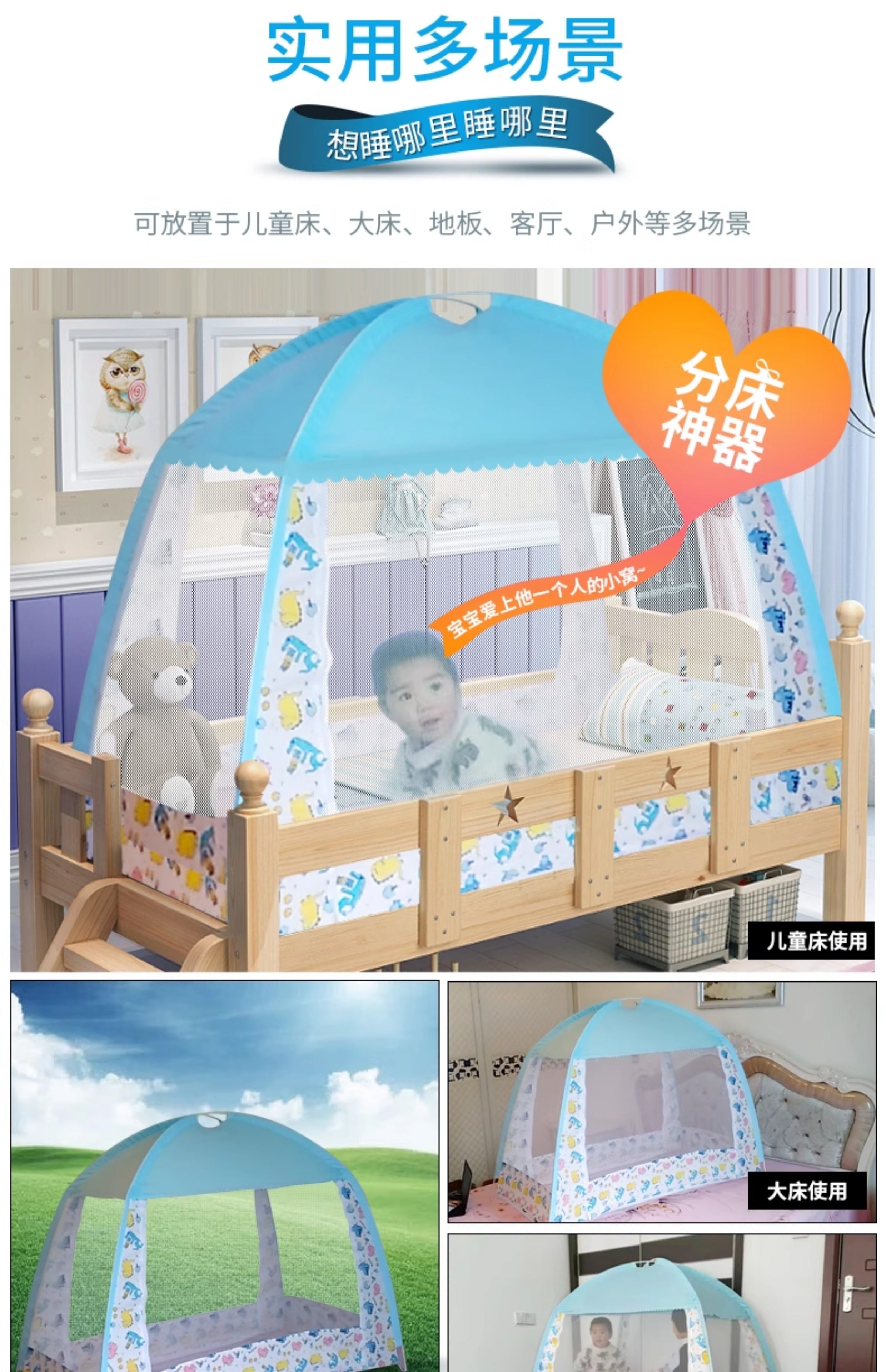 Children's Bed Baby Mosquito Net Cover Infant Splicing Crib Anti-Fall Special for Girls Foldable Boys Princess Yurt