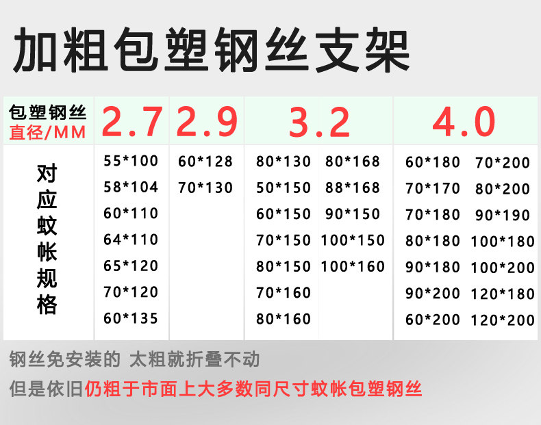 | Applicable Bed Size | Notice!By Bed[Outer Diameter, Length, and Width]Purchase!Otherwise, You'Ll Buy a Small Mattress That Won'T Fit!,This Mosquito Net Bracket Has Been Fully Upgraded[Steel Wire Bracket]!Non-Glass Fiber Support!,Patent Upgrade[No Installation Required][Removable and Washable][Easy to Fold],Ikea Miron Bed Small Size Special/Height about 130cm,Ikea Miron Bed Medium Size Only/Height about 140cm,Ikea Miron Bed Large Size Only/Height about 140cm,Width 55*Length 100/Un2 Door/Height about 100cm,Width 58*Length 104/Un2 Door/Height about 100cm,Width 60*Length 105/Un2 Door/Height about 100cm,Width 60*Length 110/Un2 Door/Height about 100cm,Width 64*Length 110/Un2 Door/Height about 100cm,Width 60*Length 120/Un2 Door/Height about 100cm,Width 65*Length 120/Un2 Door/Height about 100cm,Width 70*Length 120/Un2 Door/Height about 100cm,Width 60*Length 128/2 Doors/Height about 110cm,Width 60*Length 130/2 Doors/Height about 110cm,[Kindergarten]Width 60*Length 135/2 Doors/Height about 100cm,Width 70*Length 130/Un3 Doors/Height about 110cm,Width 75*Length 125/2 Doors/Height about 130cm,Width 80*Length 130/2 Doors/Height about 130cm,Width 50*Length 150/3 Doors/Height about 130cm,[Kindergarten]Width 60*Length 140/3 Doors/Height about 130cm,Width 60*Length 150/3 Doors/Height about 130cm,Width 70*Length 150/3 Doors/Height about 130cm,Width 80*Length 150/3 Doors/Height about 130cm,Width 60*Length 160/3 Doors/Height about 130cm,Width 70*Length 160/3 Doors/Height about 130cm,Width 80*Length 160/3 Doors/Height about 130cm,Width 80*Length 168/3 Doors/Height about 130cm,Width 80*Length 170/3 Doors/Height about 130cm,Width 88*Length 168/3 Doors/Height about 130cm,Width 90*Length 170/3 Doors/Height about 130cm,Width 90*Length 150/3 Doors/Height about 130cm,Width 100*Length 150/3 Doors/Height about 130cm,Width 60*Length 180/3 Doors/Height about 140cm,Width 70*Length 170/3 Doors/Height about 140cm,Width 100*Length 160/3 Doors/Height about 130cm,Width 70*Length 180/3 Doors/Height about 140cm,Width 80*Length 180/3 Doors/Height about 140cm,Width 90*Length 180/3 Doors/Height about 140cm,Width 100*Length 168/3 Doors/Height about 140cm,Width 100*Length 180/3 Doors/Height about 140cm,Width 60*Length 200/3 Doors/Height about 140cm,Width 70*Length 200/3 Doors/Height about 140cm,Width 80*Length 200/3 Doors/Height about 140cm,Width 90*Length 190/3 Doors/Height about 140cm,Width 90*Length 200/3 Doors/Height about 140cm,Width 100*Length 190/3 Doors/Height about 140cm,Width 100*Length 200/3 Doors/Height about 140cm,Width 120*Length 180/3 Doors/Height about 140cm,Width 120*Length 190/3 Doors/Height about 140cm,Width 120*Length 200/3 Doors/Height about 140cm |