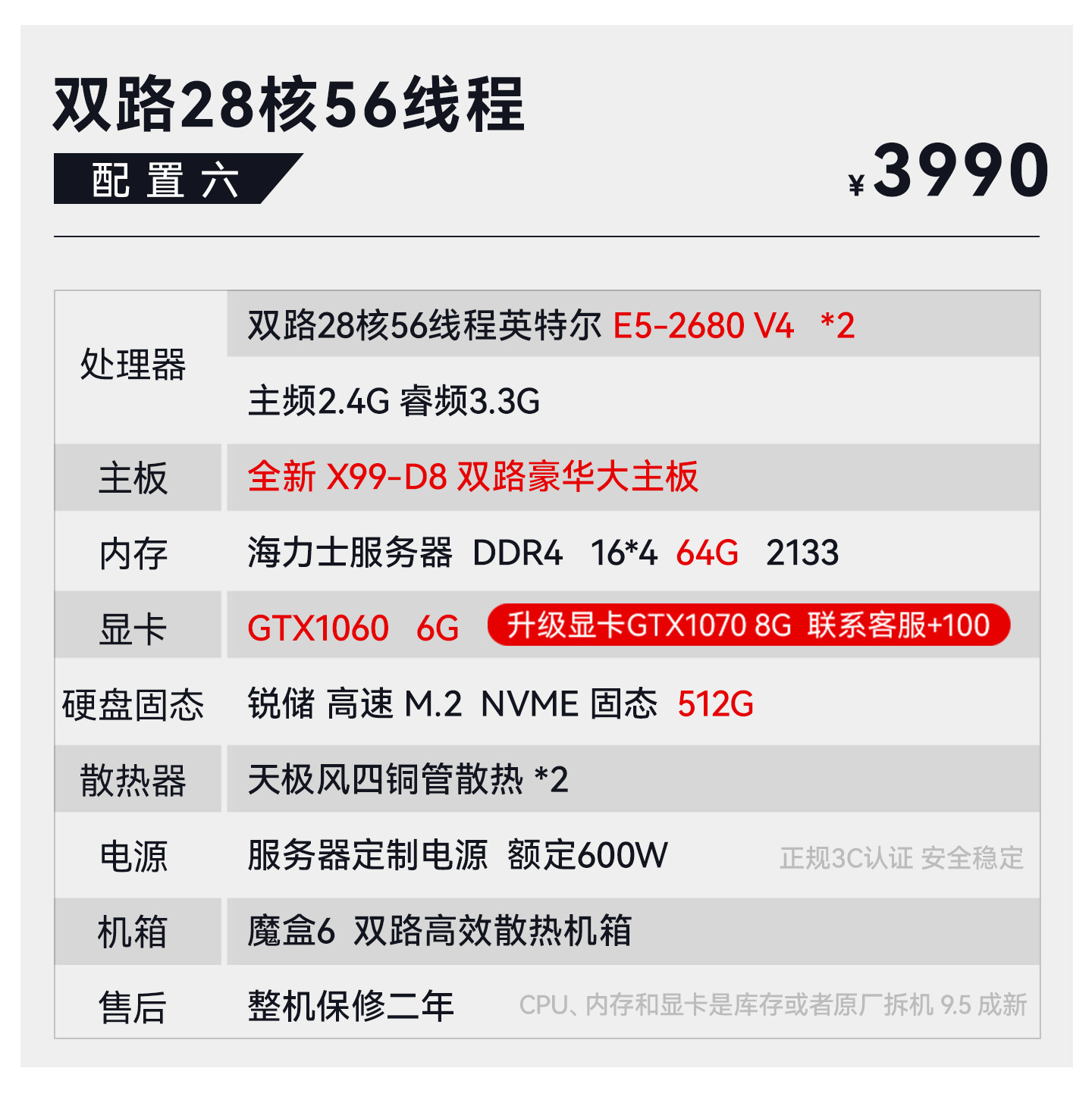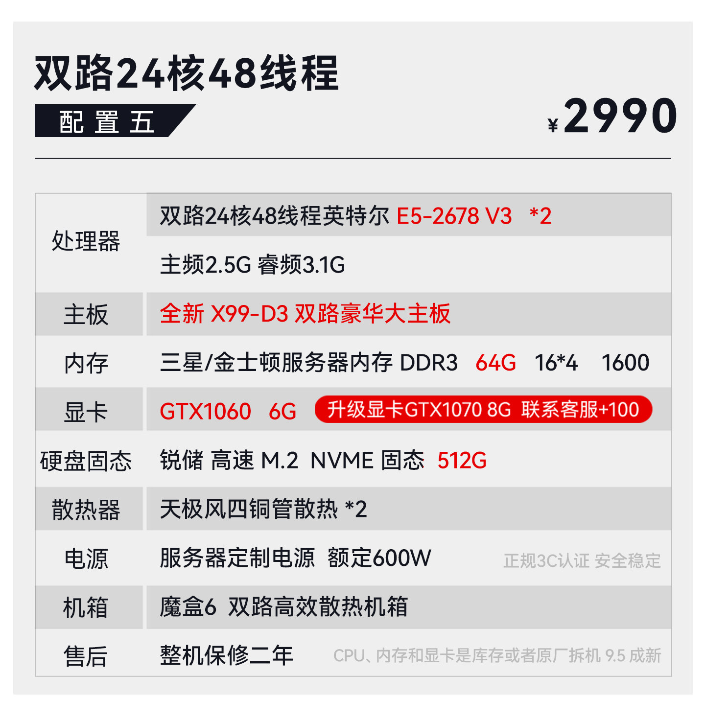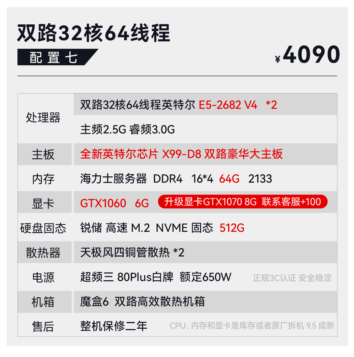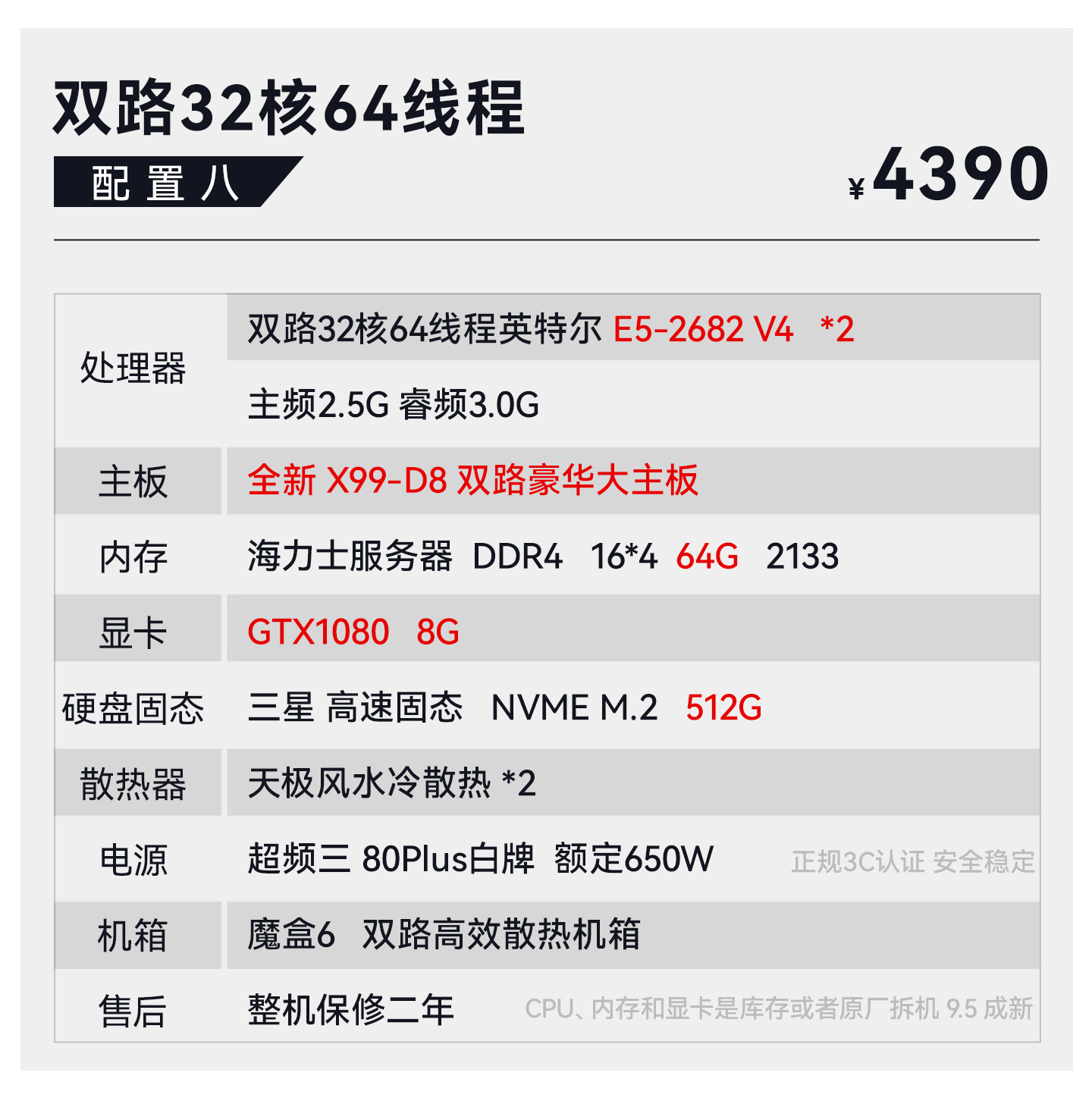 Package Type Package 1 18-Core 2686V4+64G+750 4G+512G,Package 2 18-Core 2696V3+64G+10605G+512G,Set of Three 20-Core 2680V2*2+64G+10605G+512G,Package Four 22 Core 2696V4+64G+10606G+512G,Set of Five 24-Core 2678V3*2+64G+10606G+512G,Set of Six 28-Core 2680V4*2+64G+10606G+512G,Set of Seven 32-Core 2682V4*2+64G+10606G+512G,Set of Eight 2682V4*2+64G+10808G+512G,Package Nine 32 Core 2697Av4*2+64G+1080+512G,Package Ten 36 Core 2696V3*2+64G+1080+512G,Set 11 44 Core 96V4*2+64G+1080Ti+512,Set of Twelve 32-Core 7532+64G+10808G+512G,Set of Thirteen 48-Core 7k62+64g+3060 12G+512G