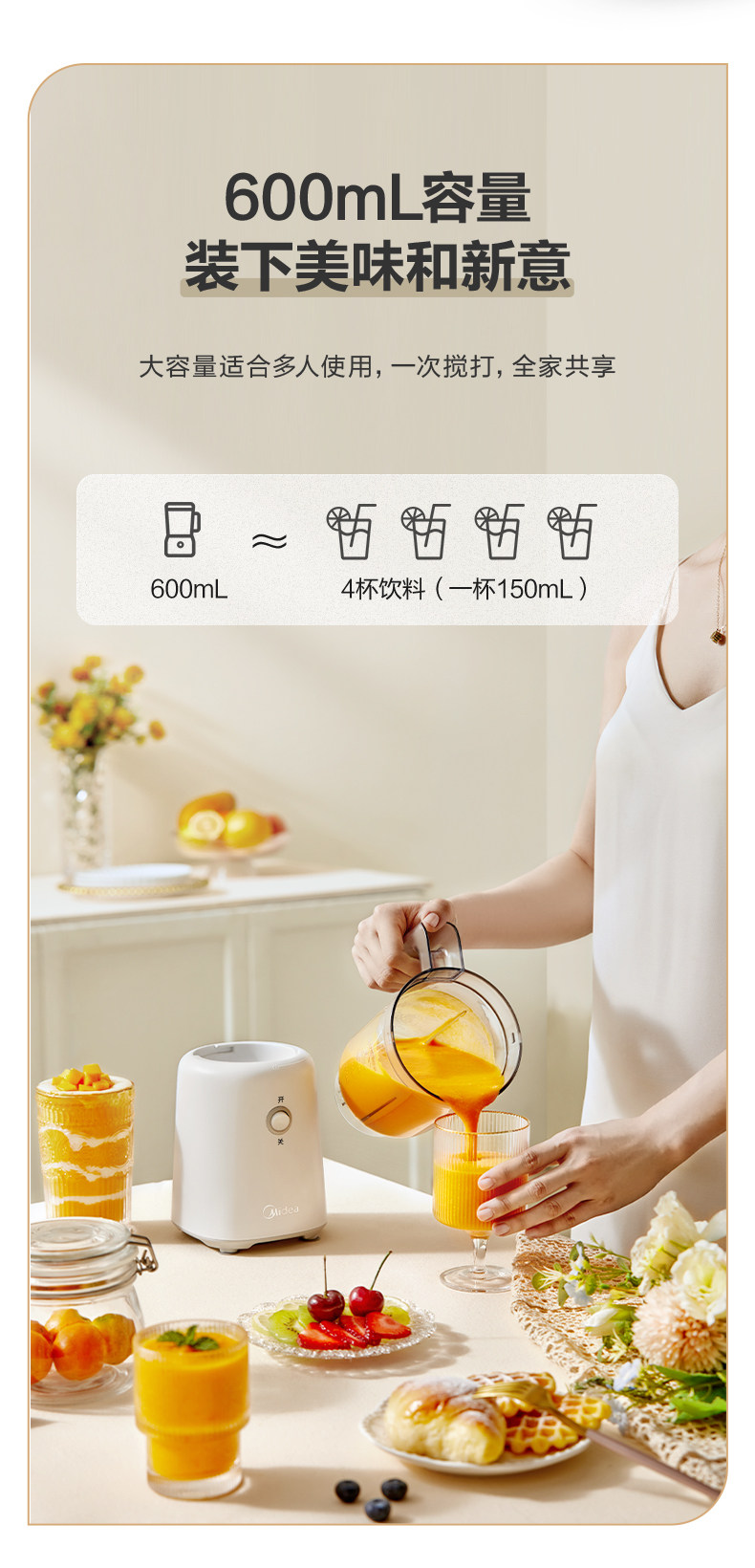 Midea Juicer, Multifunctional Portable Electric Small Milkshake Cup, Fruit Blender, Juicer