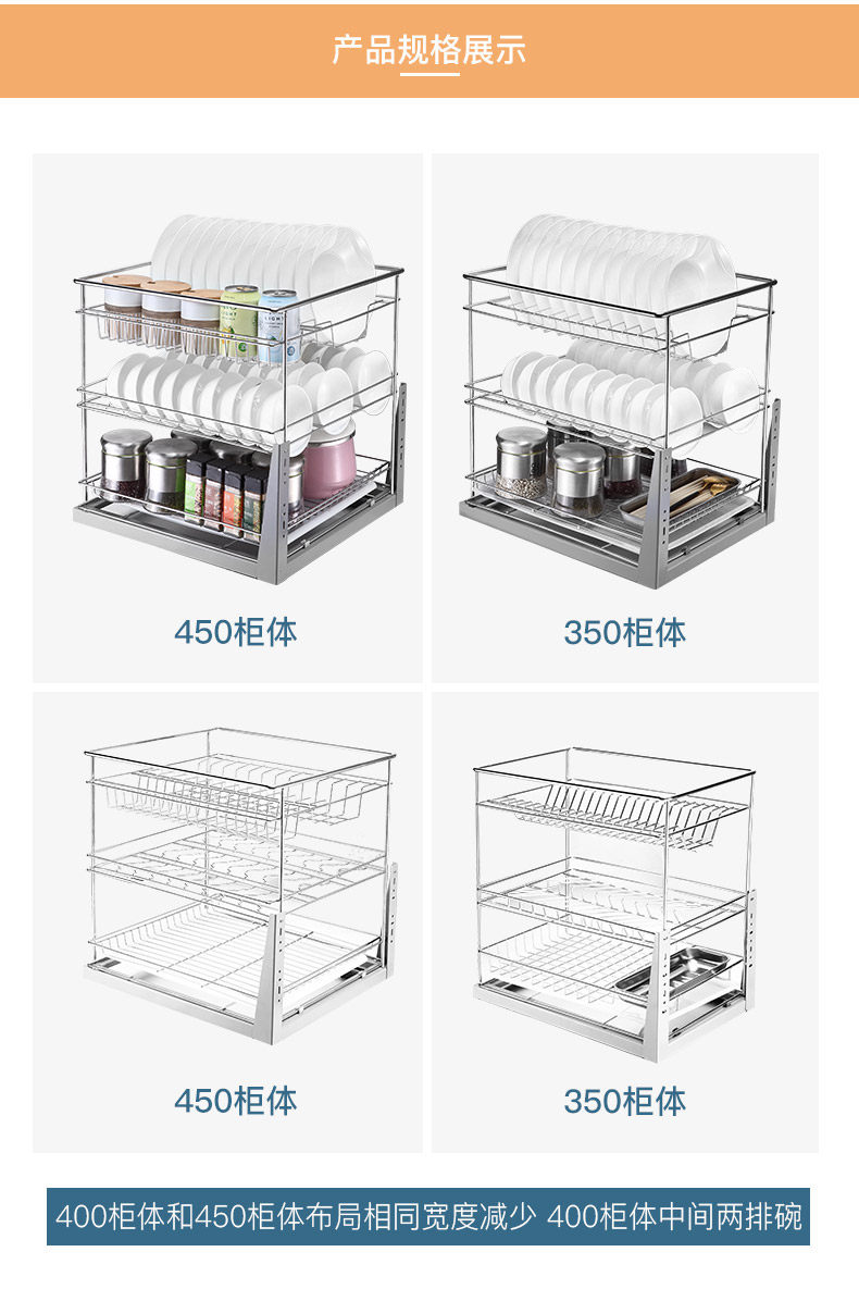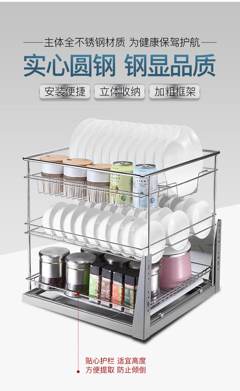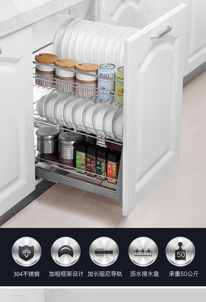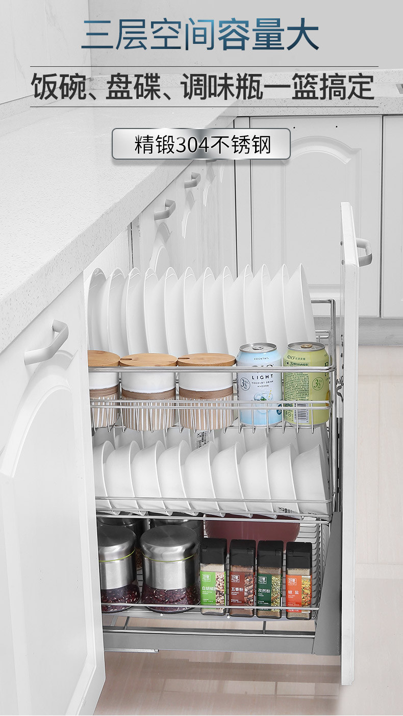 Diminila Kitchen Cabinet 304 Stainless Steel Three-Layer Buffer Drawer-Type Kitchen Cabinet Dish Basket Seasoning Basket