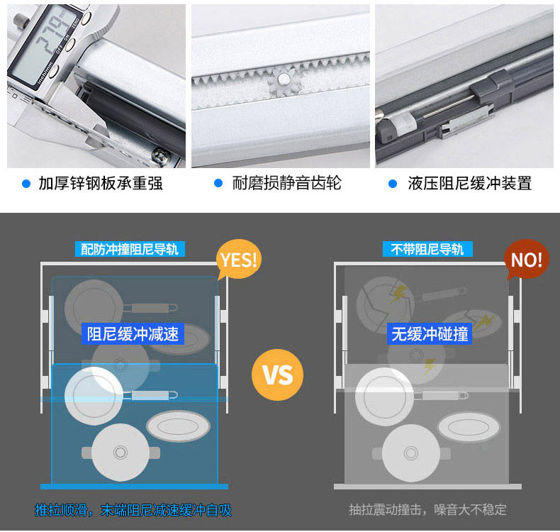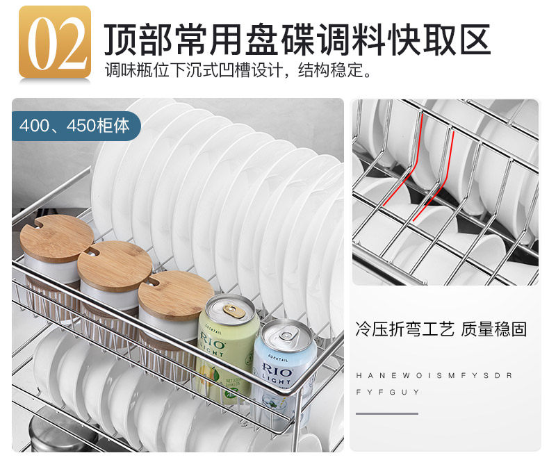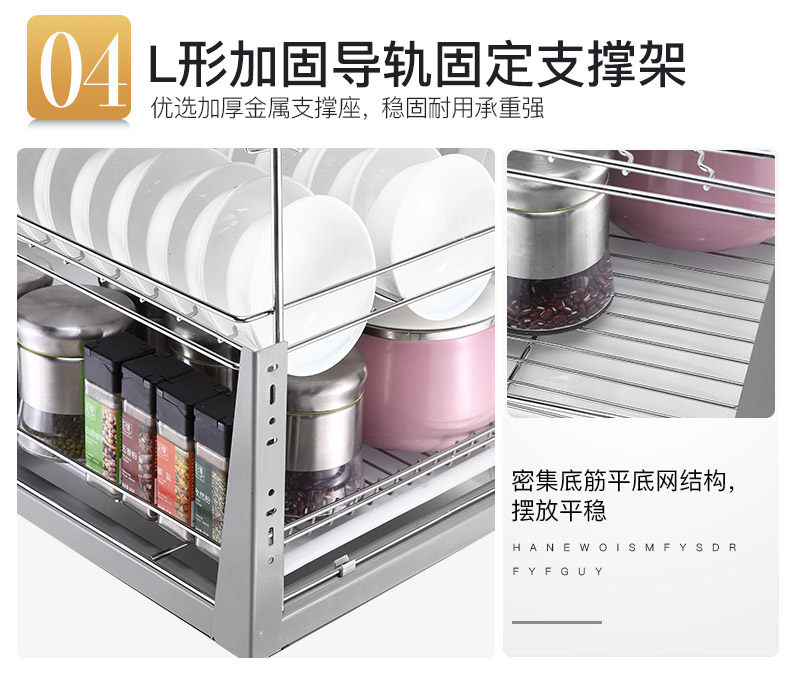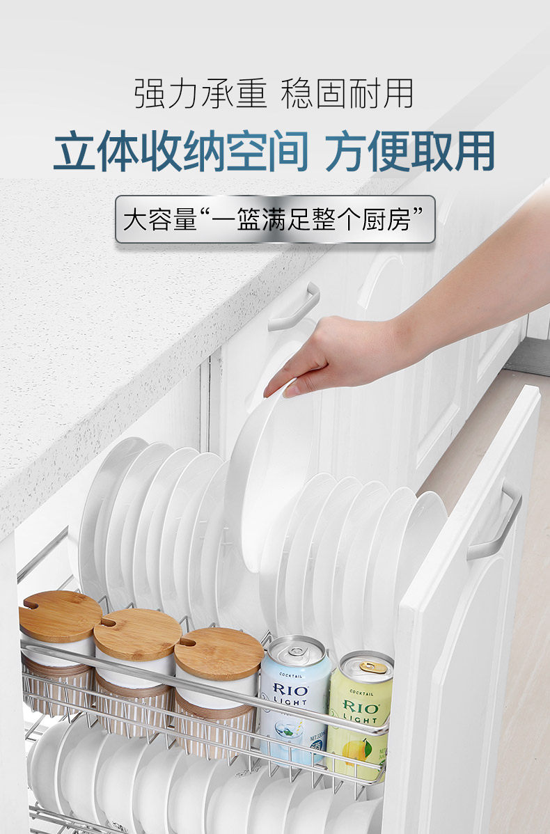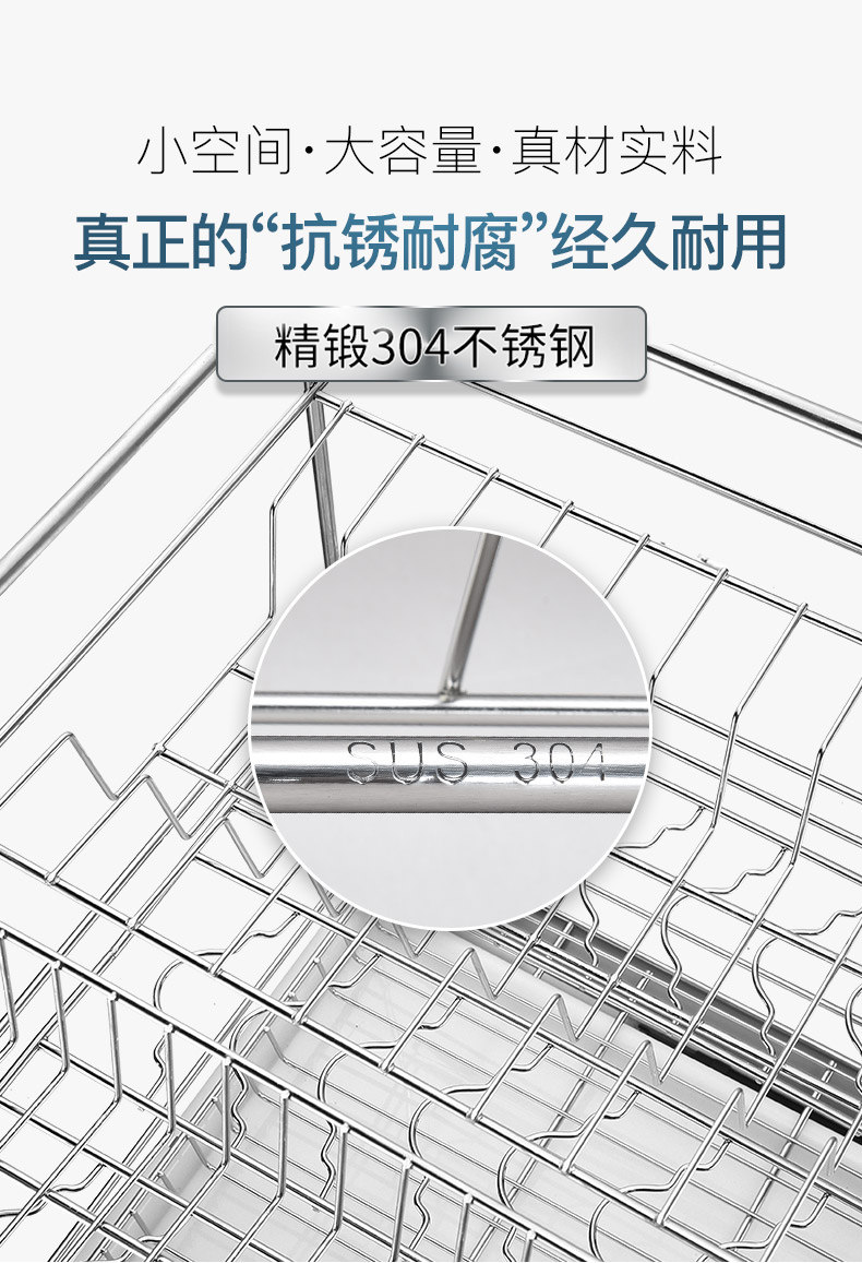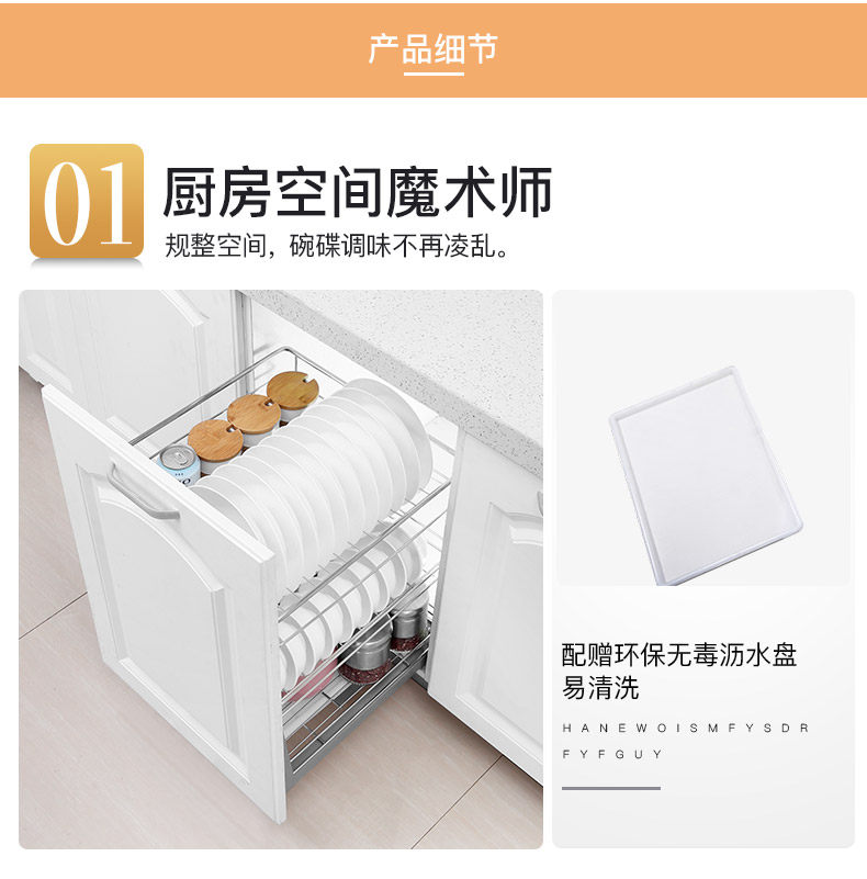Diminila Kitchen Cabinet 304 Stainless Steel Three-Layer Buffer Drawer-Type Kitchen Cabinet Dish Basket Seasoning Basket