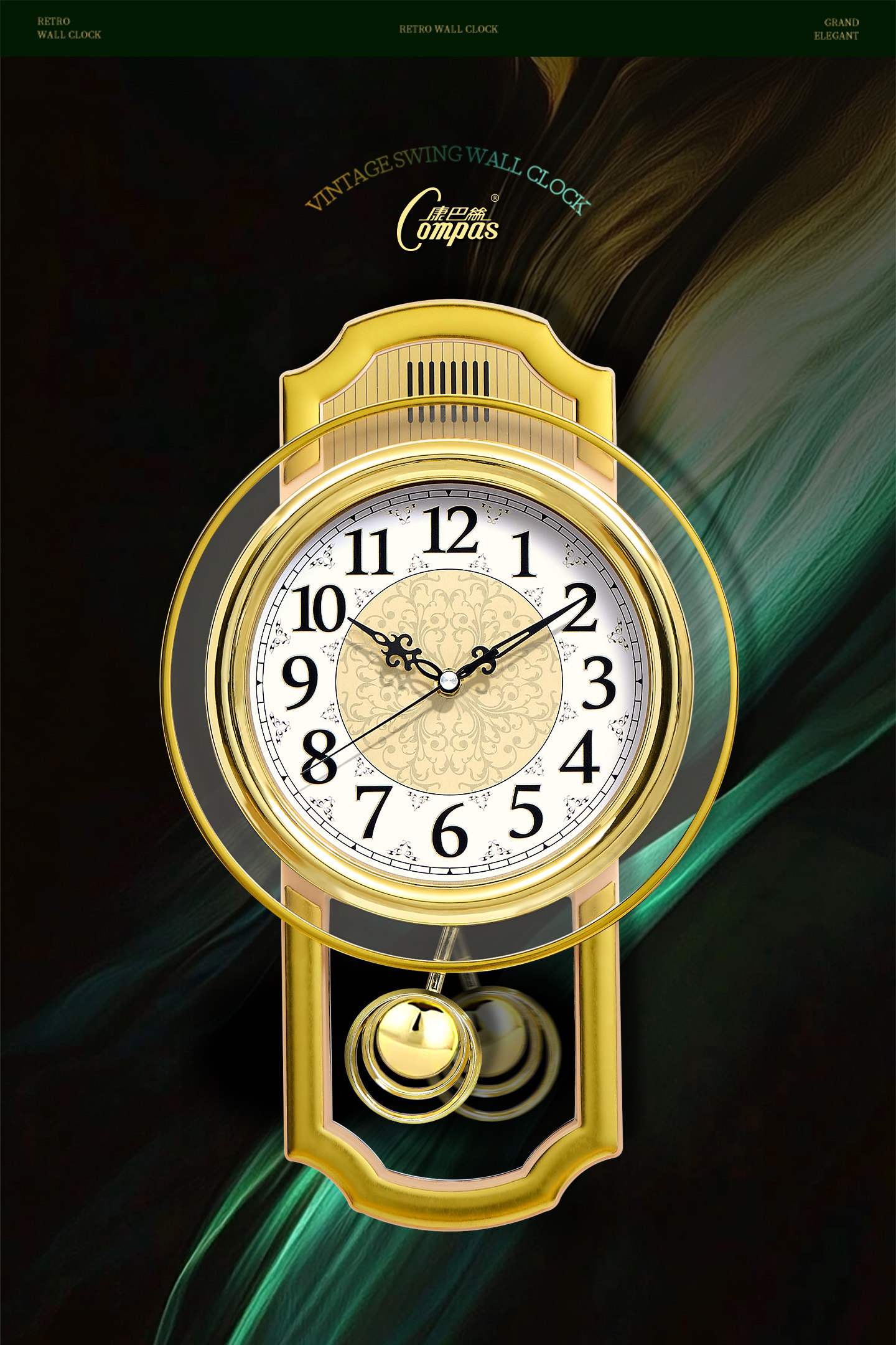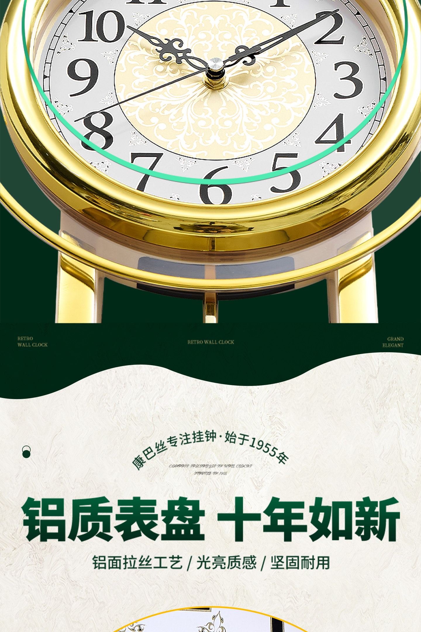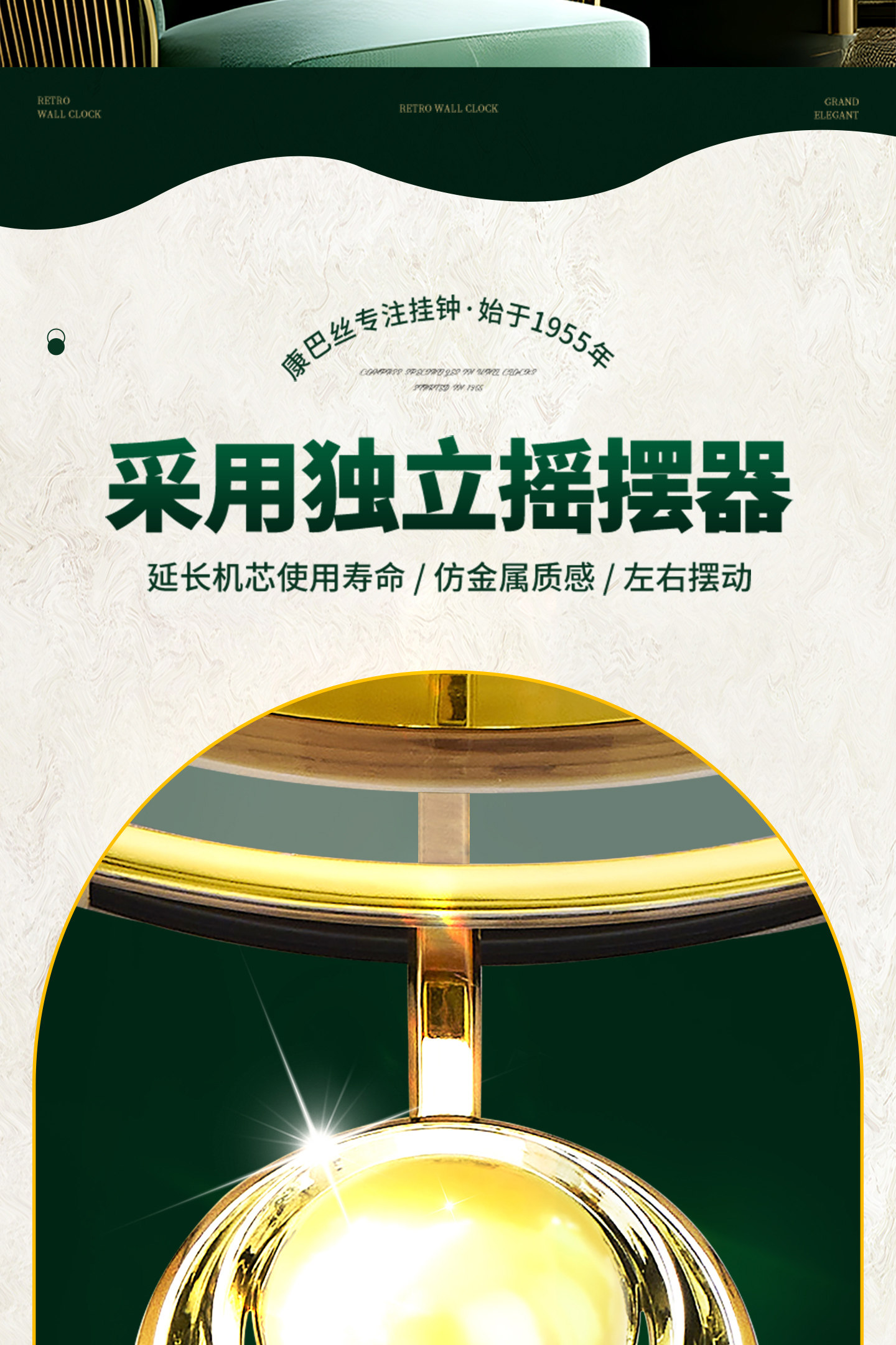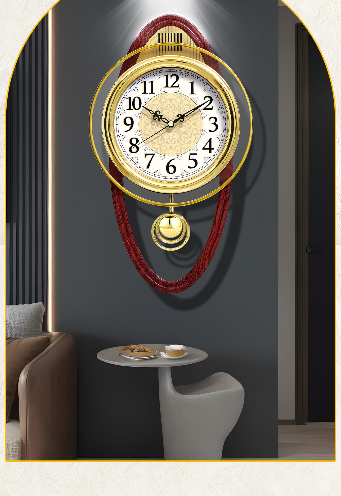 Kangbas European-Style Swing Wall Clock, Fashionable Wall-Mounted Quartz Clock for Living Room, Light Luxury Retro Silent Modern Clock for Bedroom