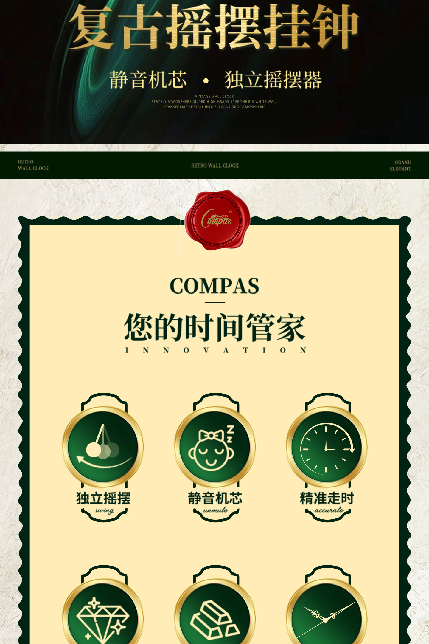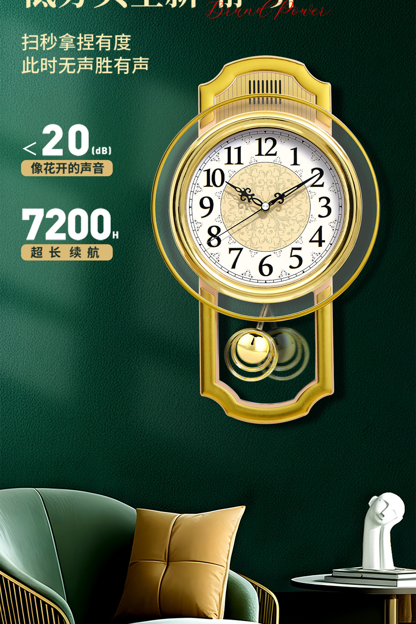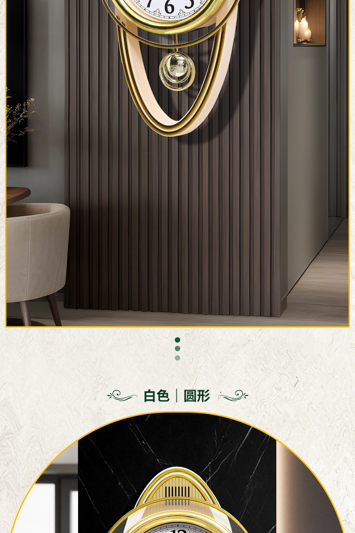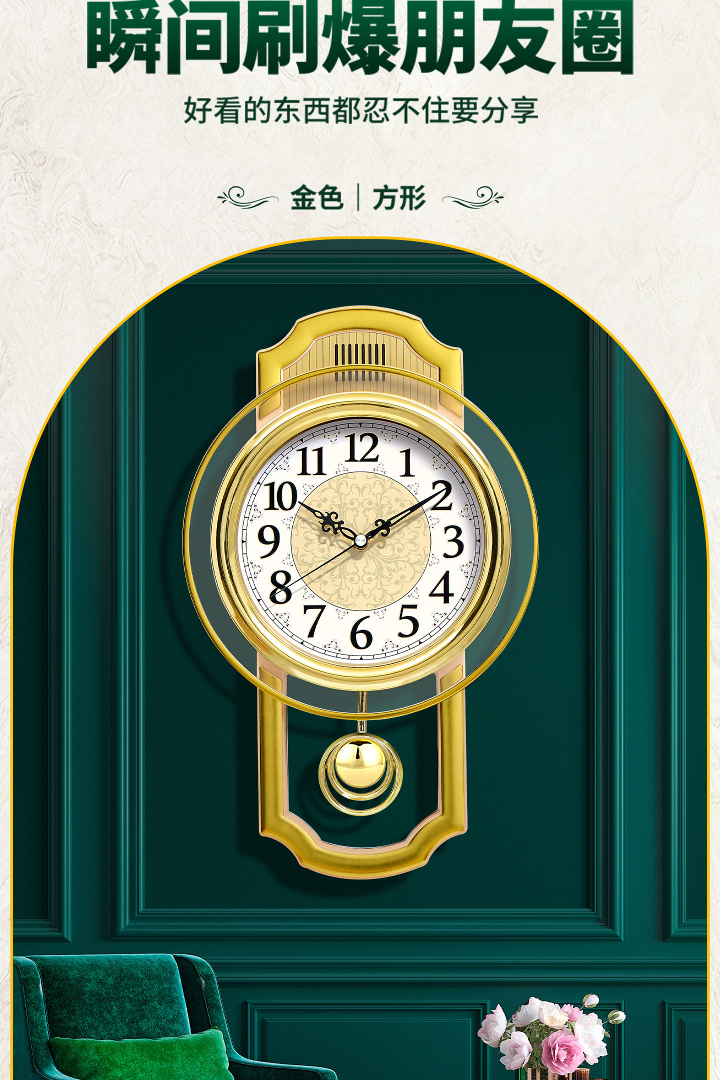 Kangbas European-Style Swing Wall Clock, Fashionable Wall-Mounted Quartz Clock for Living Room, Light Luxury Retro Silent Modern Clock for Bedroom