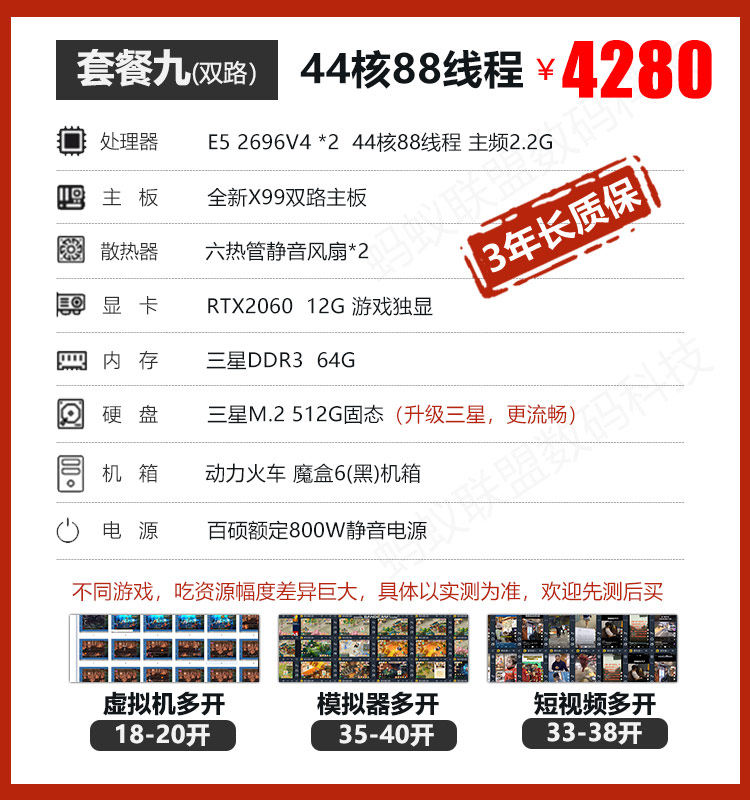 Lao Fang Zhiqiang E5 Computer Host 2696V3 Gaming Studio Simulator Multi-Tasking V4 Dual-Channel Server Setup
