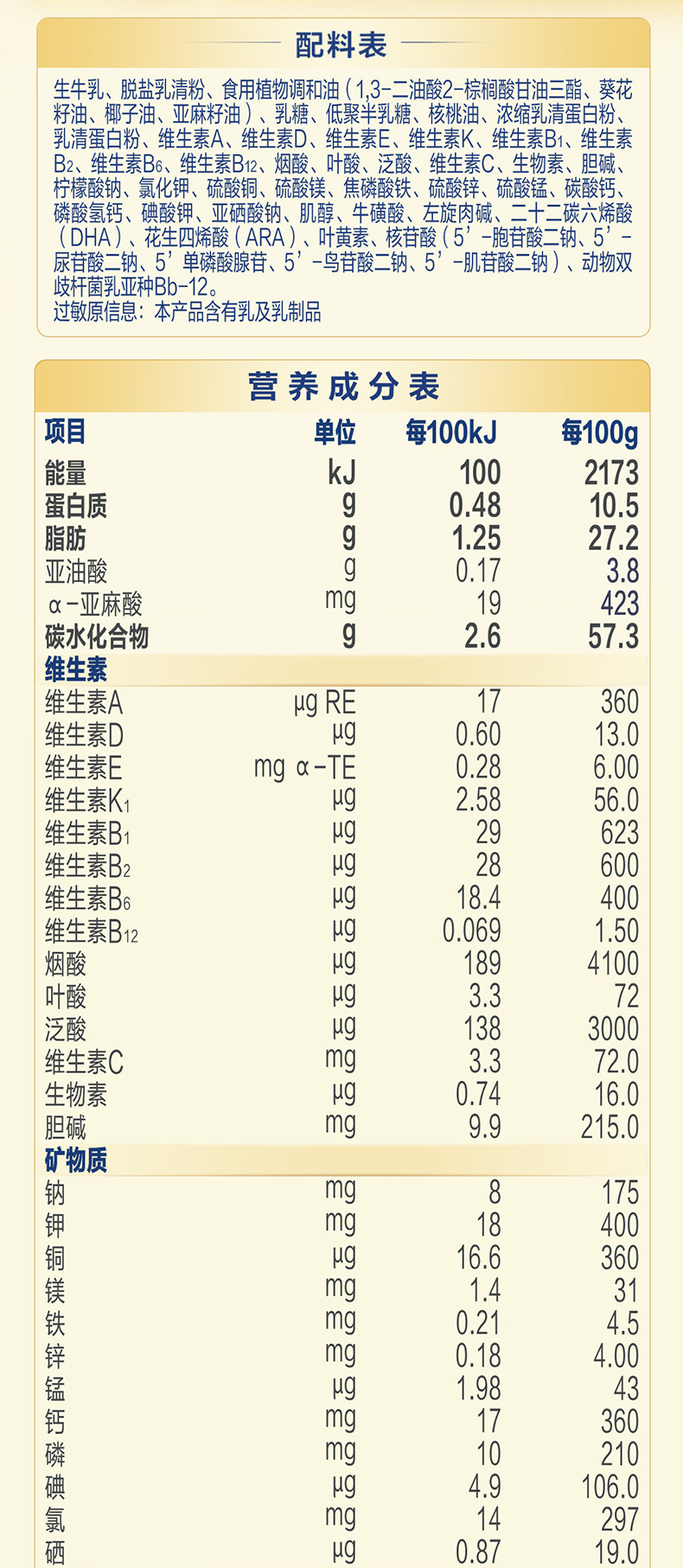 | Allergen Alert | Contains Lactose |