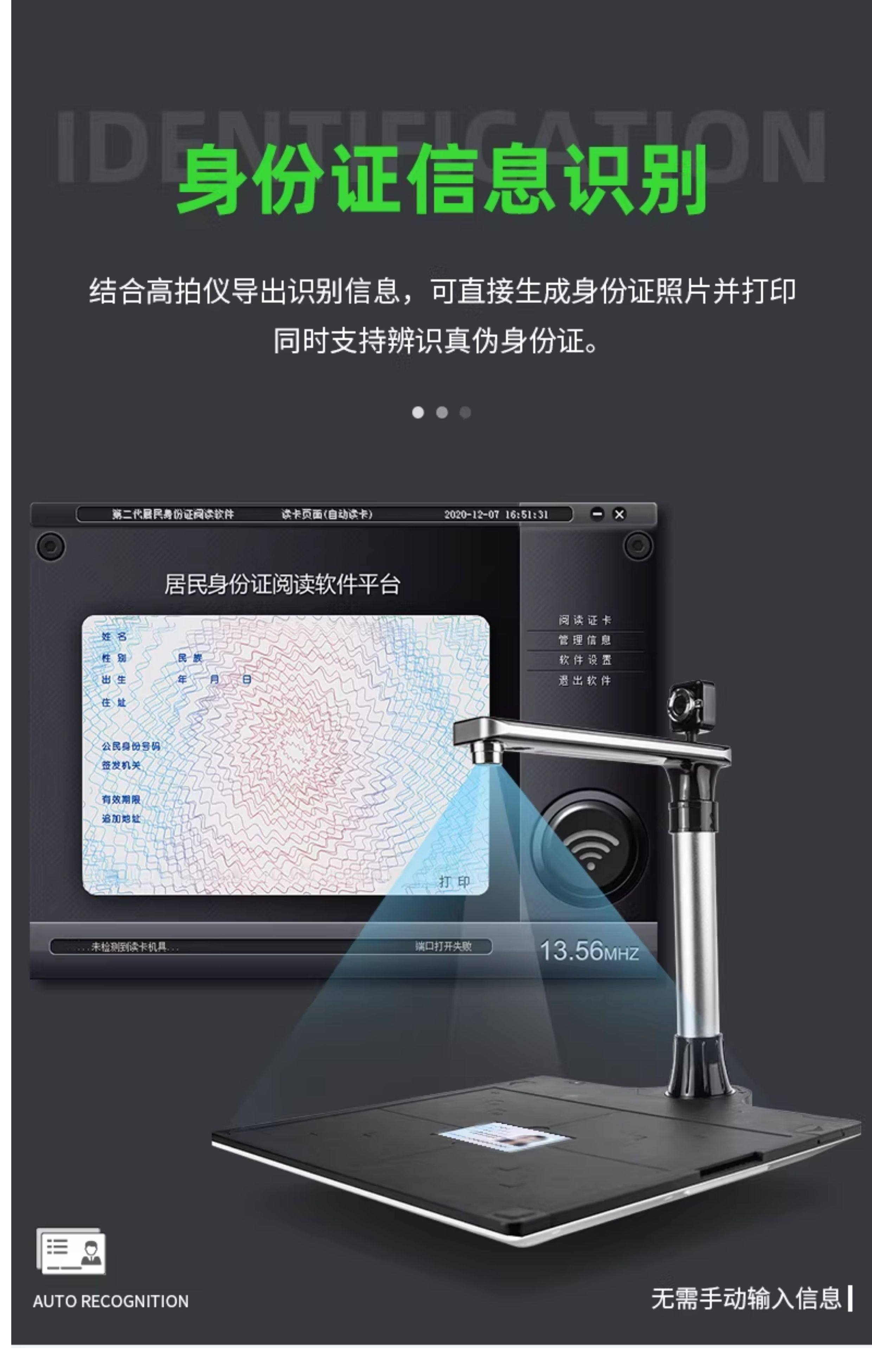 Xunlai High-Speed Scanner with 10 Million Pixels, High-Definition A3/A4 Office Document and Portrait Dual-Camera, Fingerprint Scanner with Id Card Reading and Recognition