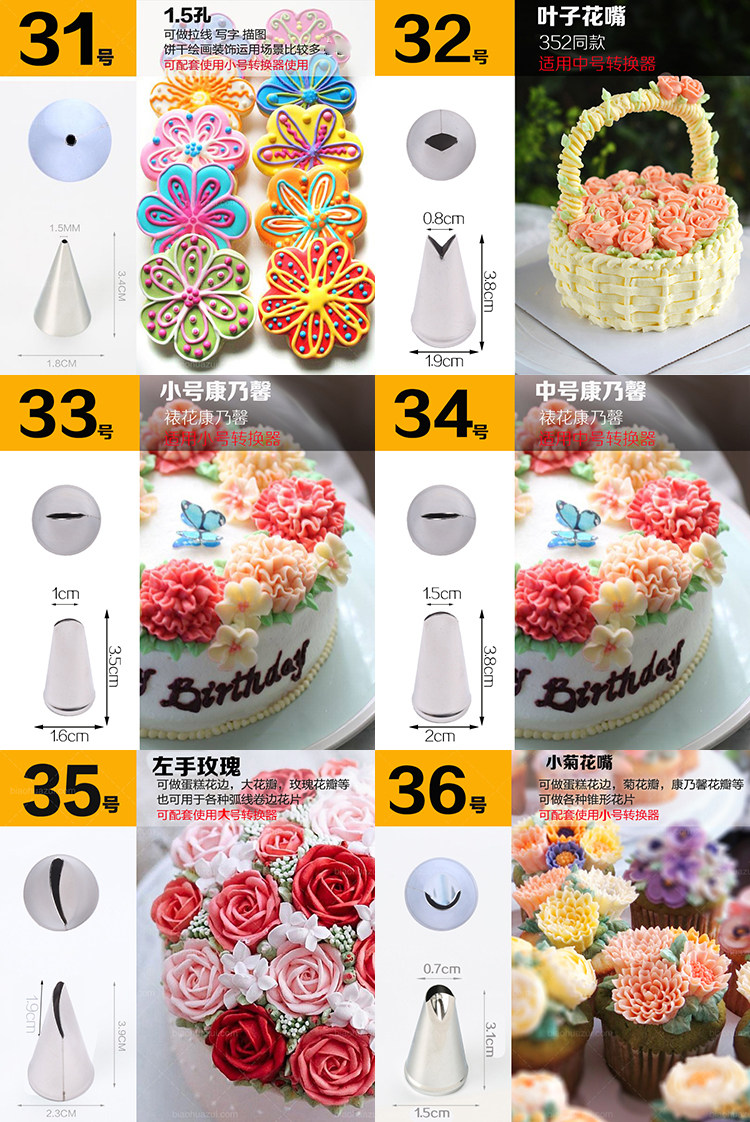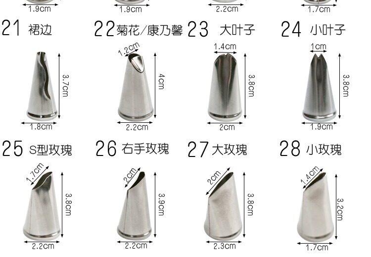 Stainless Steel Piping Tips, Cake and Cookie Piping Tips, Melt-In-Your-Mouth Piping Tips, Rose, Leaf, Grass, Flower Basket Piping Tips