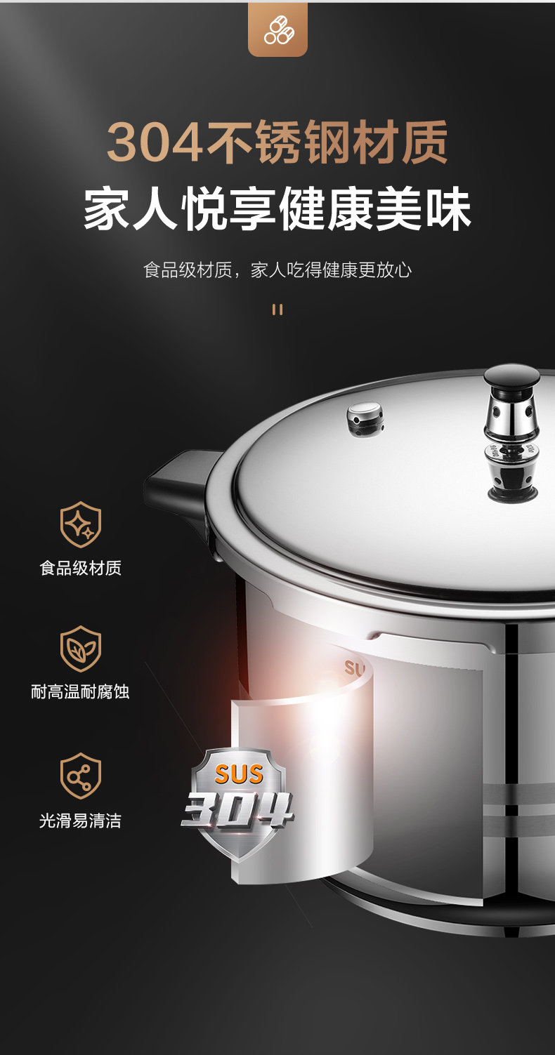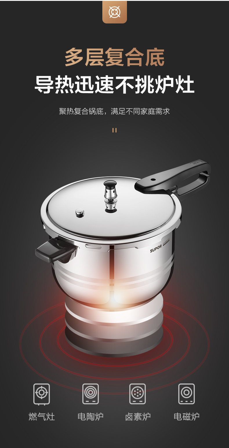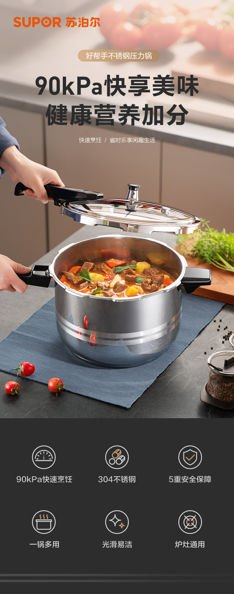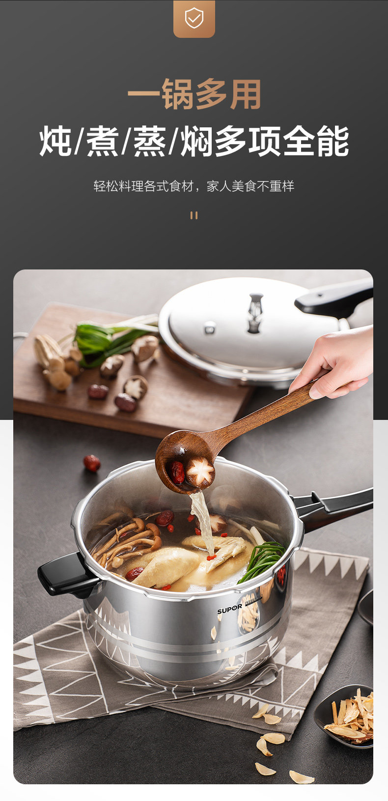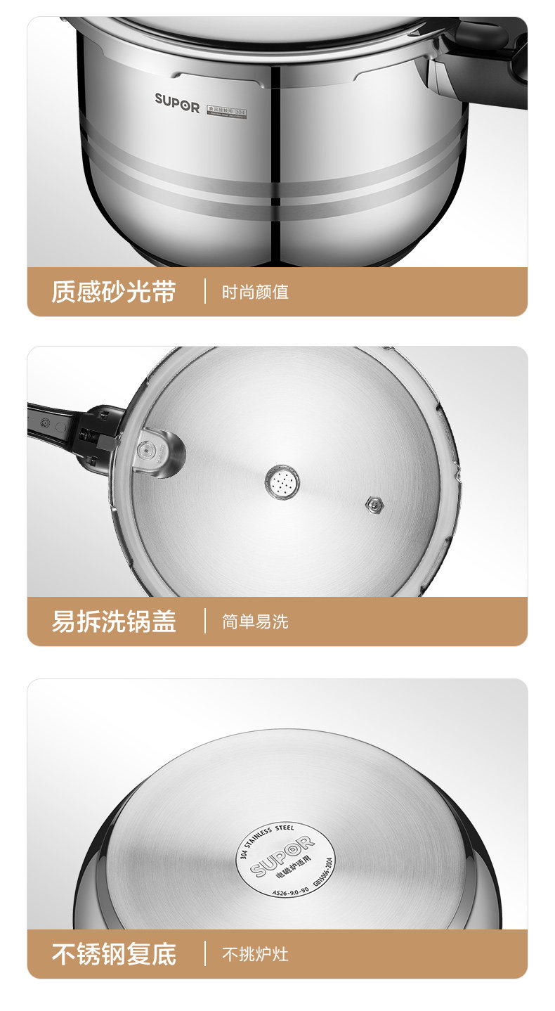 Supor 304 Stainless Steel Pressure Cooker for Home Use, Compatible with Gas and Induction Cookers, Thickened Explosion-Proof Small Pressure Cooker for Commercial Use