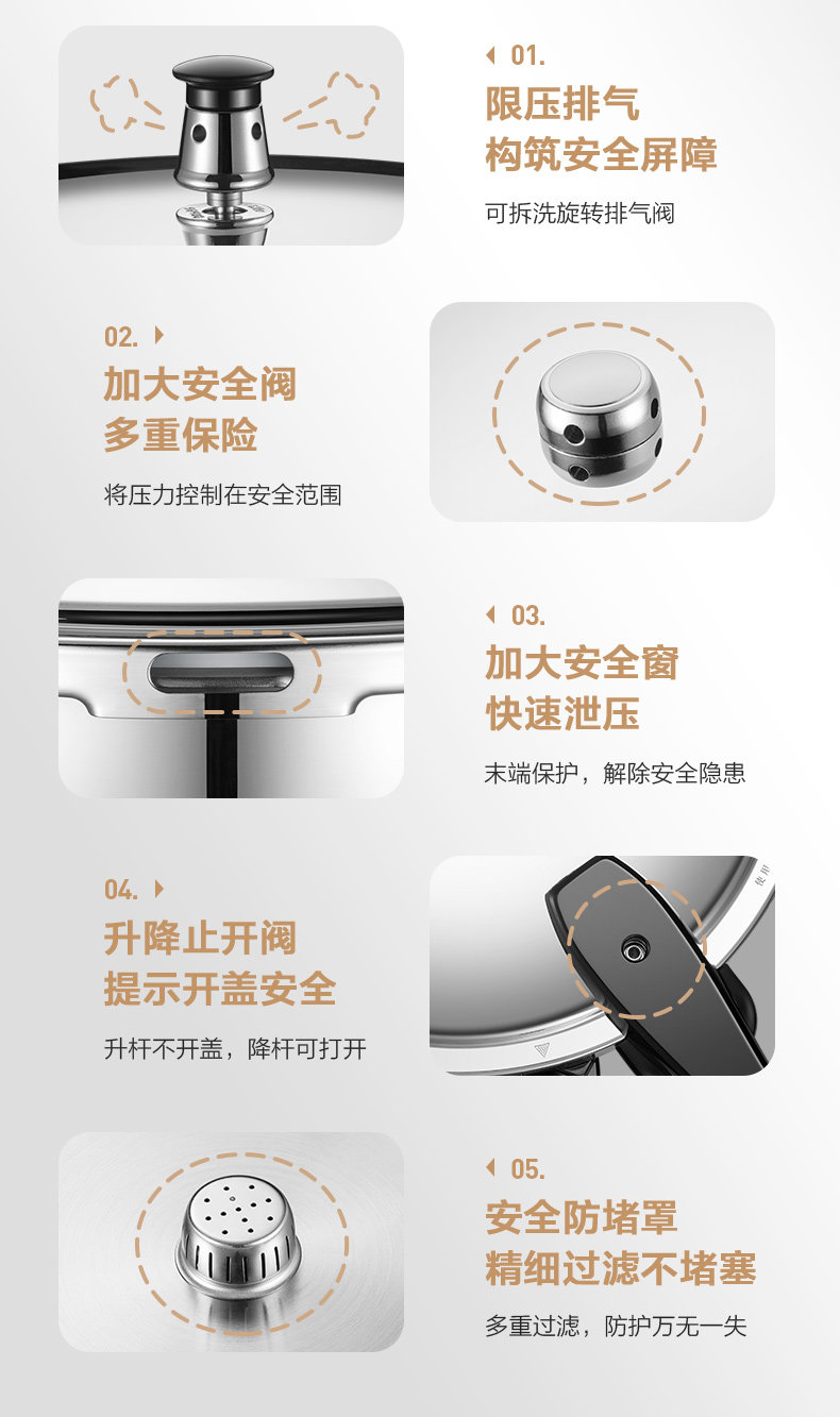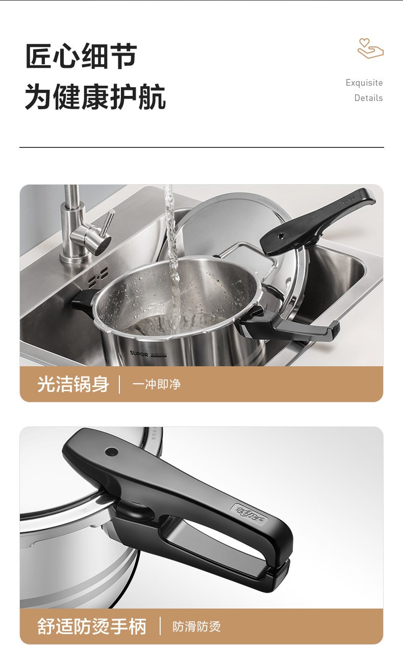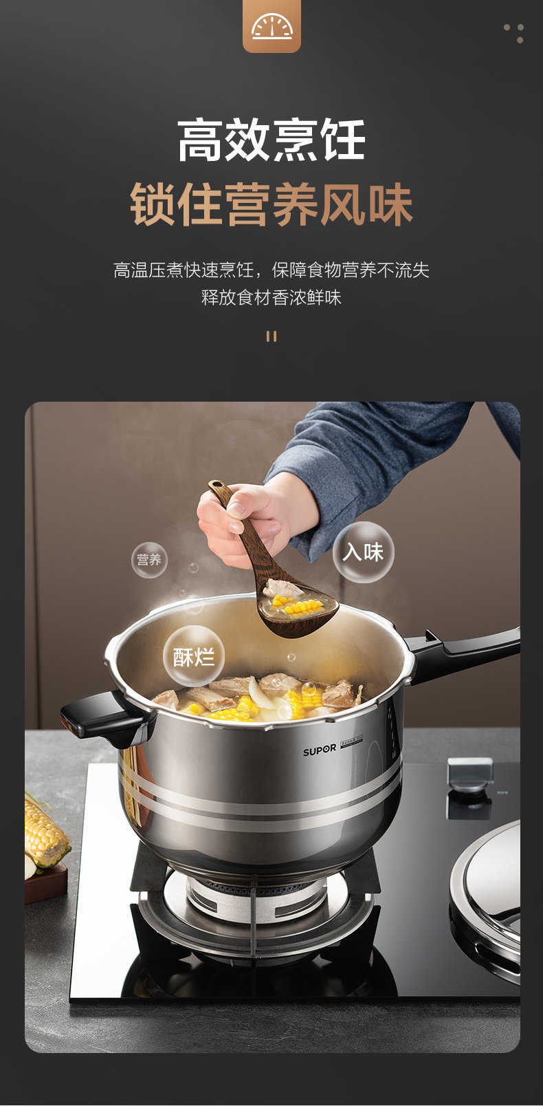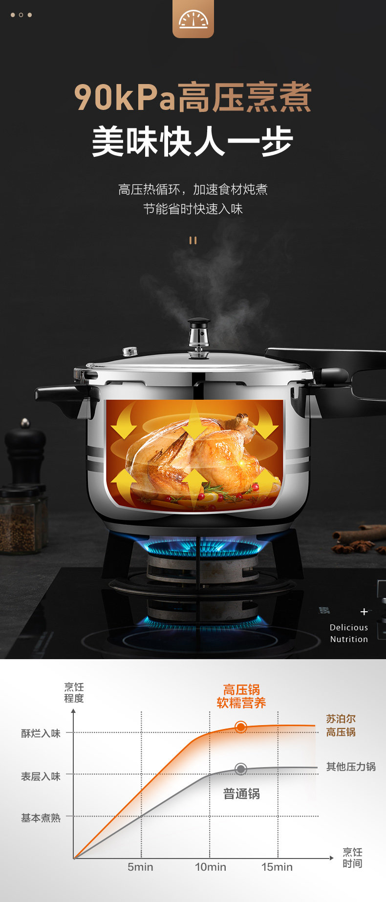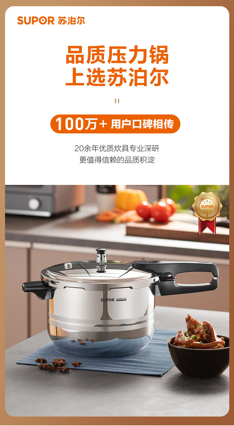 Supor 304 Stainless Steel Pressure Cooker for Home Use, Compatible with Gas and Induction Cookers, Thickened Explosion-Proof Small Pressure Cooker for Commercial Use