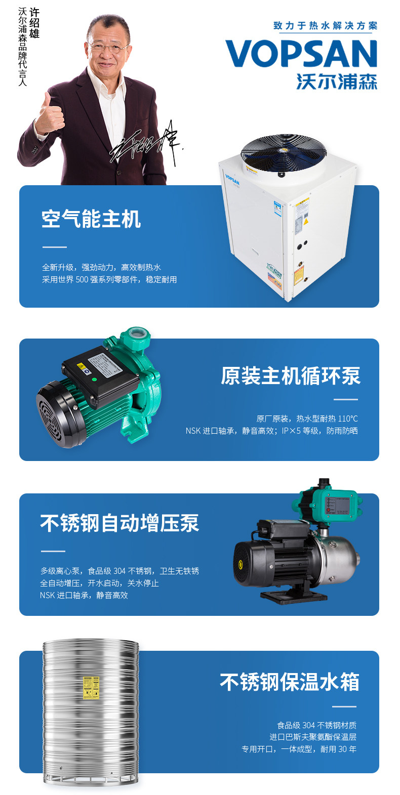 Walposen Energy-Saving Air Source Water Heater Commercial Large-Capacity Construction Site Hotel Dormitory