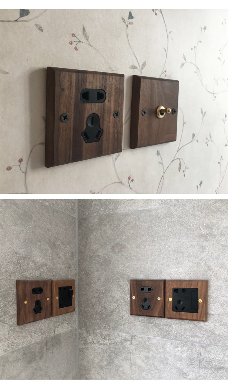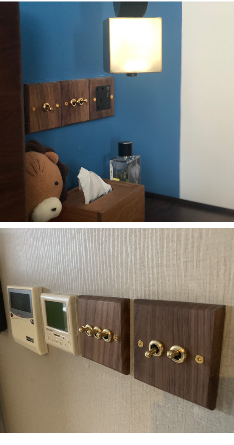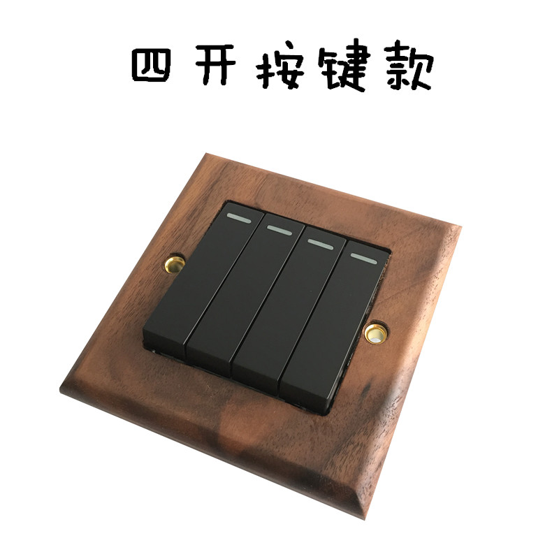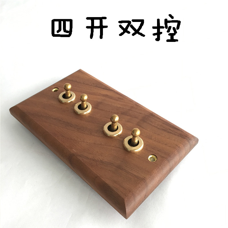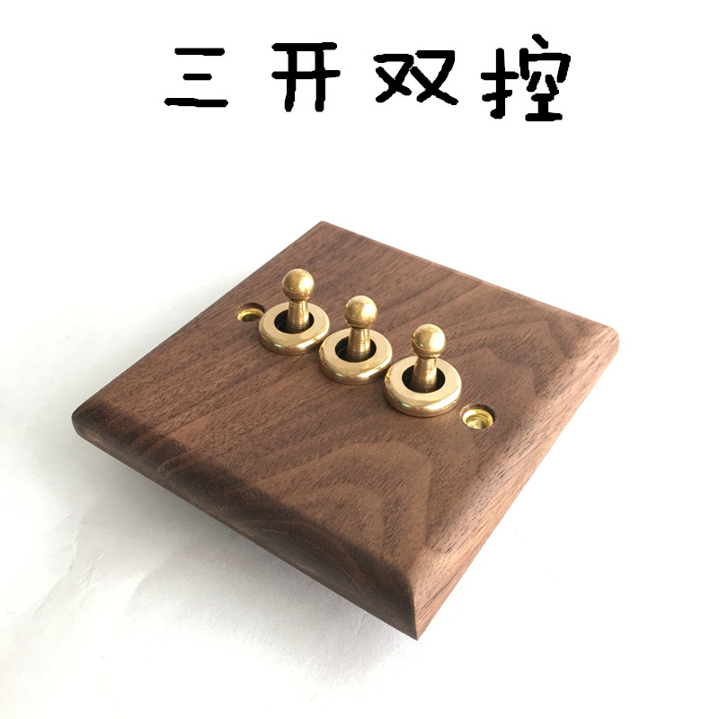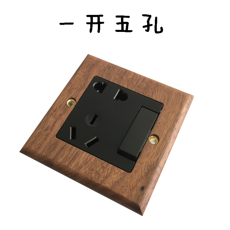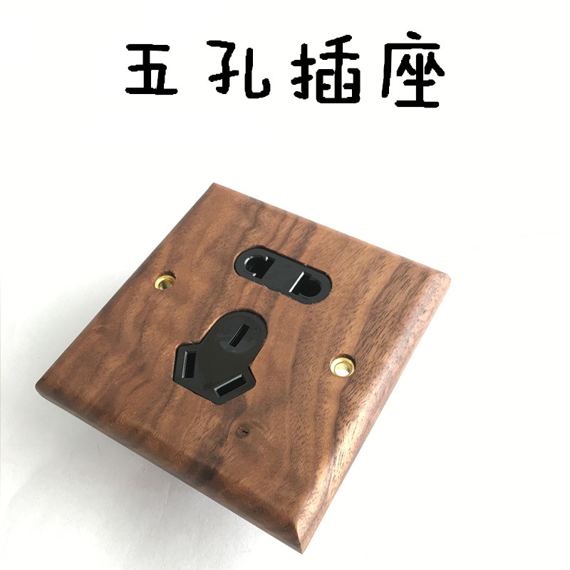 Pialt Putian American-Style Black Walnut Panel Brass Lever Antique Solid Wood Retro Switch Socket 86 Type for Guesthouses