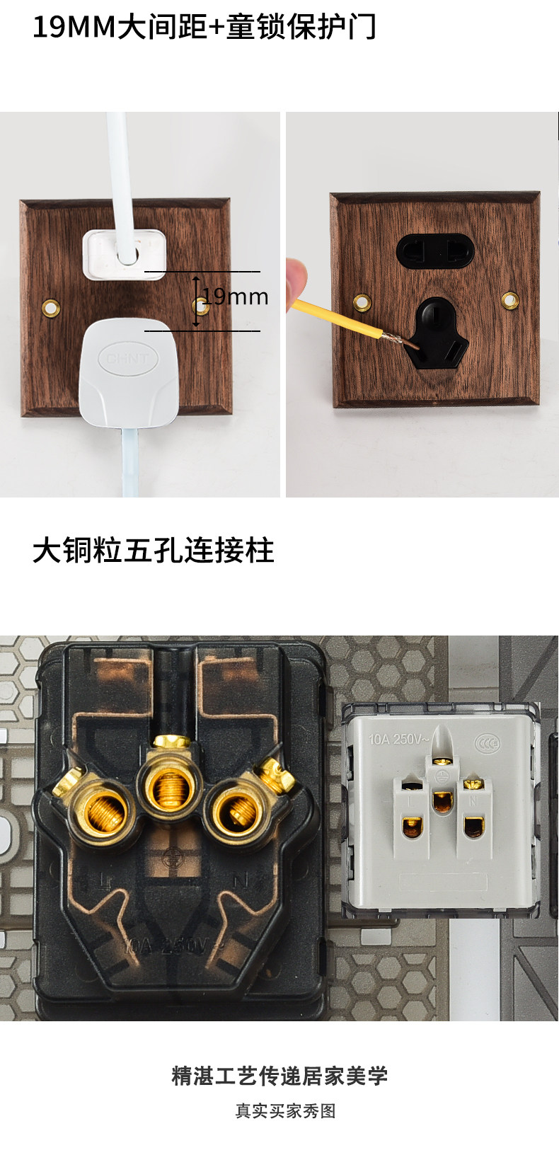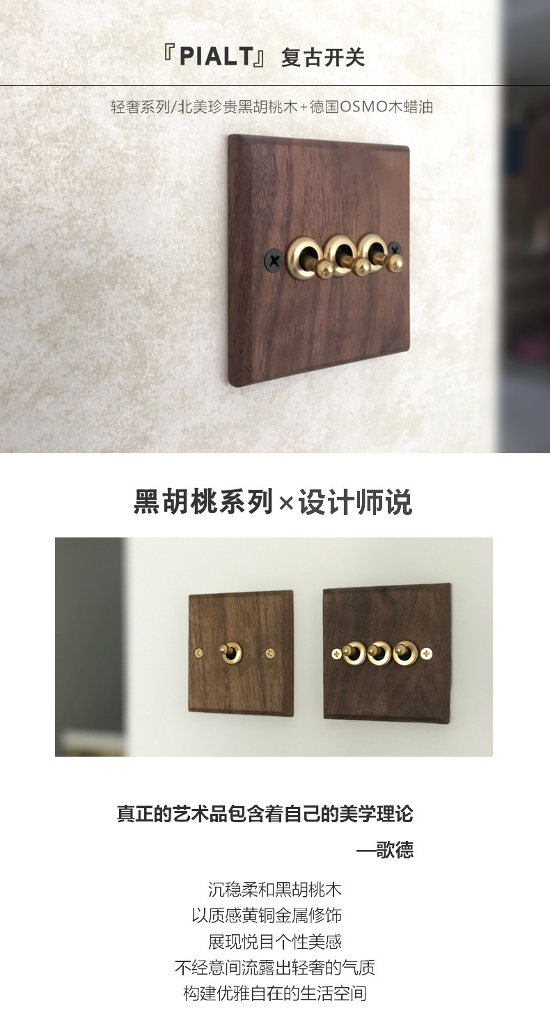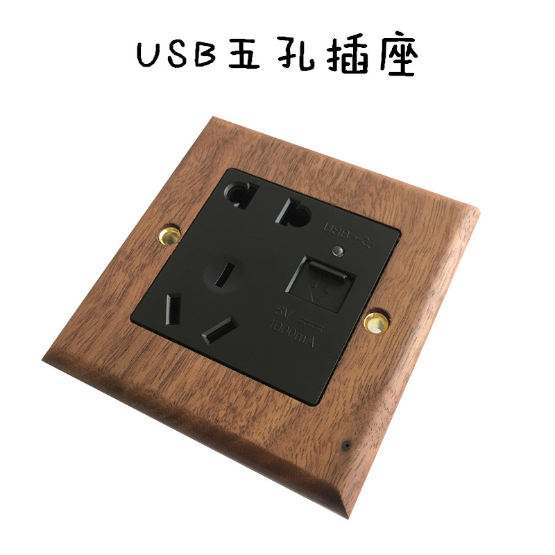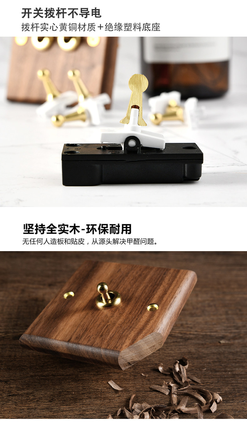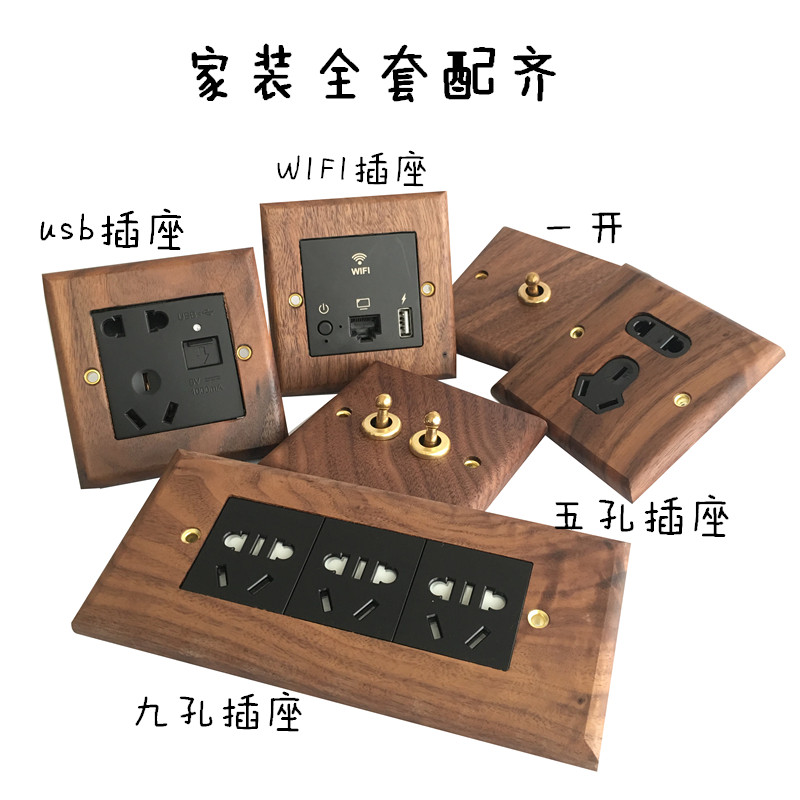 Pialt Putian American-Style Black Walnut Panel Brass Lever Antique Solid Wood Retro Switch Socket 86 Type for Guesthouses