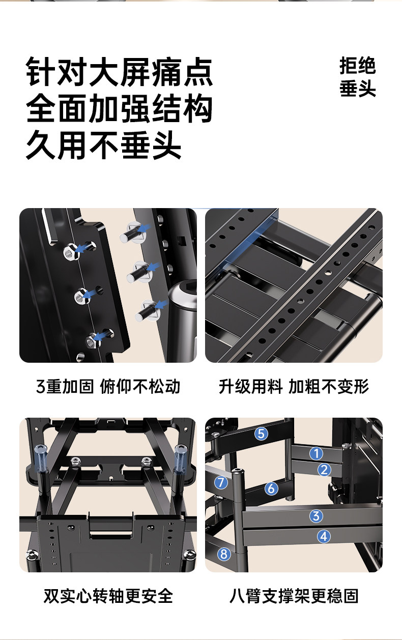 | Color Classification | ăUniversalăEight-Arm Precision Solid Shaft 130kg Heavy-Duty Load Capacity / Smooth Sliding / 3.8cm Ultra-Wide Wall Clearance,ăUniversalăEight-Arm Precision Solid Shaft 135kg Heavy-Duty Load Capacity / Smooth Sliding / 3.8cm Ultra-Wide Wall Clearance,ăUniversalăEight-Arm Precision Solid Shaft 145kg Heavy-Duty Load Capacity / Smooth Sliding / 4.0cm Ultra-Wide Wall Clearance,ăUniversalăEight-Arm Precision Solid Shaft 150kg Heavy-Duty Load Capacity / Smooth Sliding / 4.0cm Ultra-Wide Wall Clearance,ăUniversalăEight-Arm Precision Solid Shaft 180kg Heavy-Duty Load Capacity / Smooth Sliding / 4.0cm Ultra-Wide Wall Clearance,ăUniversalăEight-Arm Precision Solid Shaft 190kg Heavy-Duty Load Capacity / Smooth Sliding / 4.0cm Ultra-Wide Wall Clearance,ăNew Upgraded Distributed Eight-Arm DesignăFlagship New Product / Warranty Replacement / Stable Load-Bearing / Ultra-Thin Wall-Mounted / Contact Customer Service for Free Shipping |
