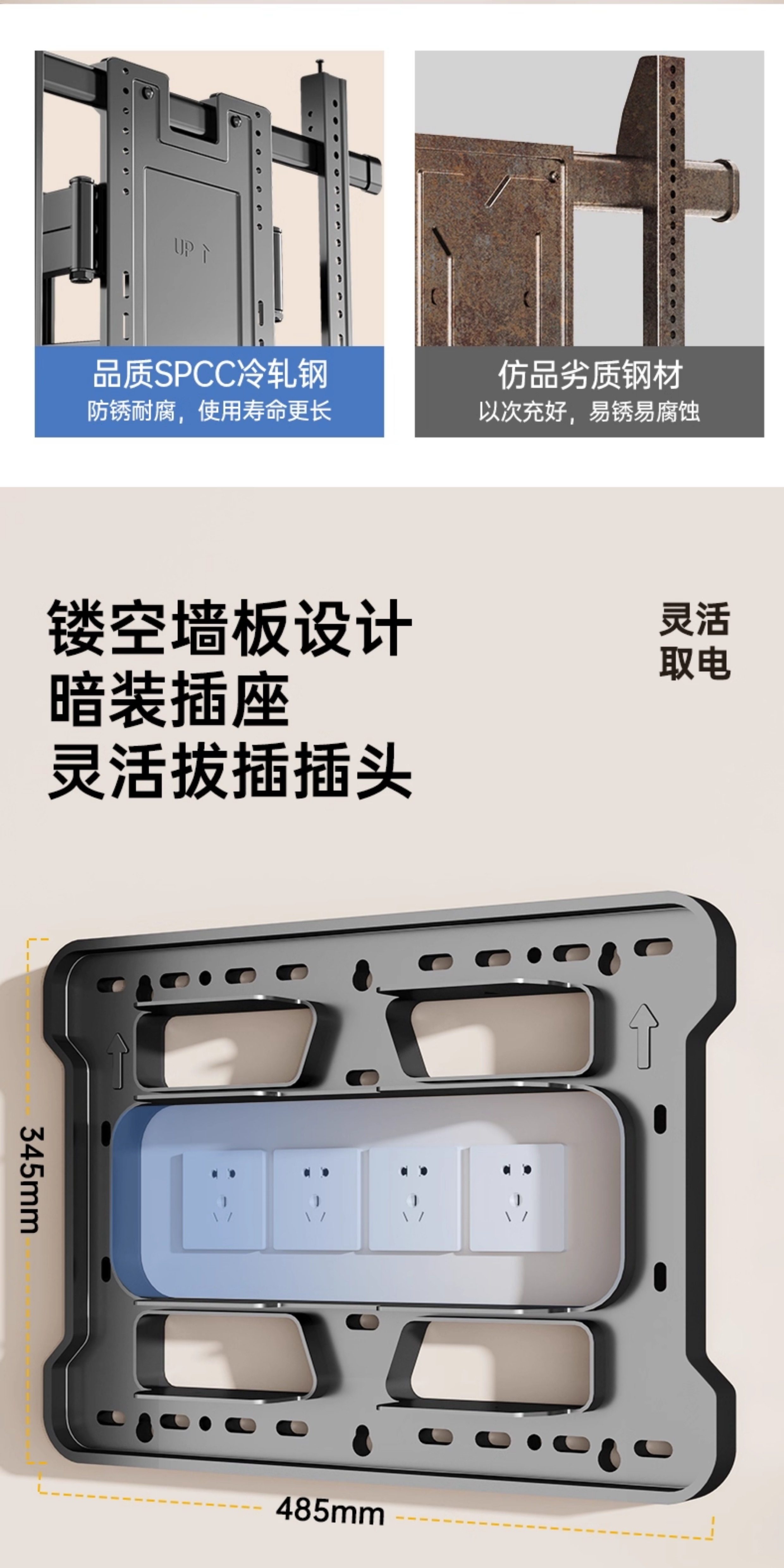 Beishi Tv Telescopic Wall Mount with Embedded Rotating Bracket Suitable for Hisense, Skyworth, Sony, Etc. 85inch