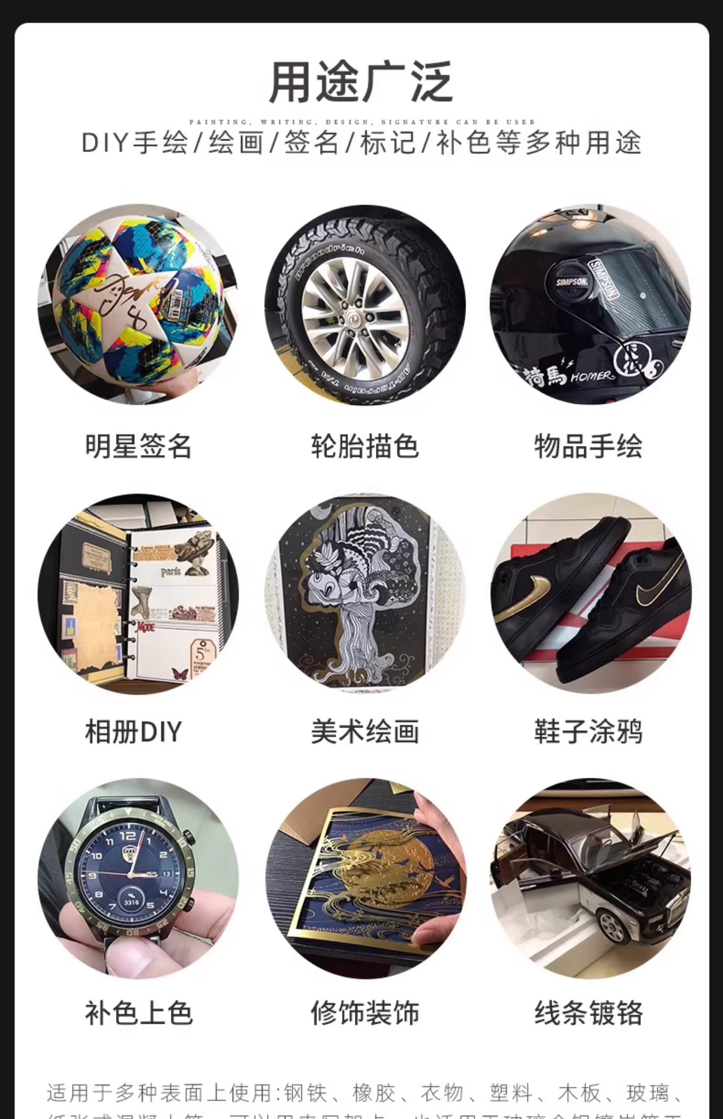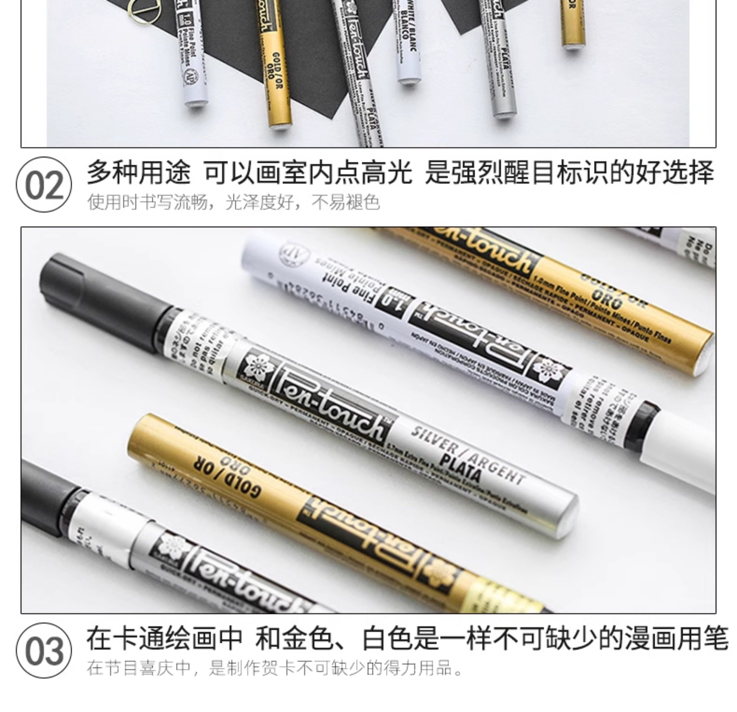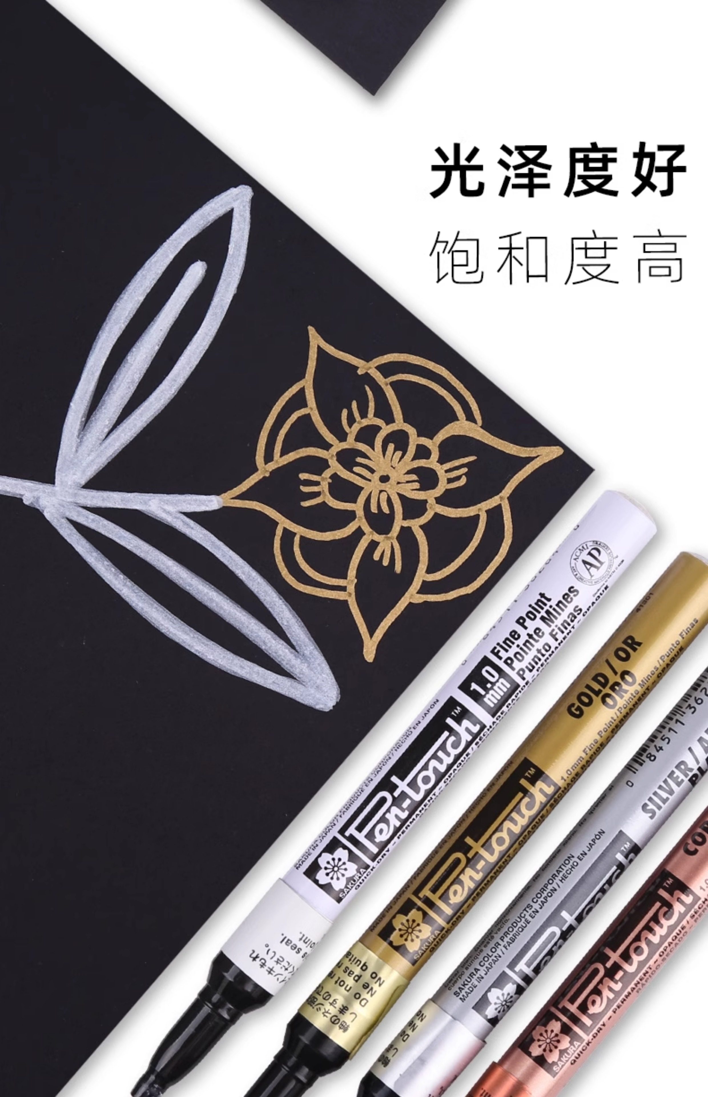 Japanese Cherry Blossom Paint Pen, Waterproof and Non-Fading, Gold Signature Pen, Celebrity-Specific Metallic Silver Touch-Up Oil-Based White Marker Pen, Black Signature Pen, Polaroid Photo Paper Graffiti Pen