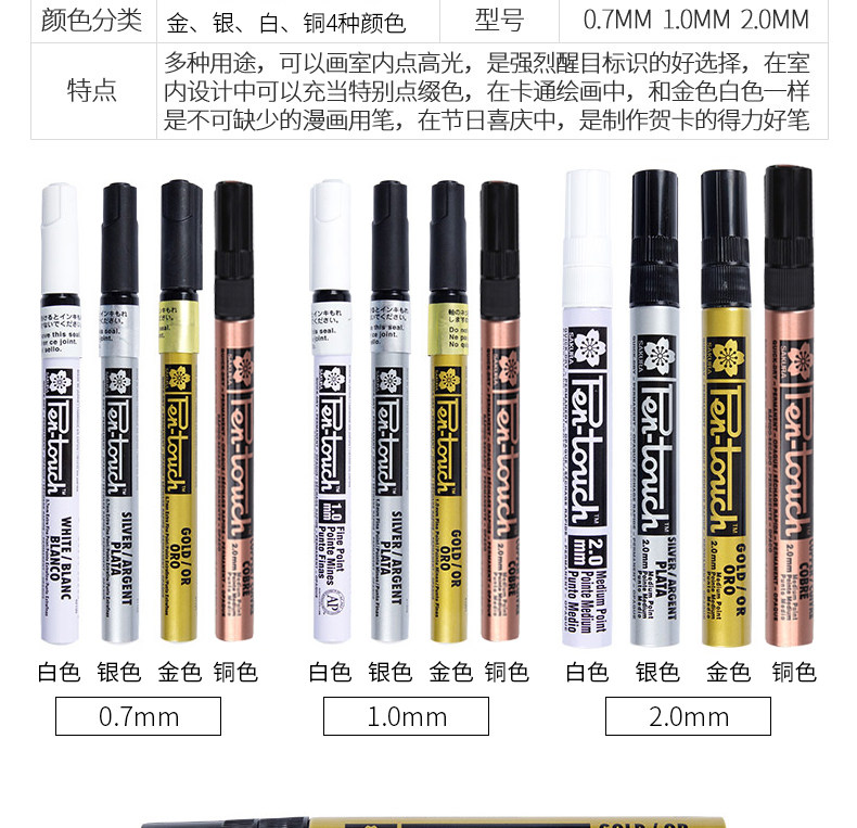 Color Classification The Advantages of Paint Pens⭐Suitable for Many Different Types of Usage Scenarios,Why Choose Sakura?⭐High-Quality Imported Ink Is Waterproof and More Light-Resistant.,2.0Mm-Gold,1.0Mm-Gold,0.7Mm-Gold,0.7Mm+1.0Mm+2.0Mm [Gold],2.0Mm-White,1.0Mm-White,0.7Mm-White,0.7Mm+1.0Mm+2.0Mm[White],2.0Mm-Silver,1.0Mm-Silver,0.7Mm-Silver,0.7Mm+1.0Mm+2.0Mm[Silver],0.7Mm-Black (More Suitable for Industrial Use),1.0Mm-Black (More Suitable for Industrial Use),2.0Mm-Black (More Suitable for Industrial Use),0.7Mm+1.0Mm+2.0Mm [Black] (More Suitable for Industrial Use),2.0Mm-Copper Color,1.0Mm-Copper Color,0.7Mm-Copper Color,2.0Mm-Black,1.0Mm-Black,2.0mm Gold/Silver/White One Each,1.0mm Gold/Silver/White One Each,0.7mm Gold/Silver/White One Each,1.0Mm/Red,2.0Mm/Red,1.0Mm+2.0Mm/Red