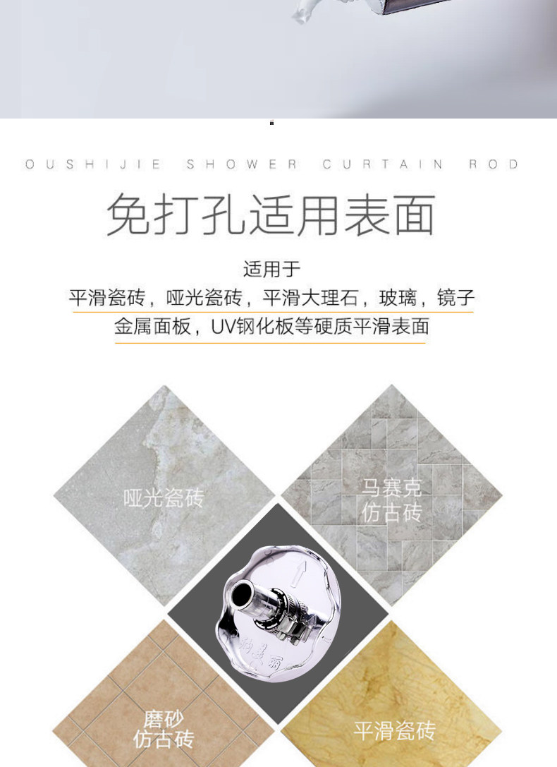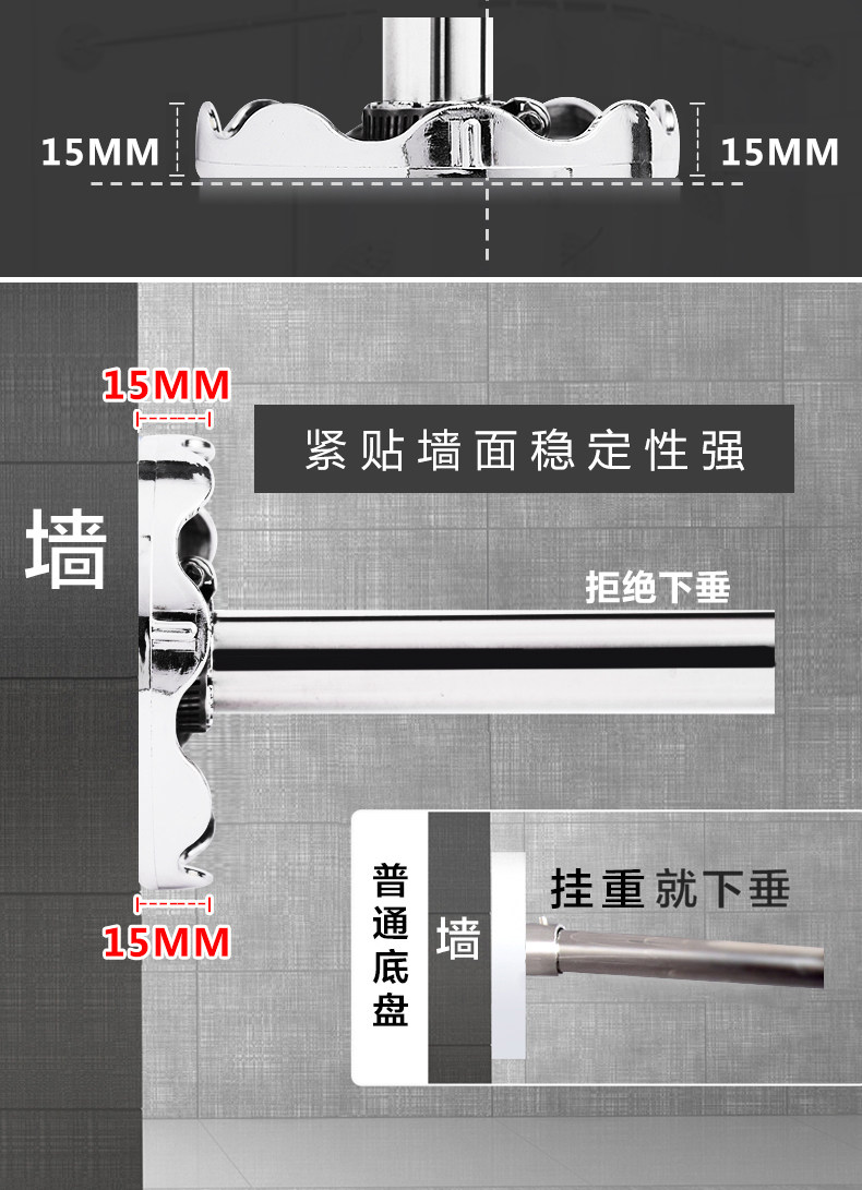 Stainless Steel No-Drill Shower Curtain Rod Accessories Shower Rod Flange Bracket No-Installation with Anti-Sagging Thickened Base