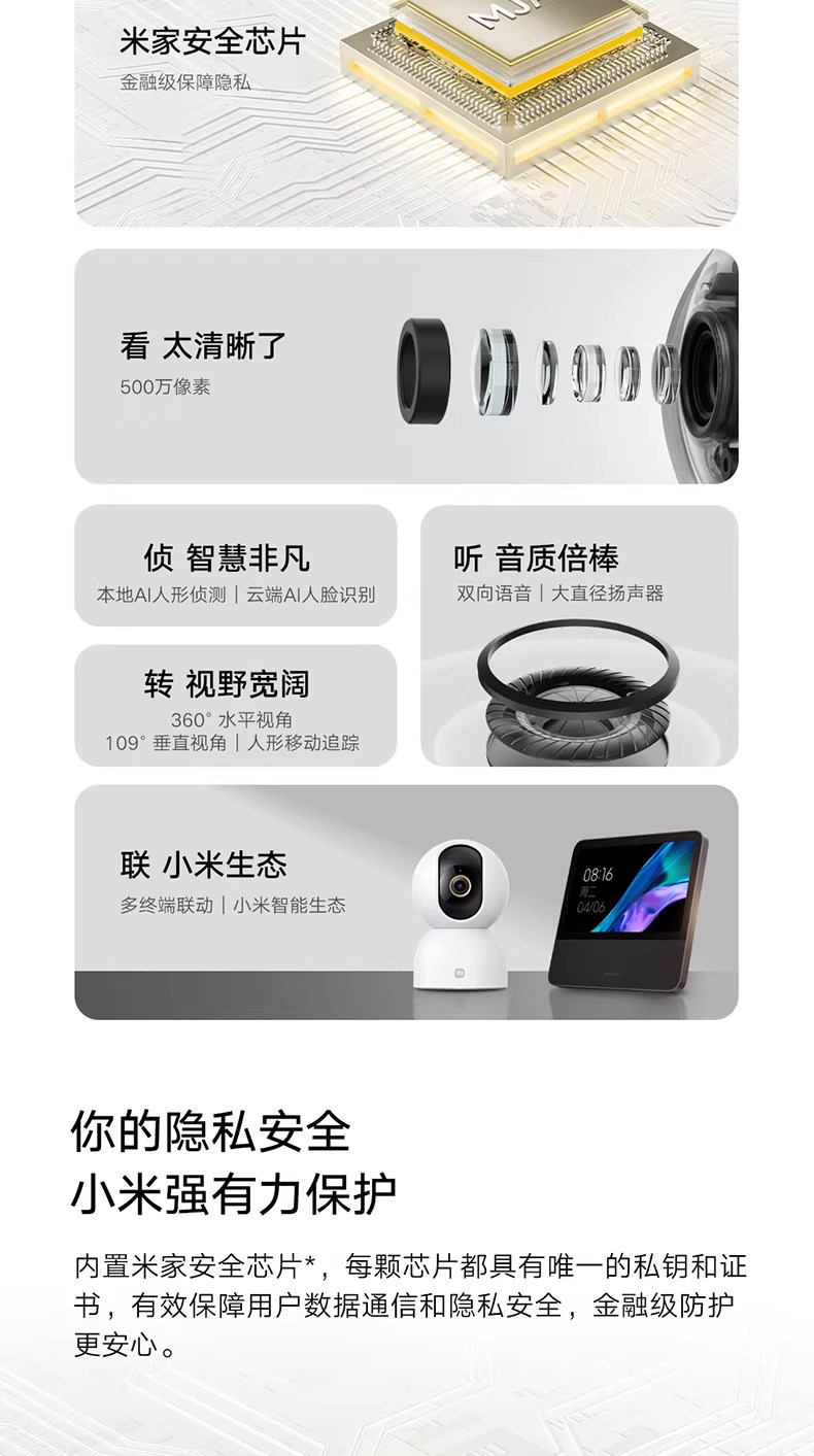 Xiaomi Camera for Home Monitoring with Remote Mobile Phone Access, 360 Panoramic All-In-One Device, High-Definition Smart Camera