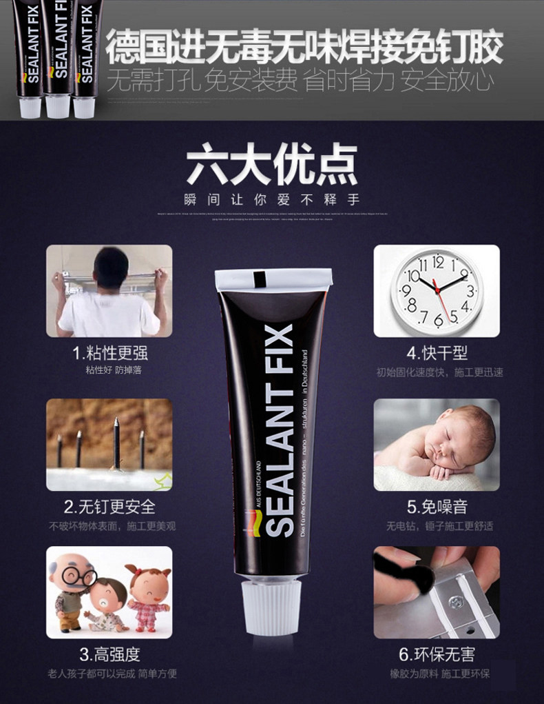 Na Meili Nail-Free Glue Strong Quick-Drying Glass Glue Mirror Tile Adhesive White Punch-Free Bathroom Shelf