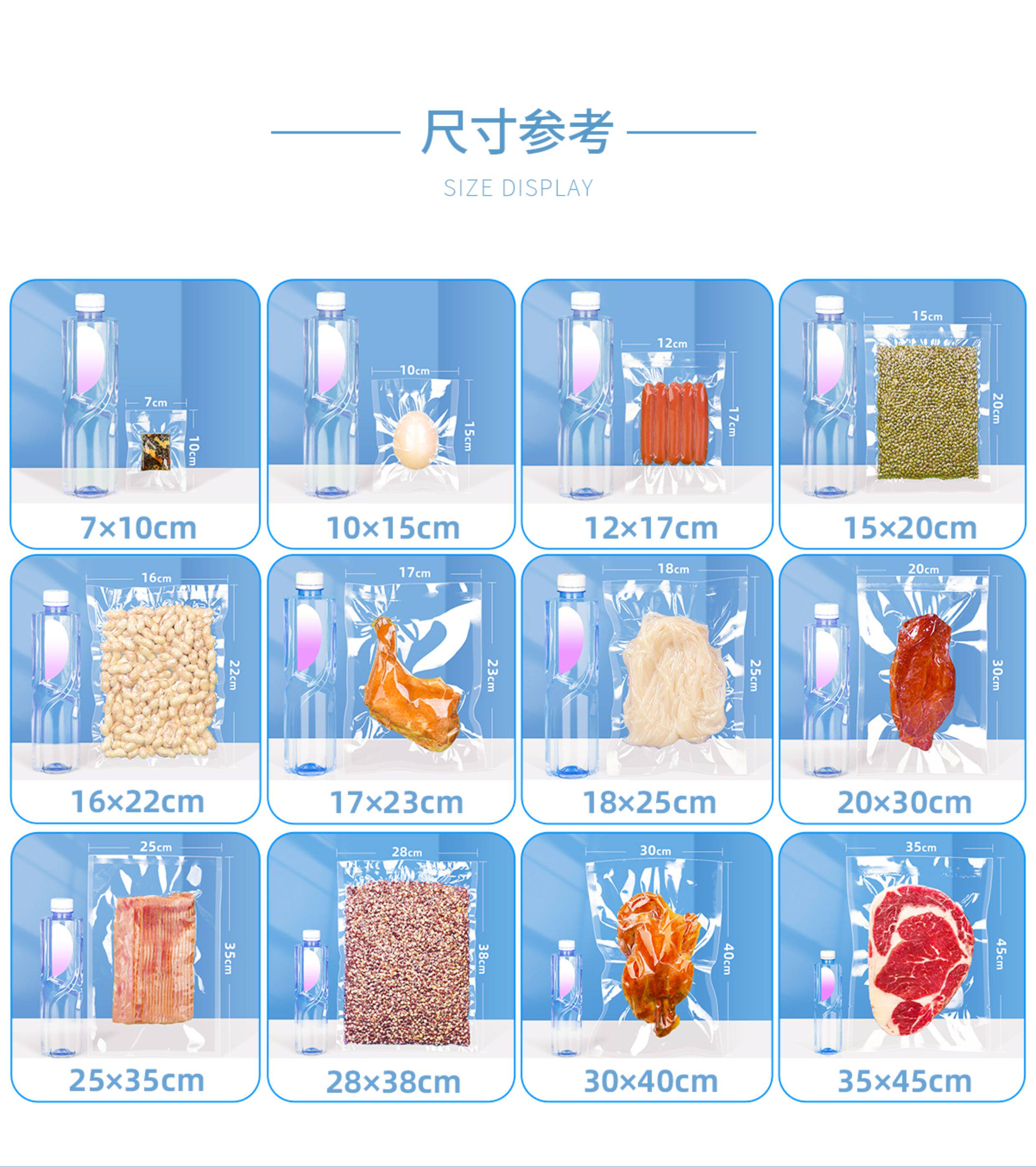 Vacuum Bag Food Packaging Bag, Thickened Transparent Commercial Food-Specific Vacuum Bag, Sealed Mouth Compression Bag, Plastic Sealing Bag