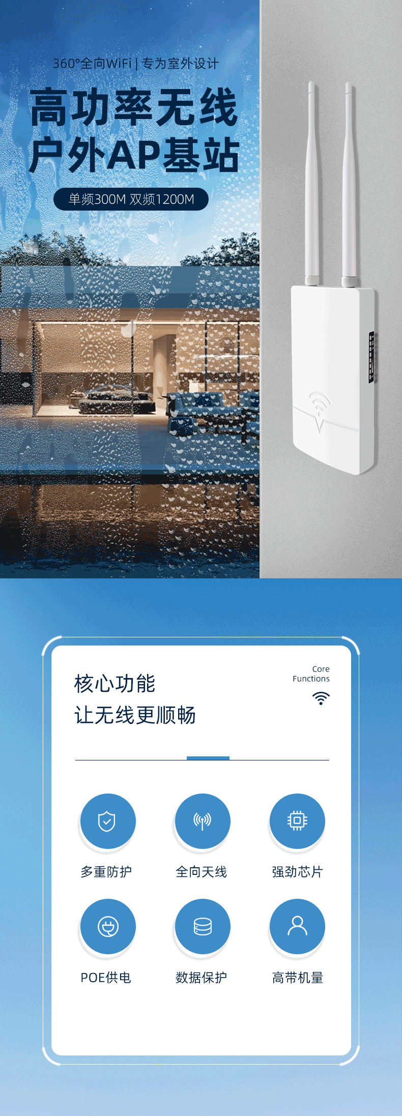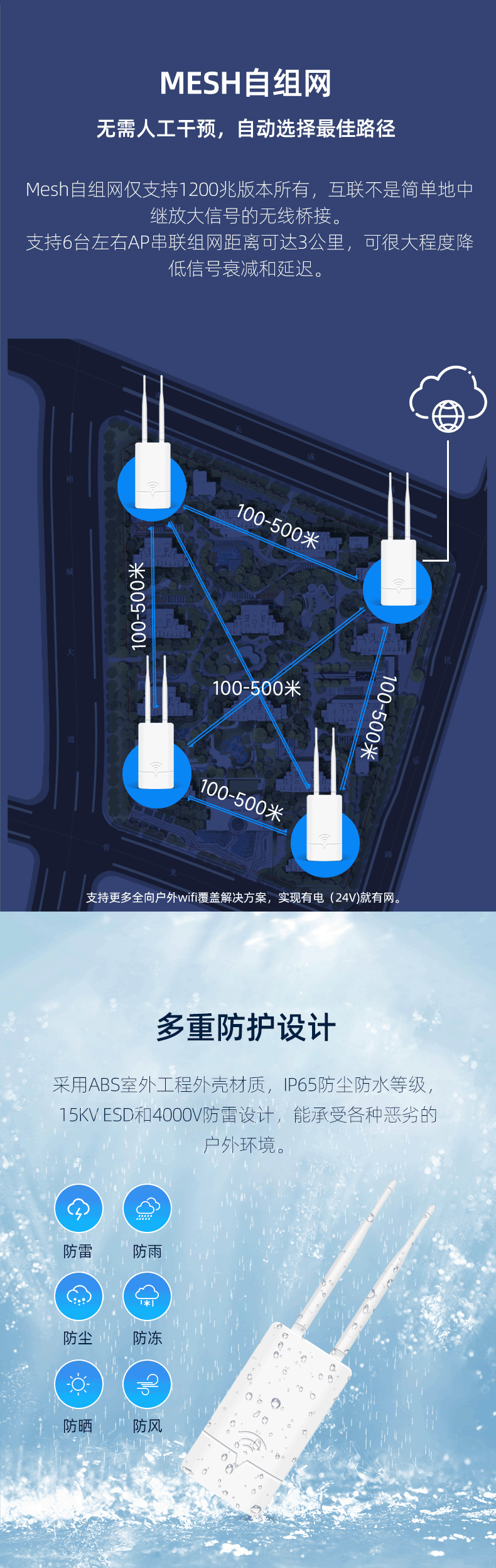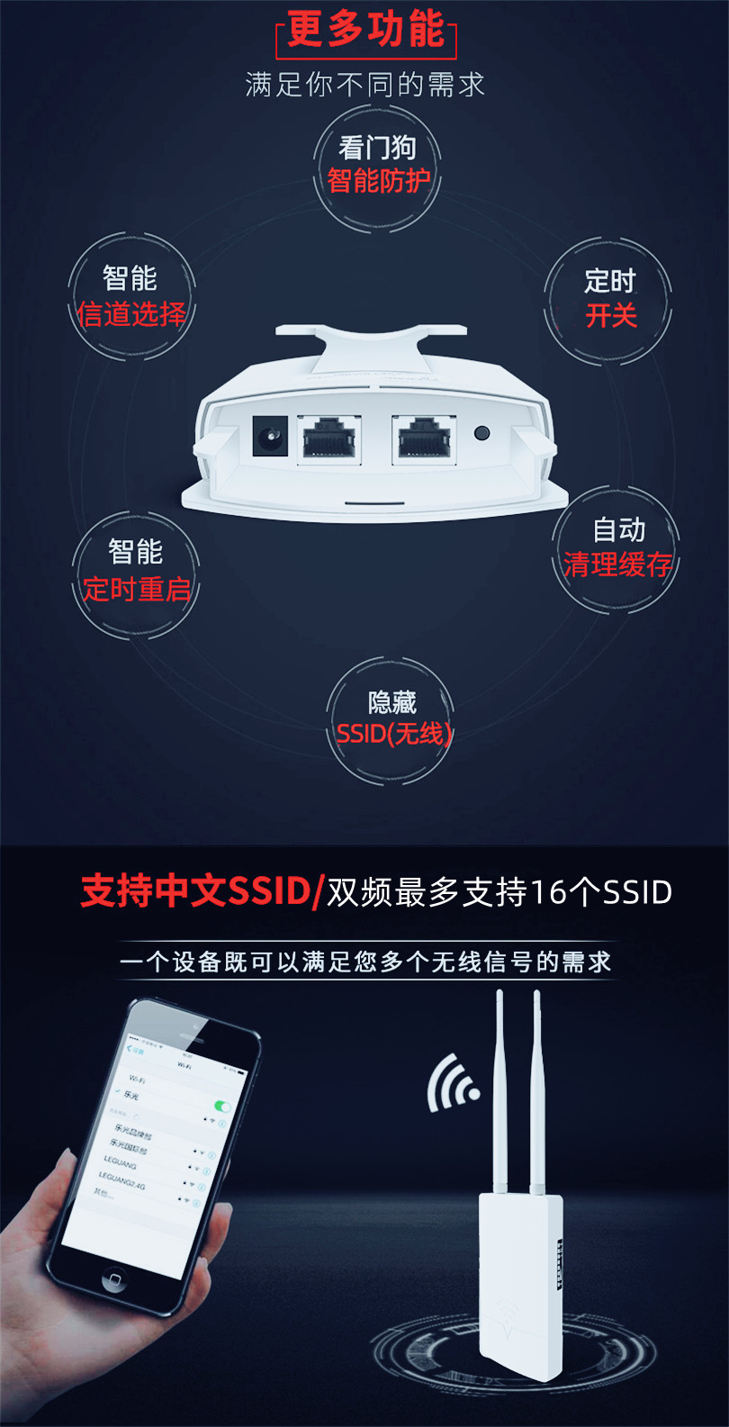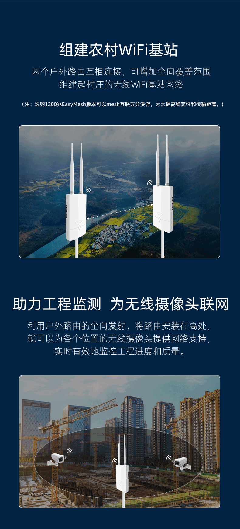 | Color Classification | Single Frequency 300m[External Antenna],Dual Band 1200m[Support Mesh Wireless Networking] |